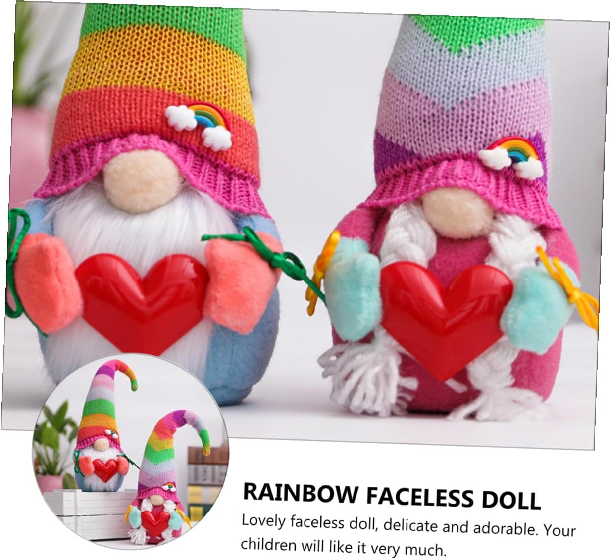 Bambola nana come gioiello - l'adorabile bambola giocattolo senza volto è un'accogliente aggiunta a qualsiasi stanza, una fantastica decorazione, decorazione per bambola lavorata a maglia Bambola nana - materiale pratico e sicuro, decorazione per la casa Bellissima decorazione nana - realizzata in materiale confortevole e morbido, può decorare la tua stanza a lungo termine, bambola per bambini Bambola arcobaleno senza volto - ideale per stare insieme o per aggiungere una calda atmosfera al tuo spazio abitativo e alle feste, Decorazione per scrivania per bambole Decorazione per bambola senza volto - Può essere usata come decorazione per mobili da letto e automobili in soggiorno stanza, ornamento della bambola arcobaleno