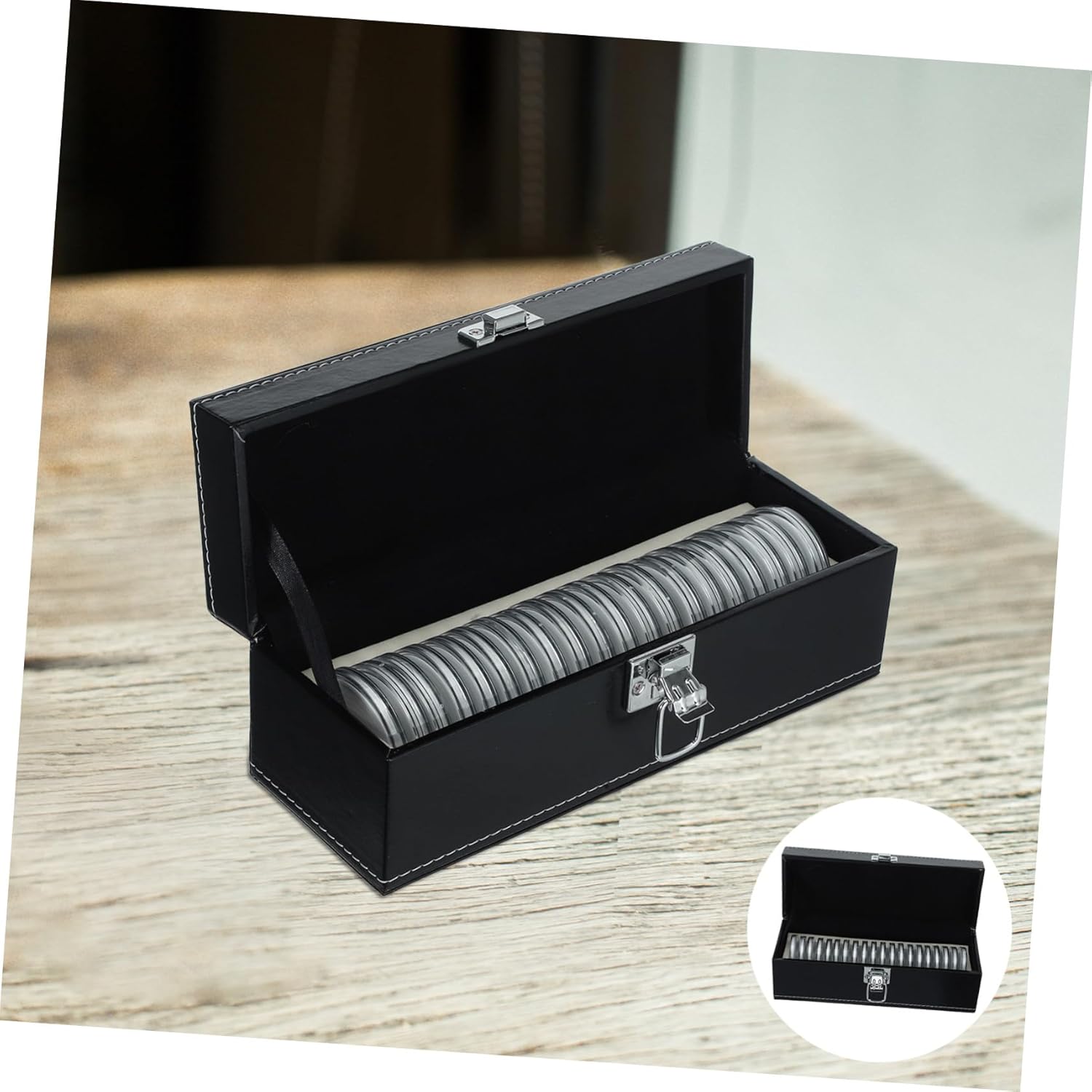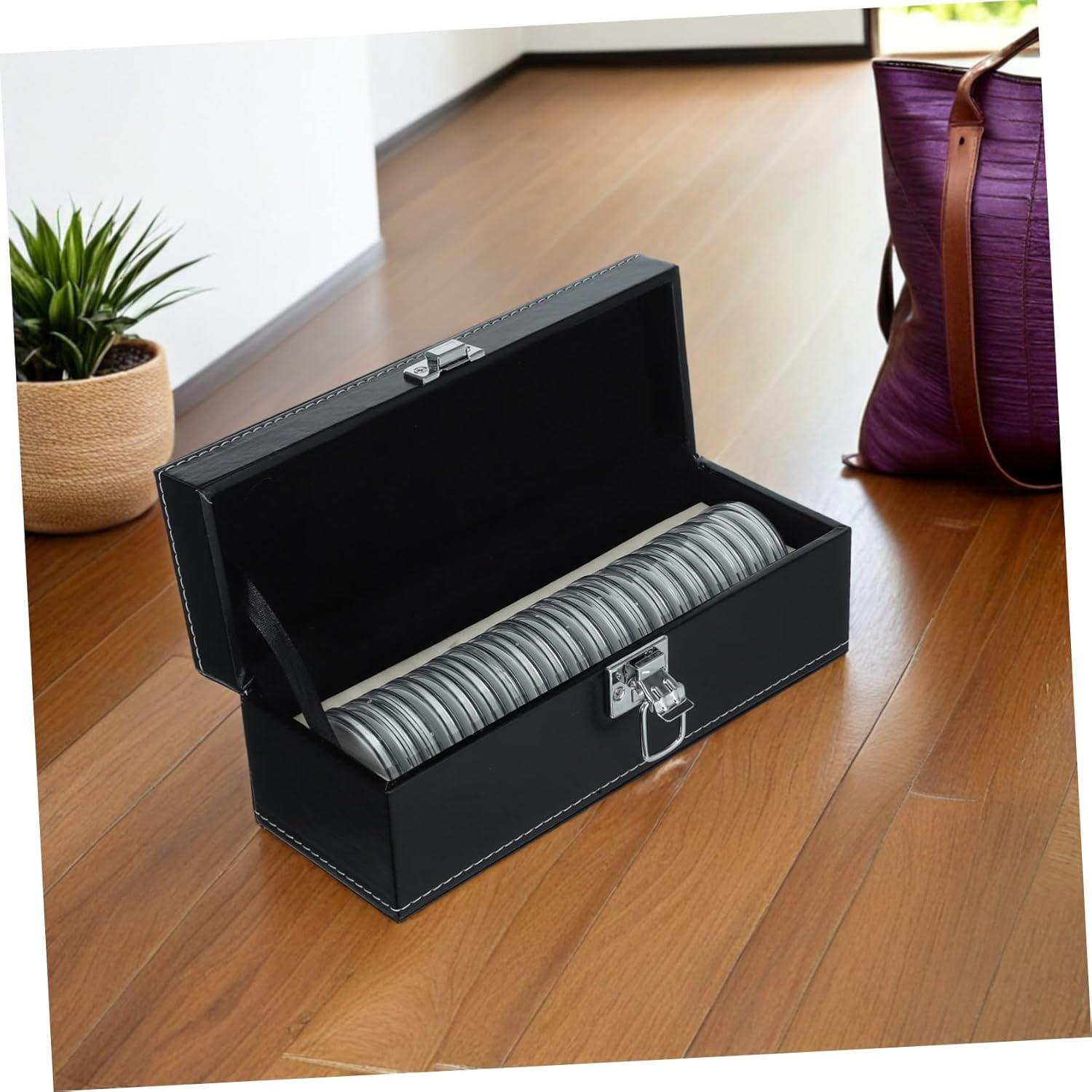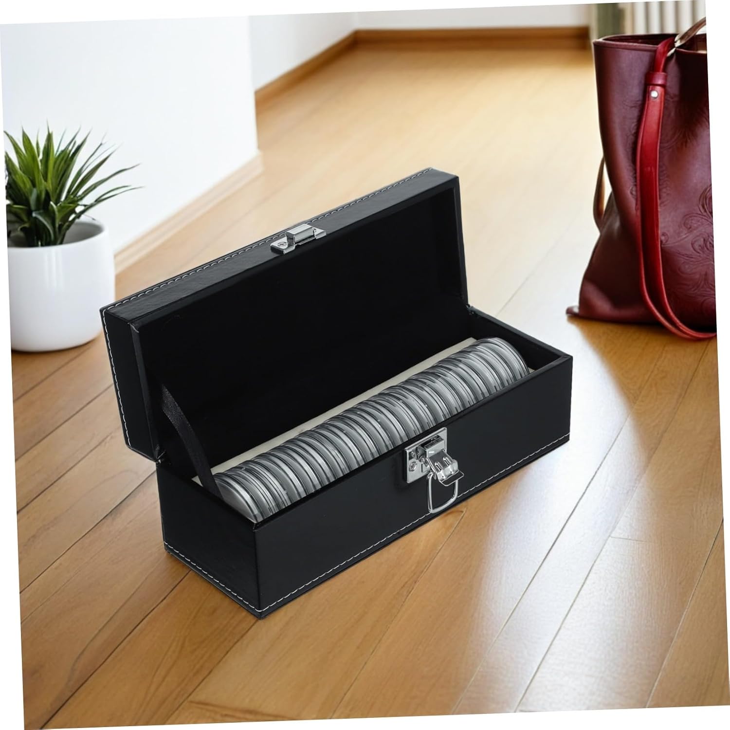 Robusta vetrina per monete: mostra la tua collezione di monete con questa elegante vetrina per monete che migliora l'esposizione delle tue monete e piatti da collezione, capsule per monete e contenitori per soldi. Design portatile e leggero: questo piccolo salvadanaio per contanti e monete è facile da trasportare, rendendolo ideale per i collezionisti che necessitano di una pratica soluzione di archiviazione per viaggi, custodie per monete o forniture numismatiche. Protezione robusta per oggetti da collezione: la custodia protettiva per monete protegge le tue monete e medaglie da polvere, graffi e umidità, preservandone così le condizioni originali. Portamonete da collezione, capsule portamonete ermetiche Spazio versatile per varie monete: il portamonete può ospitare monete di diverse dimensioni, rendendolo una scelta versatile per conservare monete da un quarto di dollaro, gettoni, medaglie e monete, organizer per monete, forniture per collezionisti di monete Soluzione di archiviazione compatta e portatile: il portamonete portatile può contenere fino a 20 capsule per monete, facilitando l'organizzazione e il trasporto di forniture numismatiche, portagettoni e portamonete