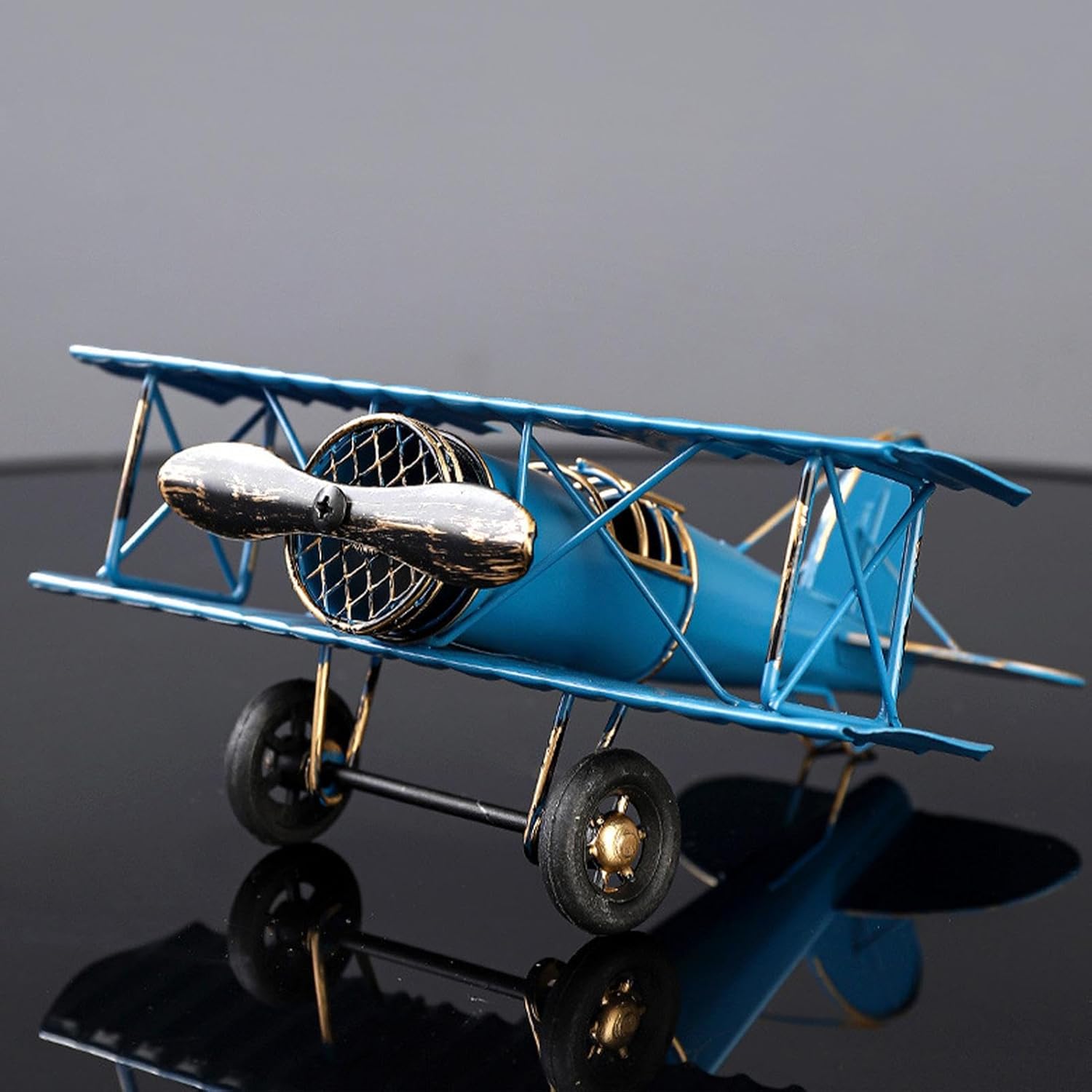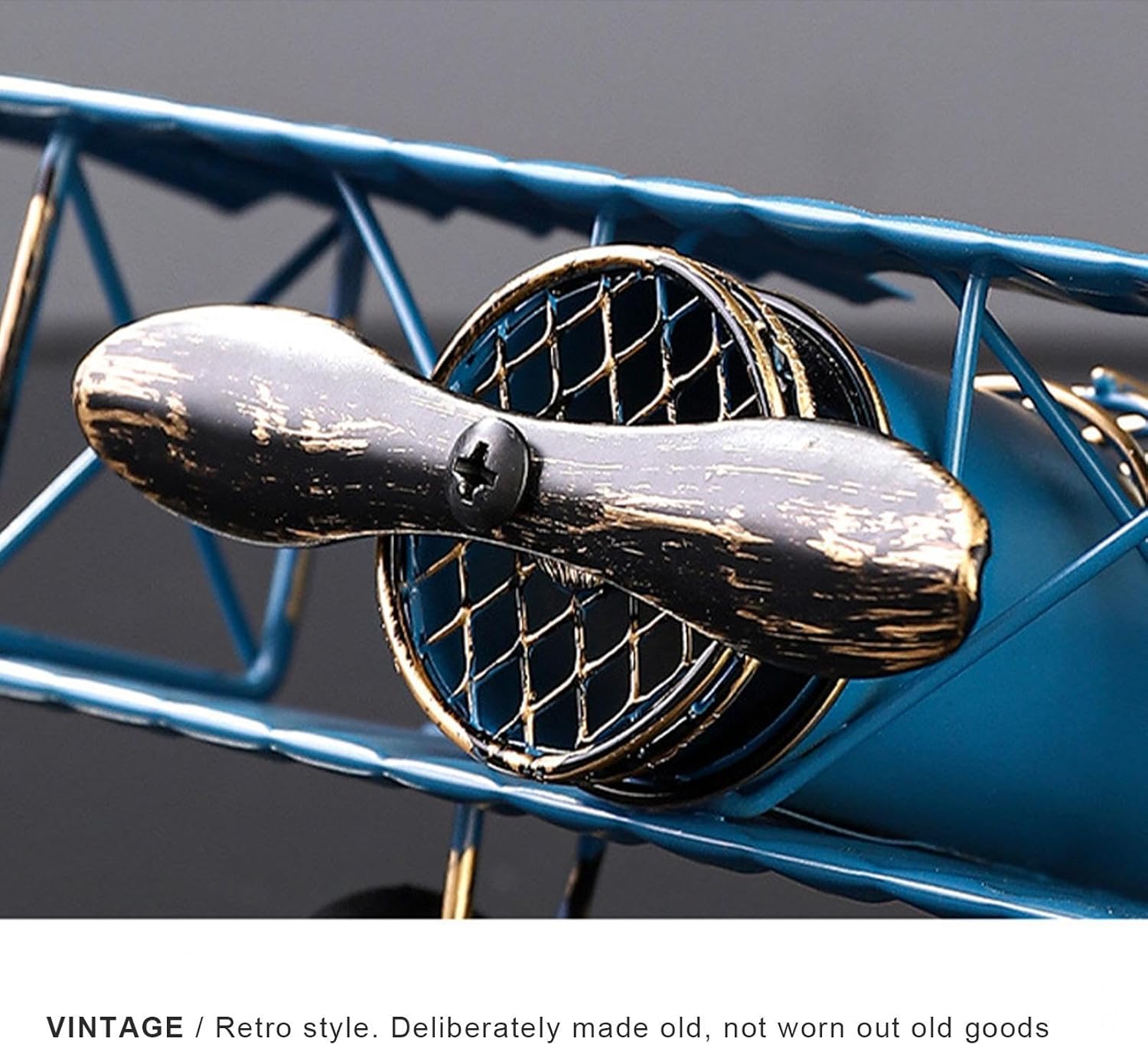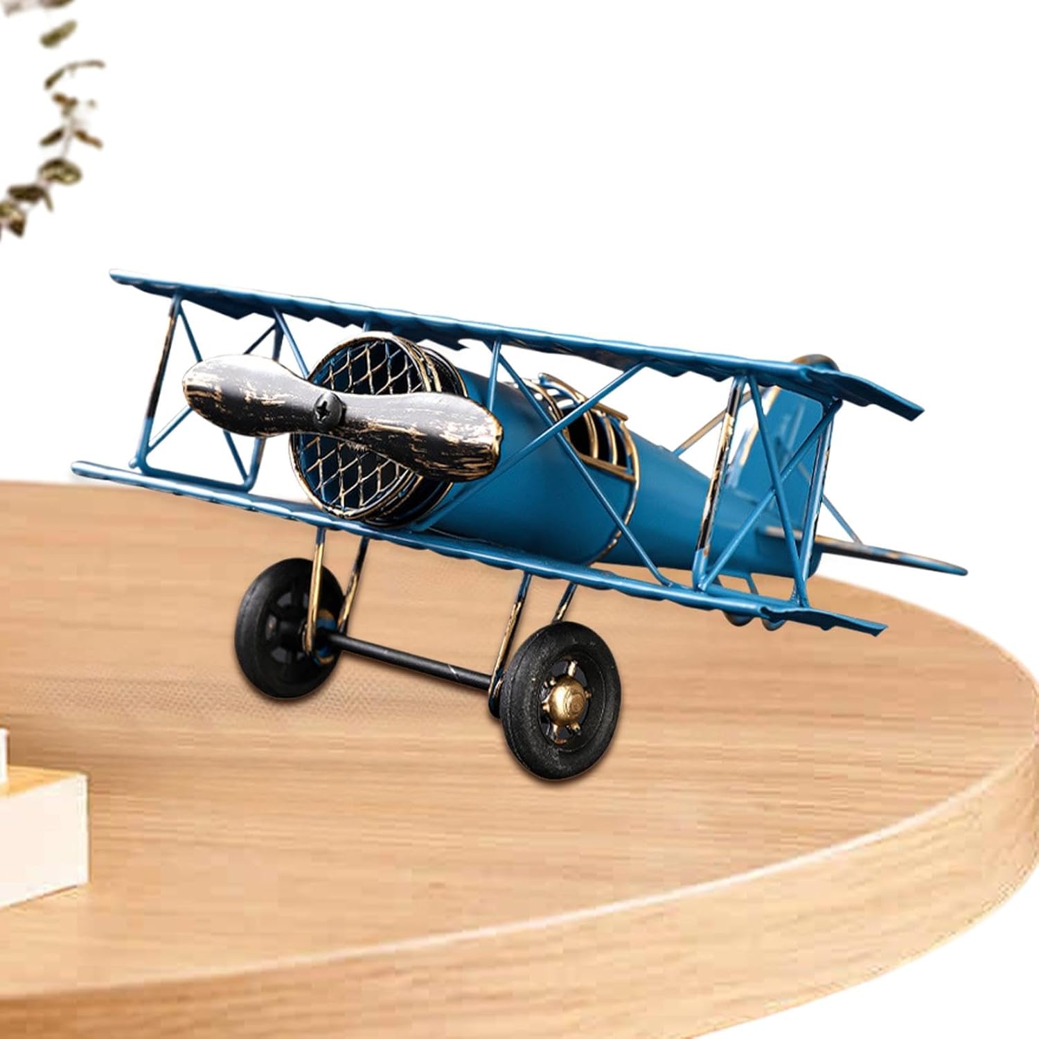 Classic Vintage Design: This biplane airplane model features a vintage and retro design, capturing the of early aviation with intricate details. Its timeless appeal adds a touch of nostalgia to any space, making it a unique decor piece for aviation enthusiasts. Durable Metal Construction: Made from high-quality iron, this airplane decor is built to last. Its sturdy construction ensures that it a durable, long-lasting addition to your home, withstands wear, and retains its charming appearance for years. Perfect for Home Decor: This retro airplane model is an ideal accent for living rooms, bedrooms, offices, or study areas. Whether placed a shelf, desk, or tabletop, it complements various interior styles and creates an inviting, adventurous atmosphere. Great Gift for Aviation Lovers: Whether for Christmas, a birthday, or any special occasion, this vintage biplane makes an excellent gift for aviation fans or collectors. Its unique design and craftsmanship make it a memorable present for those who appreciate classic aviation history. Eye-Catching Detail: Featuring a detailed metal finish with a realistic look, this biplane model stands out as a conversation . Its intricate design, from the propellers to the wings, captures the spirit of vintage airplanes and adds character to your decor.