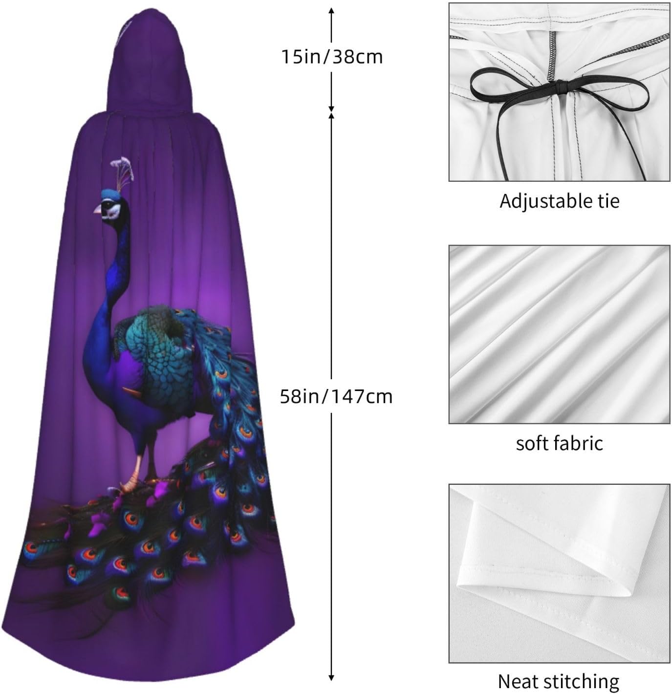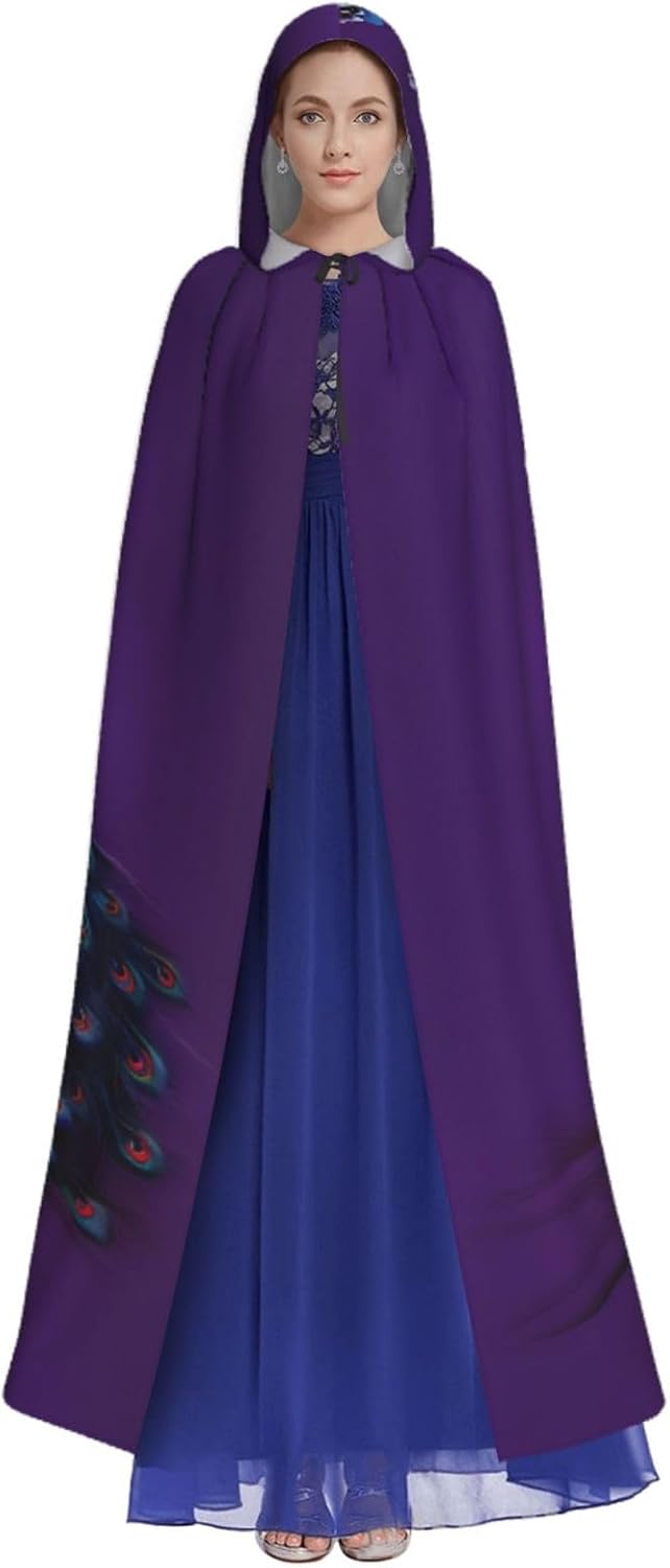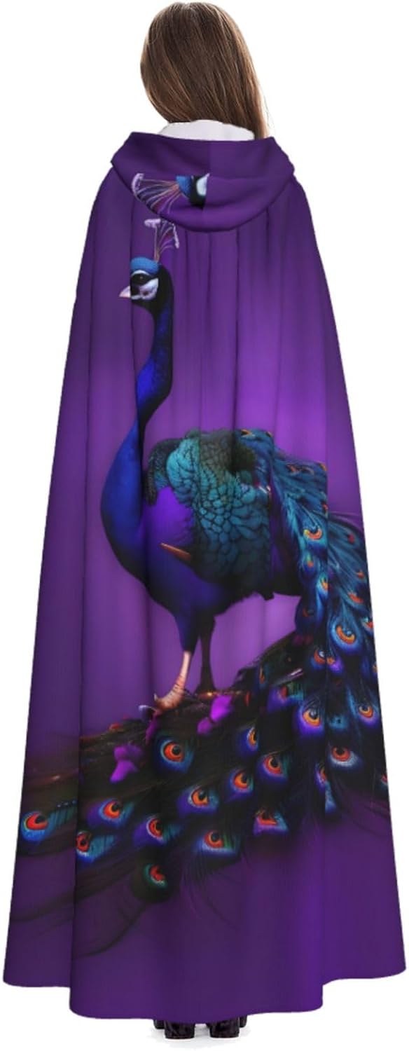 Ruba lo spettacolo a qualsiasi evento di Halloween o a tema con il nostro mantello con cappuccio. Realizzato con un tessuto confortevole e non pruriginoso, questo mantello viola con stampa con motivo pavone è progettato per assicurarti di distinguerti tra la folla. Il mantello è facile da indossare e togliere, grazie alla cravatta e all'assenza di una cerniera. Con un design facile da pulire, può essere lavato in lavatrice o a mano per garantire che sia sempre pronto per il tuo prossimo evento. Prova la perfetta miscela di comfort, stile e versatilità con il nostro mantello con cappuccio.