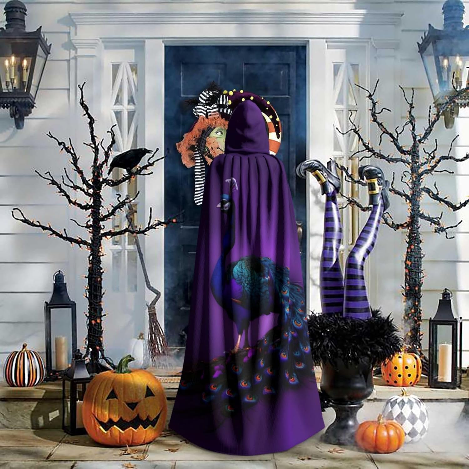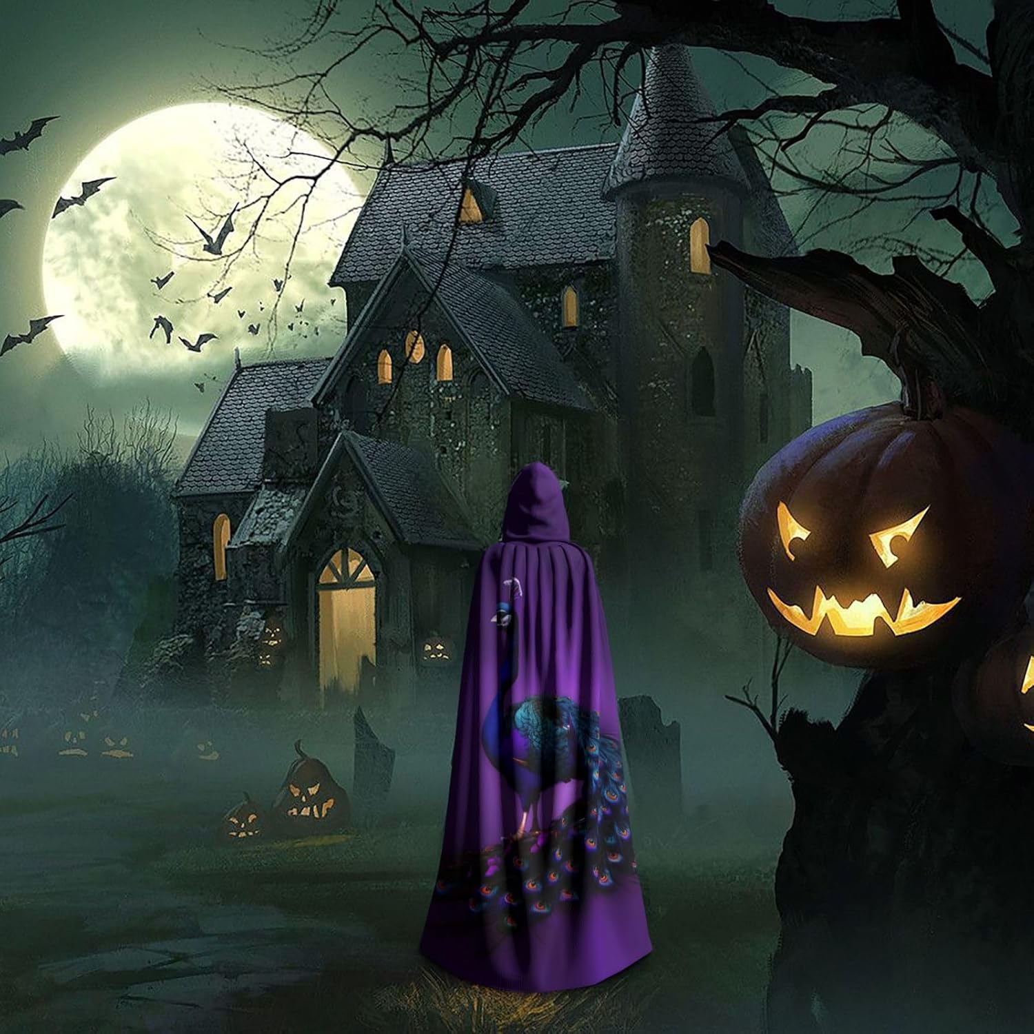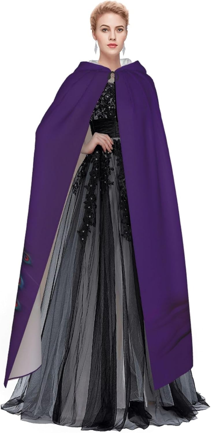 Ruba lo spettacolo a qualsiasi evento di Halloween o a tema con il nostro mantello con cappuccio. Realizzato con un tessuto confortevole e non pruriginoso, questo mantello viola con stampa con motivo pavone è progettato per assicurarti di distinguerti tra la folla. Il mantello è facile da indossare e togliere, grazie alla cravatta e all'assenza di una cerniera. Con un design facile da pulire, può essere lavato in lavatrice o a mano per garantire che sia sempre pronto per il tuo prossimo evento. Prova la perfetta miscela di comfort, stile e versatilità con il nostro mantello con cappuccio.
