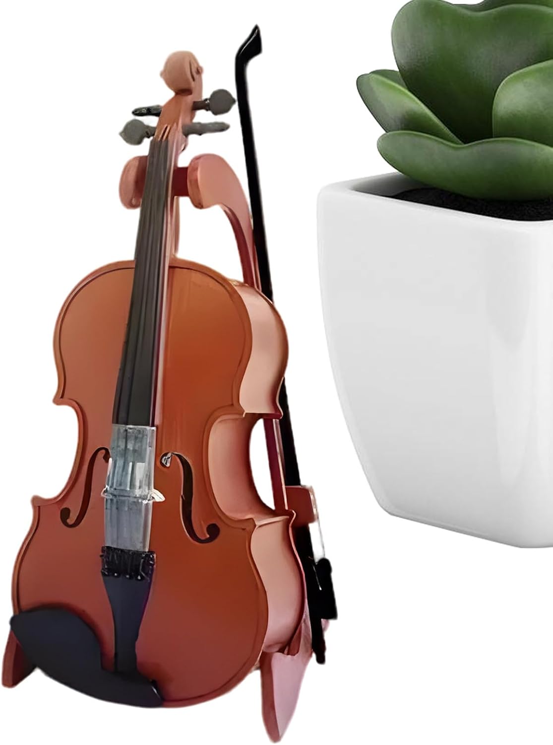 Design artistico spaziale: unisce l'eleganza classica di un violino con un concetto innovativo, ideale per creare motivazioni artistiche. Questo violino in miniatura dona un tocco poetico al tuo spazio. Miglioramento dell'ambiente: perfetto per rinnovare gli interni, questo violino decorativo dona un tocco di eleganza senza tempo che cattura immediatamente lo sguardo, sublimando gli spazi abitativi e le vetrine commerciali con il suo design minimalista e versatile. Precisione artigianale: trattamento manuale accurato che garantisce proporzioni armoniose, curve naturali e rilievi autentici rivelano un know-how tradizionale conservato in ogni millimetro del violino Solidità comprovata: grazie al PP ad alte prestazioni appositamente selezionato, questo violino in miniatura combina leggerezza e resistenza agli urti. Il design ergonomico e la lavorazione precisa garantiscono una presa stabile e prestazioni senza necessità di manutenzione. Scelta regalo perfetta: sublima compleanni e feste con il Tiny Violin, un presente unico che permette ai tuoi cari di commemorare le fasi della vita e i ricordi condivisi con emozione