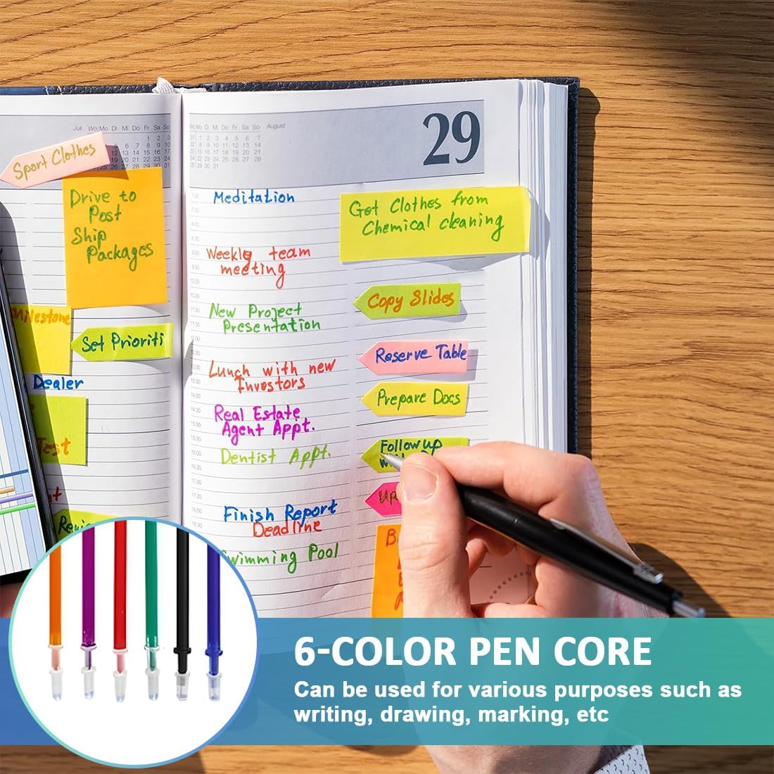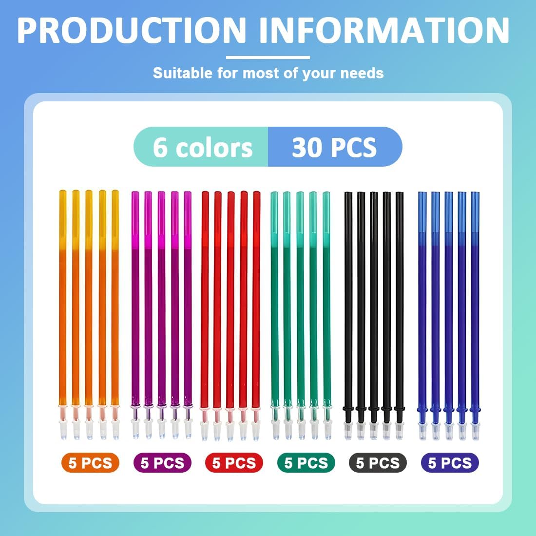 Ricariche per penne compatibili Legam: 30 pezzi di ricariche per penne in gel cancellabili, ad asciugatura rapida e facili da cancellare 6 mine colorate: blu, nero, rosso, verde, giallo, viola Ricarica penna: punta ultra precisa da 0,5 mm per una scrittura eccezionale: la punta fine garantisce una scorrevolezza perfetta senza intoppi, ideale per principianti e amanti della scrittura Compatibilità eccellente: le ricariche per rollerball sono altamente compatibili, consentendoti di sostituirle in modo flessibile e di migliorare costantemente i tuoi metodi di scrittura. Regalo ideale: sono il regalo perfetto per compleanni, la Festa dei Bambini, Natale o il ritorno a scuola. Aggiungi un tocco di allegria alla tua vita o sorprendi una persona a te cara con queste confezioni di ricarica uniche e pratiche.