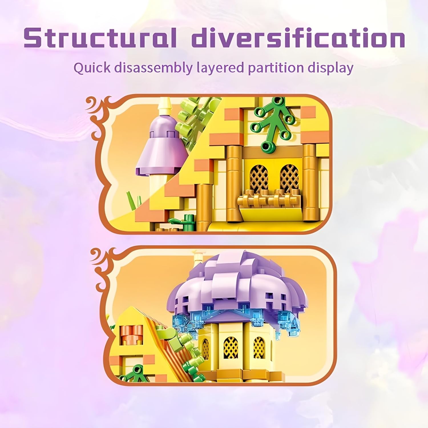 Blocchi di costruzione del castello dei funghi: questo set di blocchi di costruzione dà vita a un castello di funghi da favola, consentendo ai costruttori di creare una scena magica piena di fascino. Combina un castello incantevole, dettagli a forma di fungo e vivaci elementi naturali per offrire una meravigliosa esperienza di costruzione. Il design è pieno di creatività: un castello colorato a più strati è circondato da funghi colorati, fiori che sbocciano e piccoli animali come conigli. Questi elementi creano un'atmosfera magica, fiabesca e piena di magia. Materiale di alta qualità: gli elementi costitutivi sono realizzati con materiali di alta qualità e possono essere assemblati in modo fluido e stabile. I materiali sono durevoli e di alta qualità, in modo che il set resista bene una volta assemblato e rimanga a lungo attraente come pezzo da esposizione. Dimensioni ed elementi decorativi: Grazie alle sue dimensioni compatte, questo set è facile da posizionare su scrivanie, scaffali o qualsiasi luogo accogliente. Come decorazione, dona agli spazi abitativi un tocco di fiaba e crea un'atmosfera vivace e fantasiosa che impreziosisce l'ambiente. Piacere di fare regali: è un regalo eccellente per chi ama la costruzione creativa e la decorazione affascinante. Che si tratti di un compleanno, di una vacanza o semplicemente di una sorpresa, questo set di mattoncini offre idee pensate per deliziare i destinatari che apprezzano i design carini e magici.
