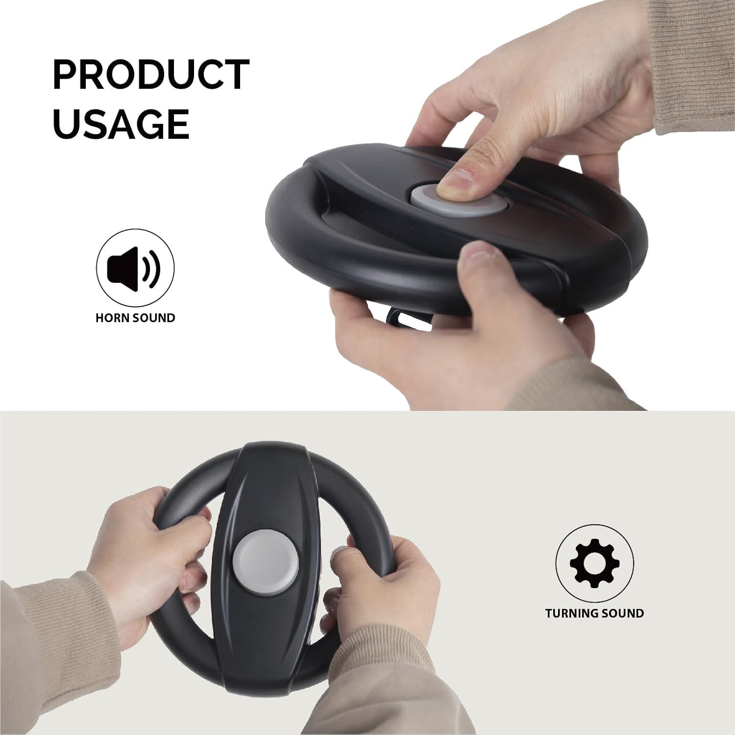Divertente divertimento in viaggio Girevole liberamente con un suono divertente e un clacson discreto Adatto per aste o aste da gioco fino a massimo 3,5 cm di diametro Fissaggio senza attrezzi con velcro