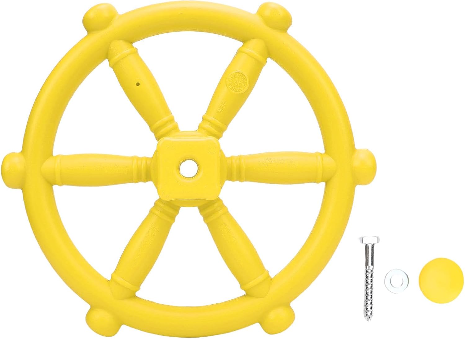 [MATERIALE PLASTICO DUREVOLE] Questo volante per parco giochi è realizzato in plastica di alta qualità, garantendo una lunga durata e offrendo intrattenimento sicuro e protetto per ore. [GIOCATTOLO EDUCATIVO DELLA CASA SULL'ALBERO] Il design realistico di questo volante della casa sull'albero immerge i bambini nell'esperienza di guida di una nave pirata, migliorando le capacità sensoriali, l'immaginazione e le capacità motorie. [DESIGN FLESSIBILE E LEGGERO] I bambini possono facilmente ruotare e controllare questo volante in plastica, provando la gioia di essere un piccolo capitano e promuovendo l'attività fisica. [STRUTTURA LISCIA E ] Lucidata con cura con bordi arrotondati, questa ruota giocattolo della nave pirata previene qualsiasi danno alle mani delicate dei bambini, garantendo un'esperienza di gioco e divertente. [FACILE INSTALLAZIONE] Questo volante per parco giochi è un'aggiunta perfetta a qualsiasi set da gioco all'aperto, con un'installazione semplice e veloce per un gioco fantasioso e divertente in qualsiasi teatro.