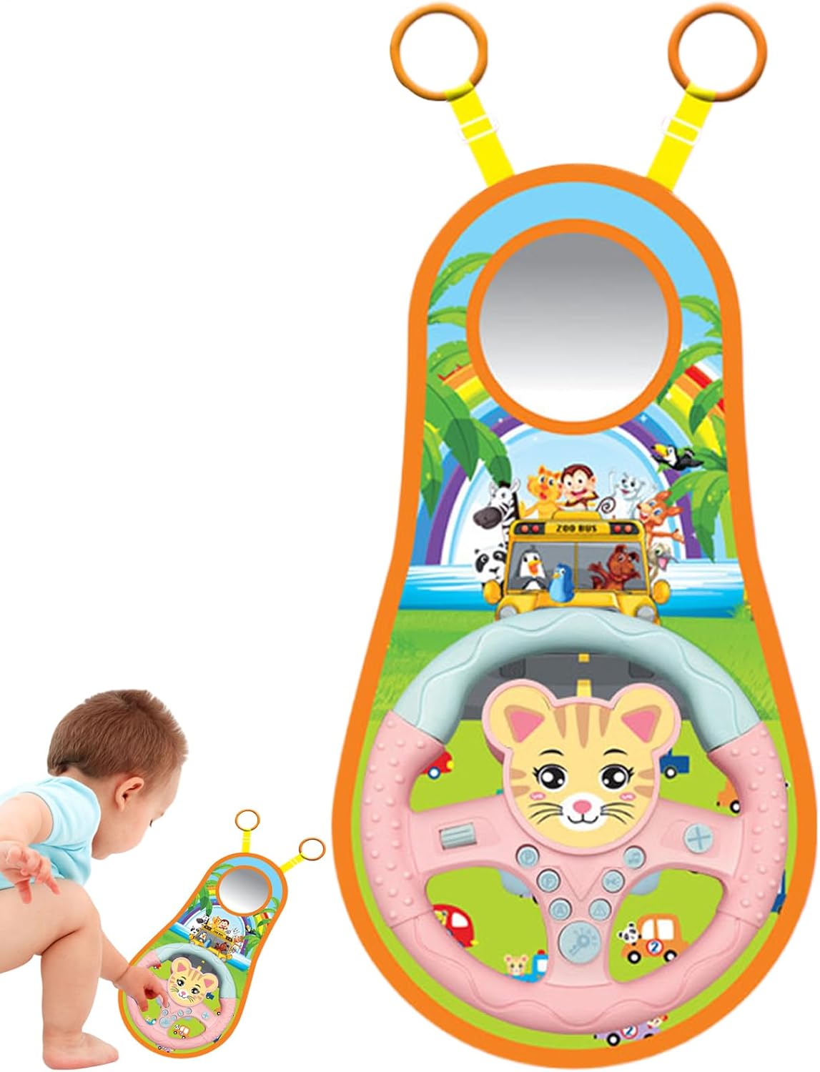 Esperienza di apprendimento coinvolgente: coinvolgere tuo figlio con un giocattolo a volante per il seggiolino auto, divertendosi, offre un modo divertente per il tuo bambino di apprendere le regole del traffico e le abilità di guida, rendendolo lo strumento educativo giusto Intrattenimento per bambini: con un design a cartone animato con cerchi lisci per tenere al sicuro i bambini piccoli, la forma e il materiale arrotondati consentono alle piccole mani di esplorare in sicurezza senza il rischio di Montaggio conveniente: lo rende facile da portare ovunque e intrattenere il bambino durante i lunghi viaggi; l'anello di fissaggio facile e la cinghia regolabile garantiscono l'installazione Suoni realistici divertenti: Mimic la vera esperienza di guida e cattura l'attenzione del tuo bambino con suoni ed effetti visivi realistici, mentre le vivide illustrazioni gli consentono di godersi ore di gioco finto e un mondo di avventure fantasiose Comodità alimentata a batteria: lascia che il tuo conducente si diverta a guidare, un must per ogni viaggio in auto, comodamente alimentato a batteria da tre batterie AA