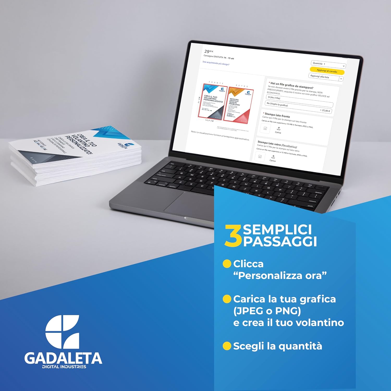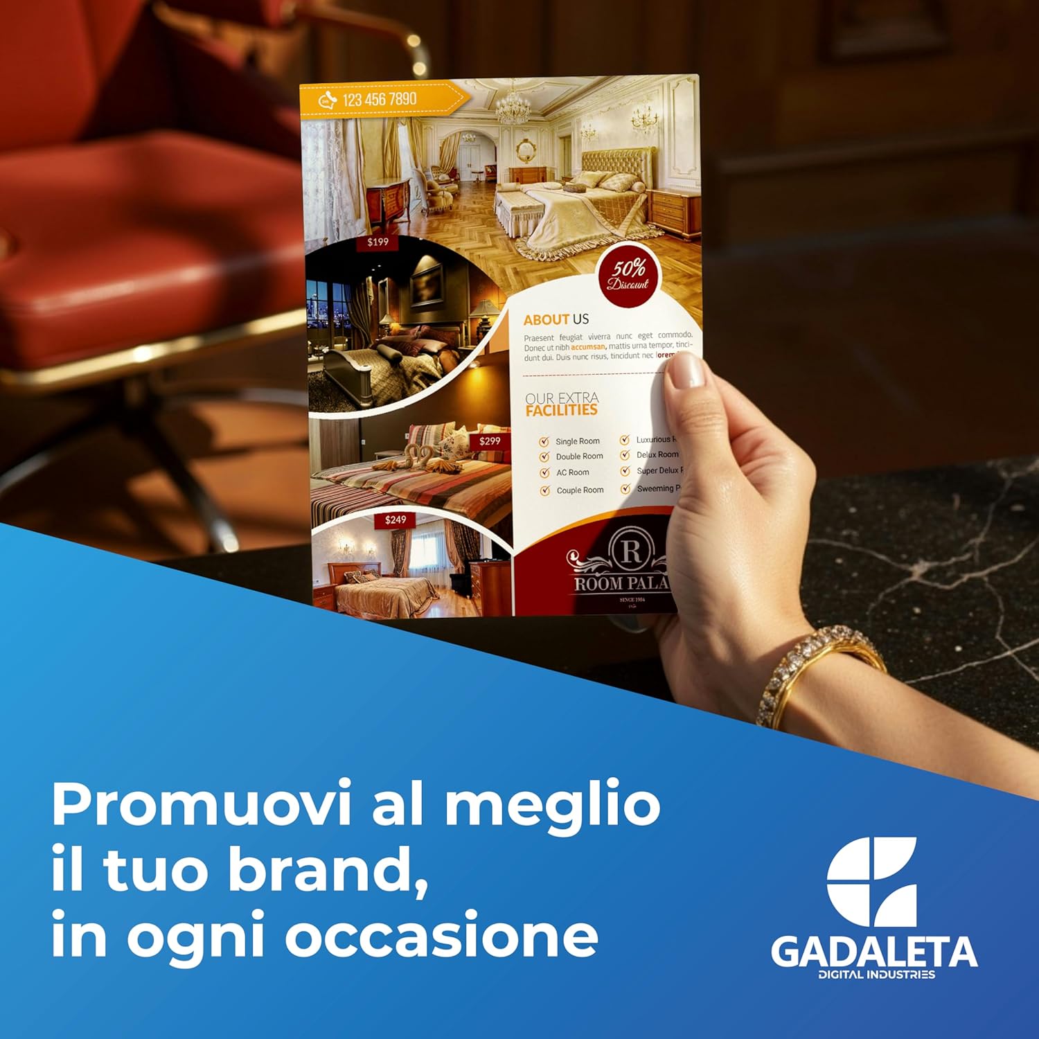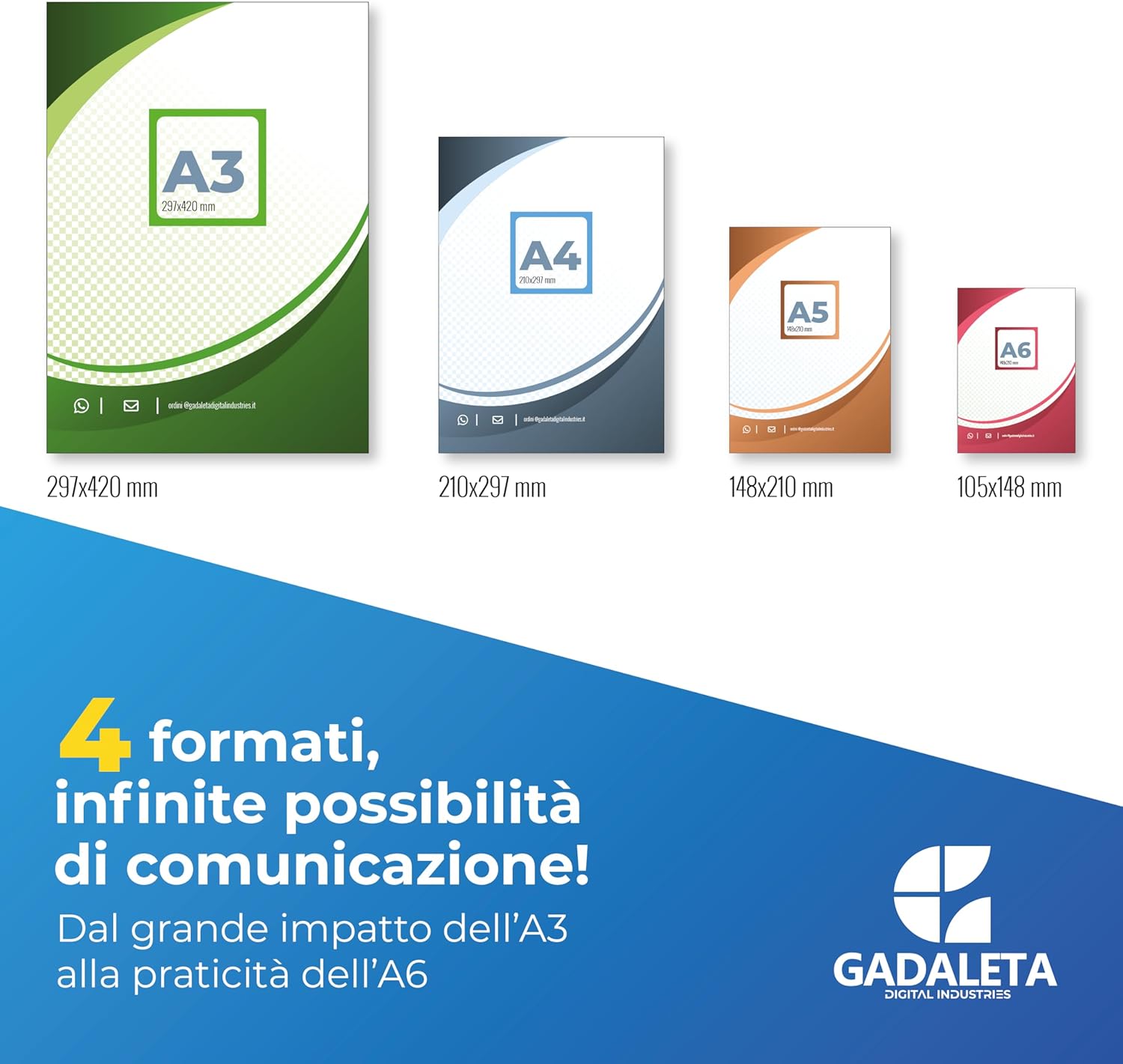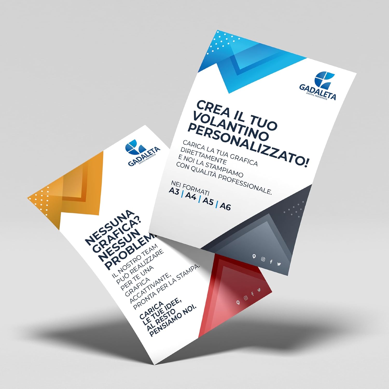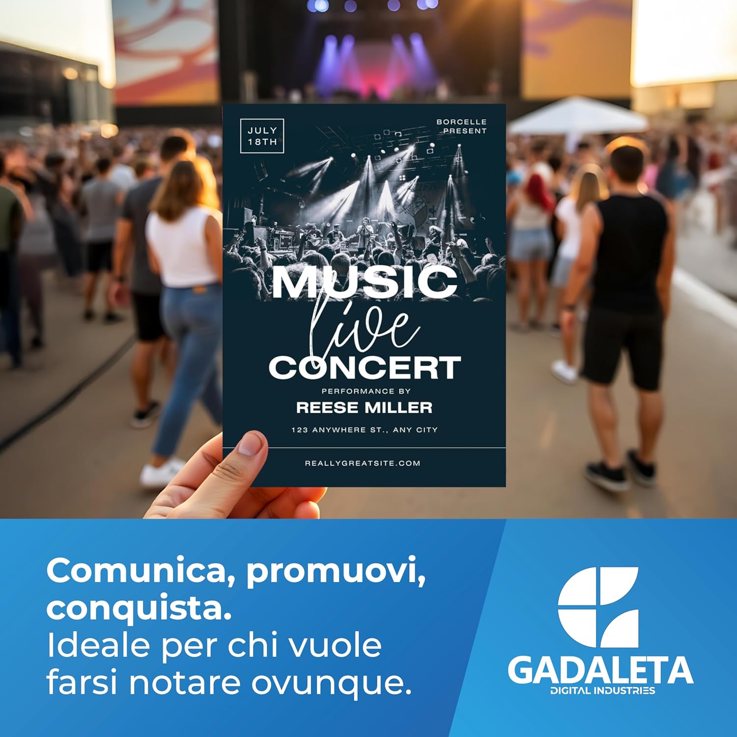 Volantini Pubblicitari Personalizzati Professionali – Promuovi eventi, offerte e attività con flyer di qualità, completamente personalizzabili nella grafica e nel formato. Stampa Fronte/Retro di Alta Qualità – Colori brillanti e dettagli nitidi su carta patinata da 115g, ideale per presentazioni e comunicazioni di impatto. Tre Formati Disponibili:A3, A4, A5, A6 – Scegli il formato più adatto alle tue esigenze di marketing o distribuzione locale. Ordina da 50 a 5000 Copie – Soluzione flessibile per ogni tipo di evento o campagna pubblicitaria. Flyer Made in Italy – Realizzati con tecniche di stampa professionale da Gadaleta Digital Industries, sinonimo di qualità e affidabilità nel settore.
