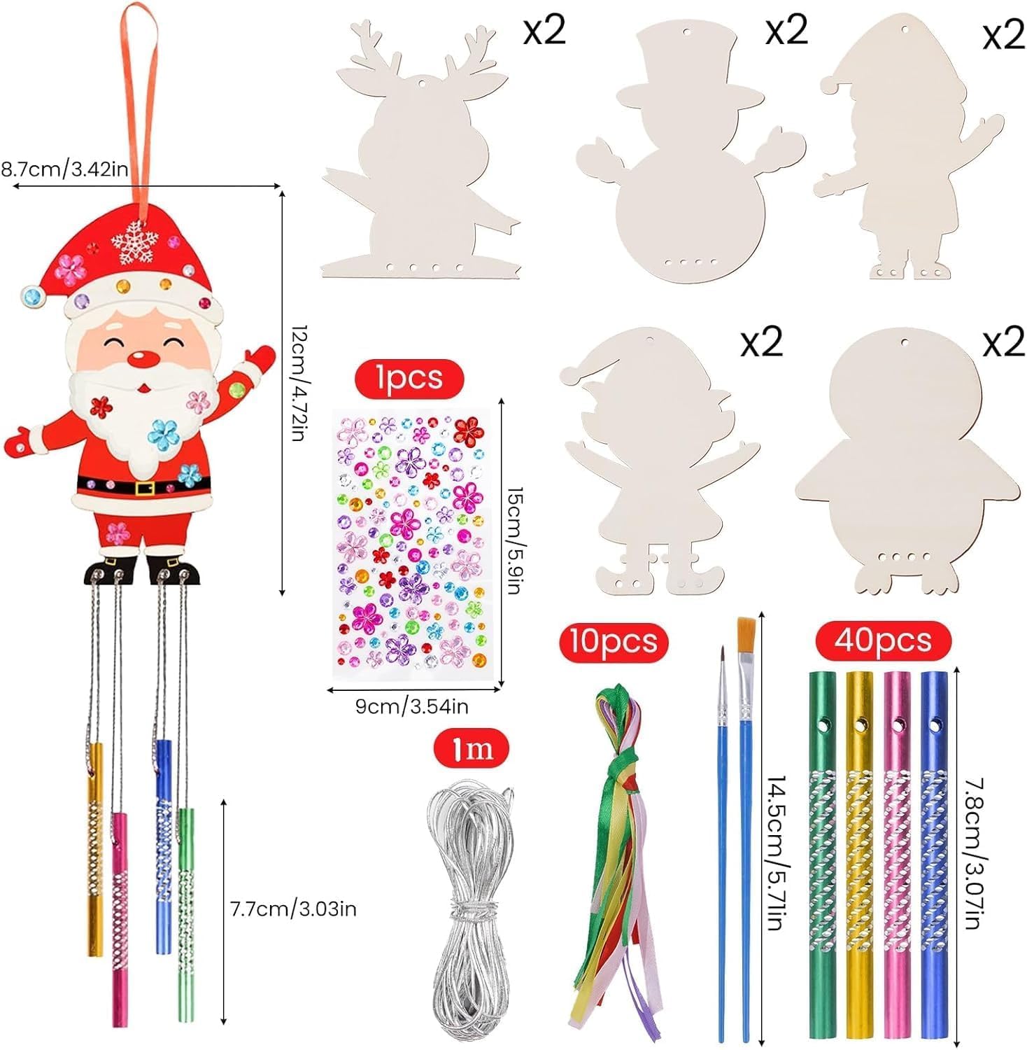 Artigianato natalizio con campanelli eolici: scacciapensieri per bambini in legno contiene 10 trucioli di legno + 40 campanelli eolici + 1 filo per campanelli eolici da 1 m + 2 spazzole + 10 nastri + 1 diamante adesivo. Sicuro e durevole: decorazioni natalizie in legno è realizzato in legno naturale finemente lavorato, con una superficie liscia senza bave e facile da colorare. I bambini possono usarlo con sicurezza. Artigianato fai-da-te con campanelli eolici: decorazioni legno natale deve colorarli e assemblarli da soli. Puoi scrivere graffiti, incollarci sopra diamanti e usare la tua immaginazione per creare uno scacciapensieri unico. Crea un'atmosfera festosa: puoi appendere decorazioni legno natale al tuo albero di Natale, alla porta d'ingresso, alla finestra, nel tuo giardino, patio o balcone per creare un'atmosfera festosa. Facile da usare: ci sono fori pre-foro sulla tavola di legno del carillon del vento di Natale, il carillon del vento può essere facilmente fissato sulle parti in legno con il filo del carillon del vento e la fettuccia colorata viene utilizzata per appendere il carillon del vento realizzato.
