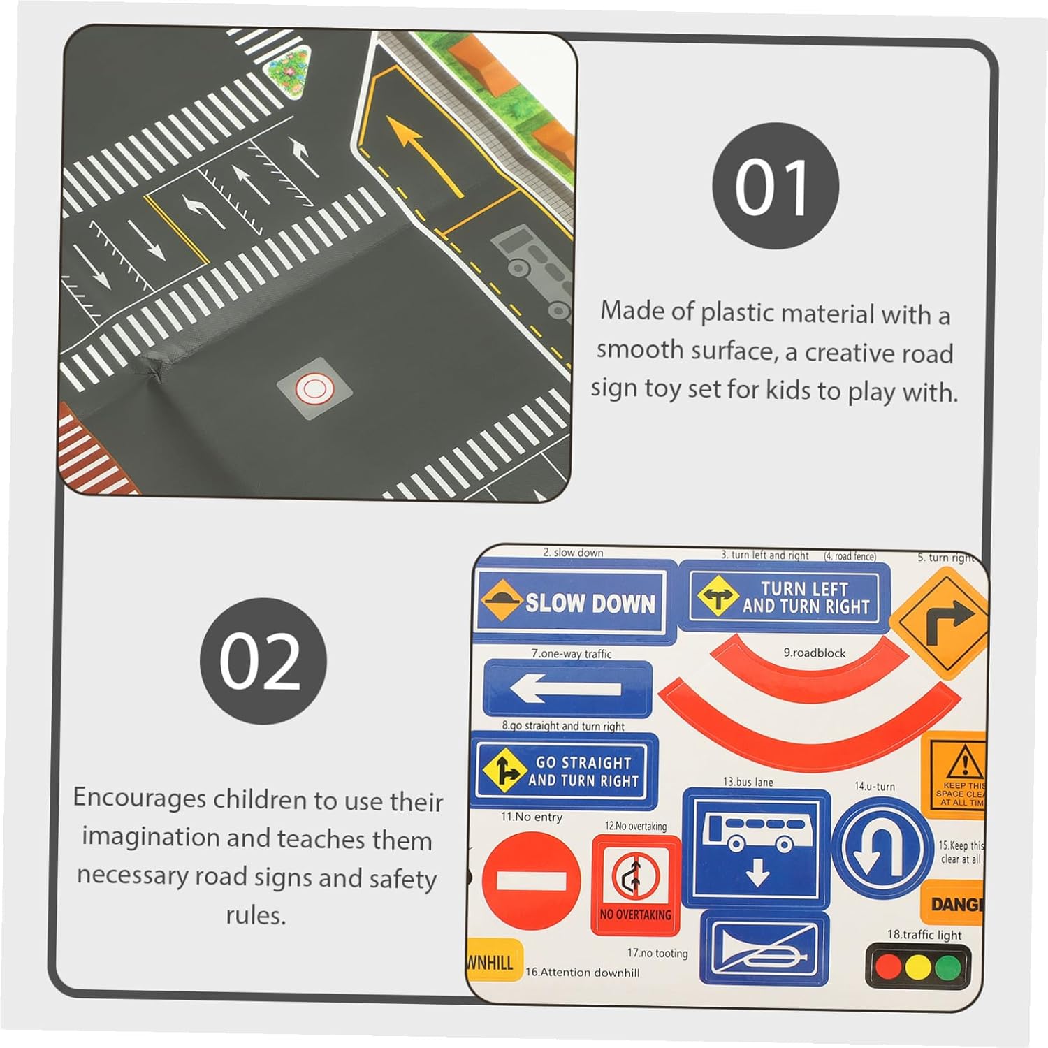 Mini segnali stradali: realizzati con materiali sicuri, pratici e durevoli, possono resistere alle lunghe ore di gioco dei , modellini di segnali stradali giocattolo Segnaletica stradale per : la simulazione del design della segnaletica stradale, dei segnali stradali e dei semafori, la mappa della città rende facile per i ricordarla e impressionarla, giocattolo del traffico Segnale stradale: i possono rafforzare l'interazione con gli amici o i familiari mentre si divertono per ore con giochi emozionanti, giocattoli per piccoli Giocattolo stradale: questi modelli di segnali stradali e recinzioni possono essere utilizzati anche come strumenti didattici per la conoscenza del traffico, impressionando di più i , giocattoli con segnali stradali Segnali stradali per : rafforzano il rapporto genitore-figlio, sono giocattoli interattivi per approfondire il tuo con i tuoi figli, giocattoli stradali per