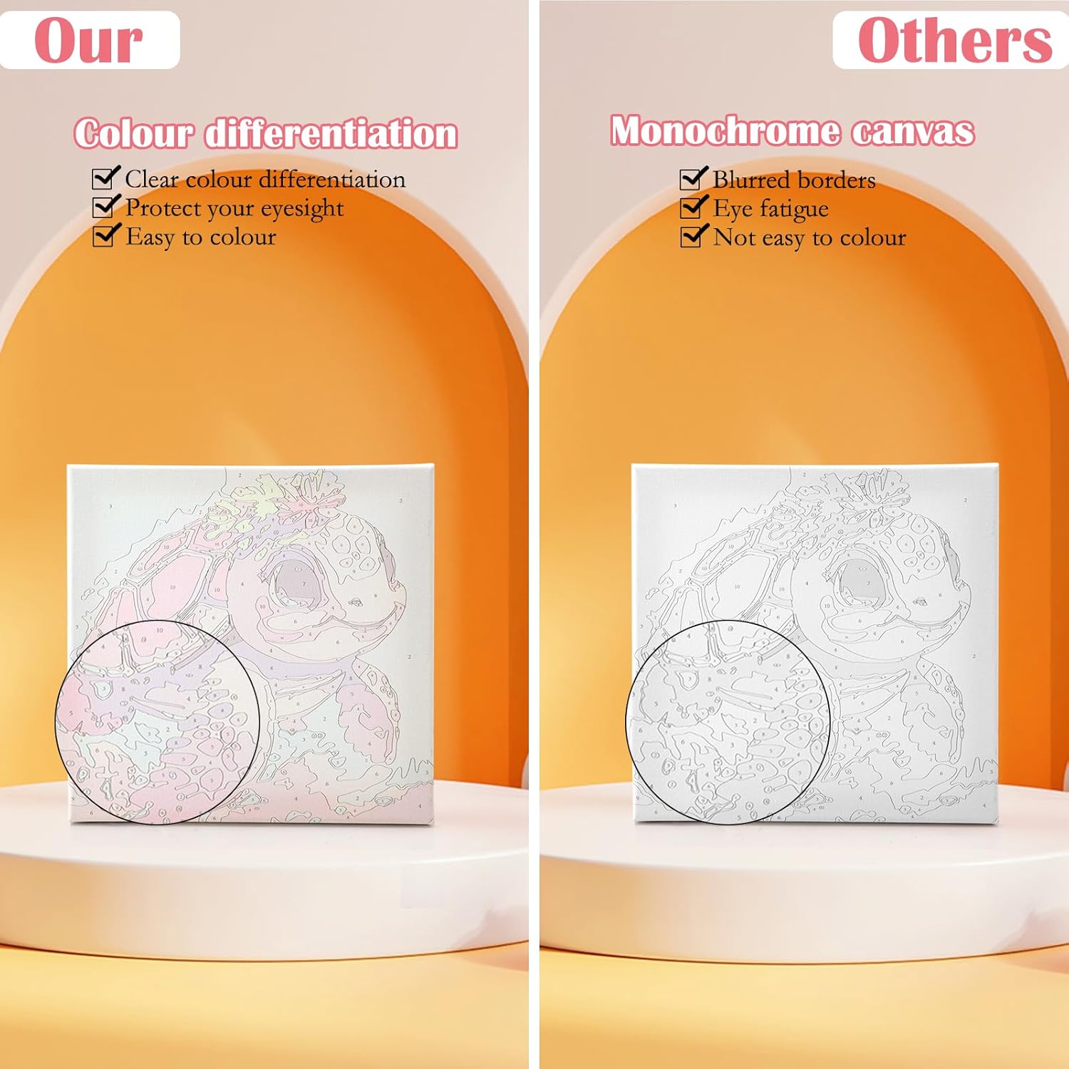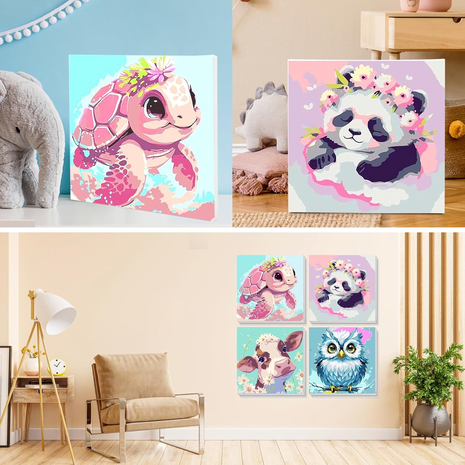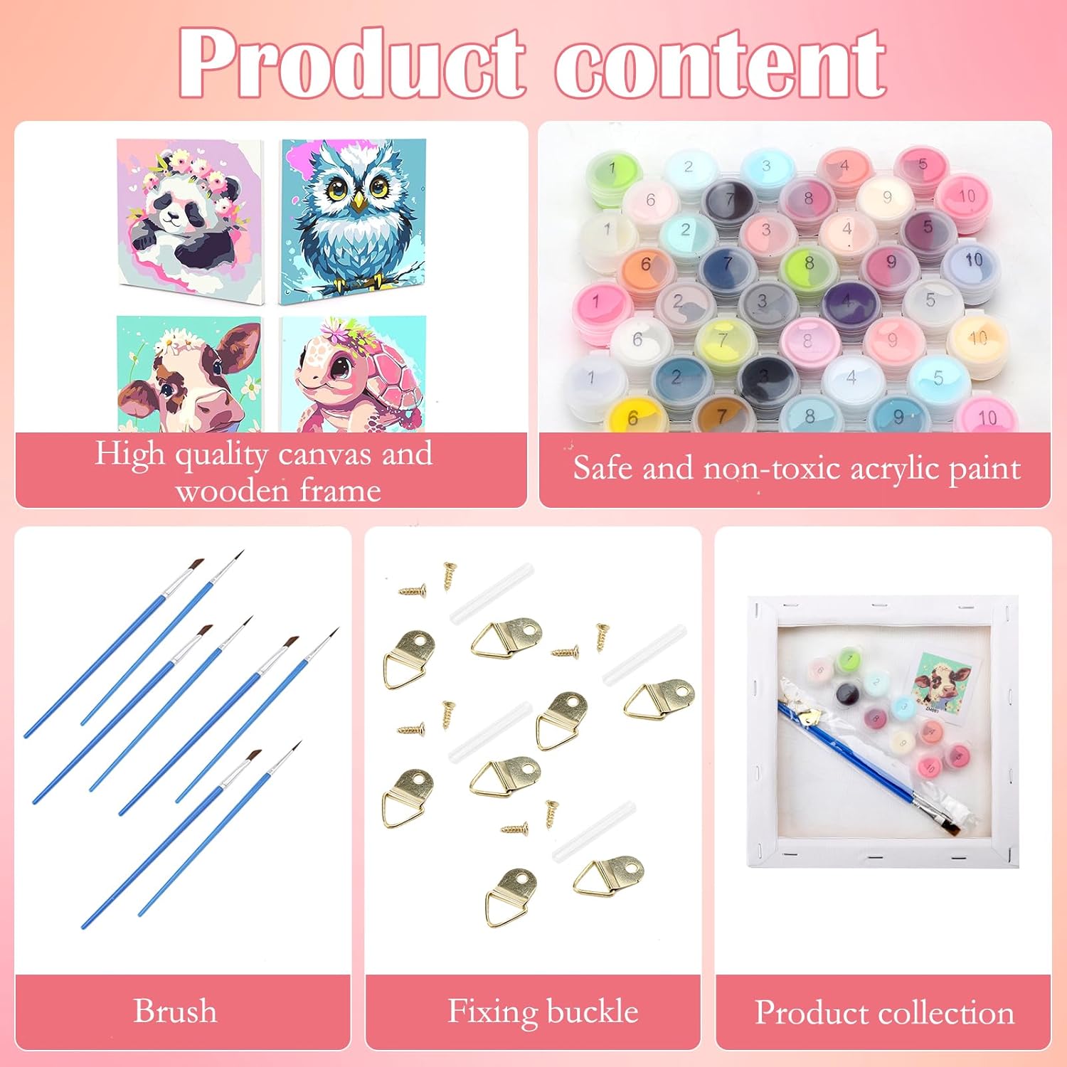 PITTURE ACRILICHE ECO-FRIENDLY E TELA COLORATA: I nostri Dipingere Con I Numeri sono realizzati con vernici acriliche sicure e salutari, che sono sicure e non tossiche e possono essere utilizzate dai bambini senza alcuna preoccupazione (che non sono commestibili). I nostri Dipingi con i Numeri sono realizzati in tela di lino colorata, e la tecnologia di stampa ad alta definizione rende le figure e i blocchi di colore più chiari e riduce efficacemente l'affaticamento degli occhi. CONTENUTO DEL PRODOTTO: Il prodotto è composto da 4 pezzi di tela con 4 motivi diversi: tartaruga, panda, mucca e gufo. Ogni set viene fornito con un set di strumenti e i colori necessari, quindi non è necessario acquistare altri strumenti. (Ogni quadro del Dipingere Con I Numeri viene fornito con una cornice, non è necessario il montaggio). COSA C'È PER IL BAMBINO: il Paint by Numbers è un fai-da-te che richiede le mani del bambino per essere realizzato. Il processo di pittura è molto semplice, Bambini Dipingere basta far corrispondere i numeri sulla scatola di vernice a quelli sulla tela, applicare i colori corretti con il pennello e dipingere subito. INTERAZIONE GENITORI-BAMBINI: i Disegnare i numeri consentono ai bambini di creare opere d'arte con la famiglia e gli amici, favorendo il legame e l'amicizia. I Dipingere Con I Numeri sono ideali per la famiglia, la scuola, le attività sociali e altre attività che arricchiscono la vita quotidiana. ADATTO COME REGALO E DECORAZIONE: il Dipingi con i Numeri non solo permette ai bambini di sperimentare il divertimento della creazione, ma coltiva anche la loro capacità di osservazione e pratica, il Paint by Numbers è un regalo perfetto per i bambini. Il lavoro finito può essere utilizzato non solo come decorazione, ma anche come regalo per amici e parenti, il che è ancora più significativo.