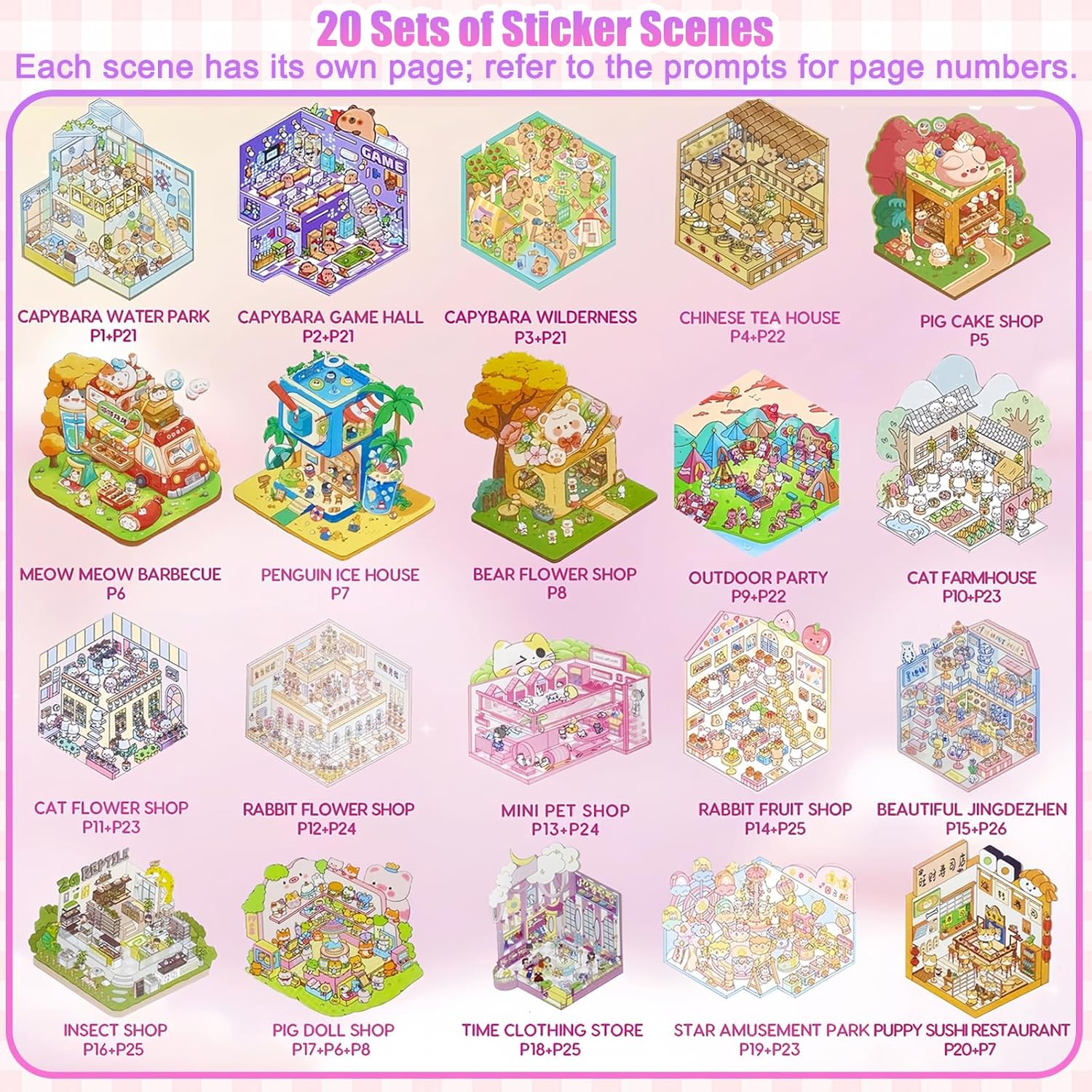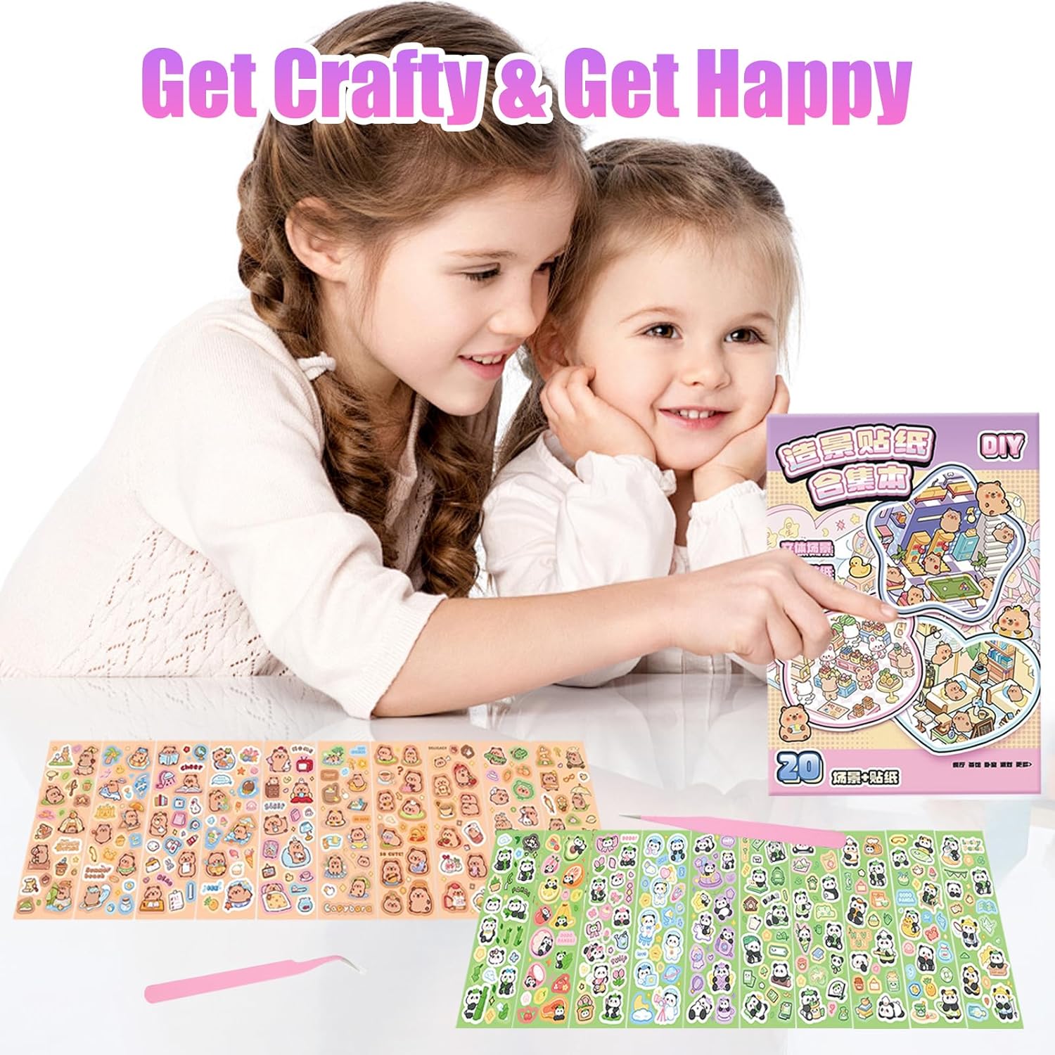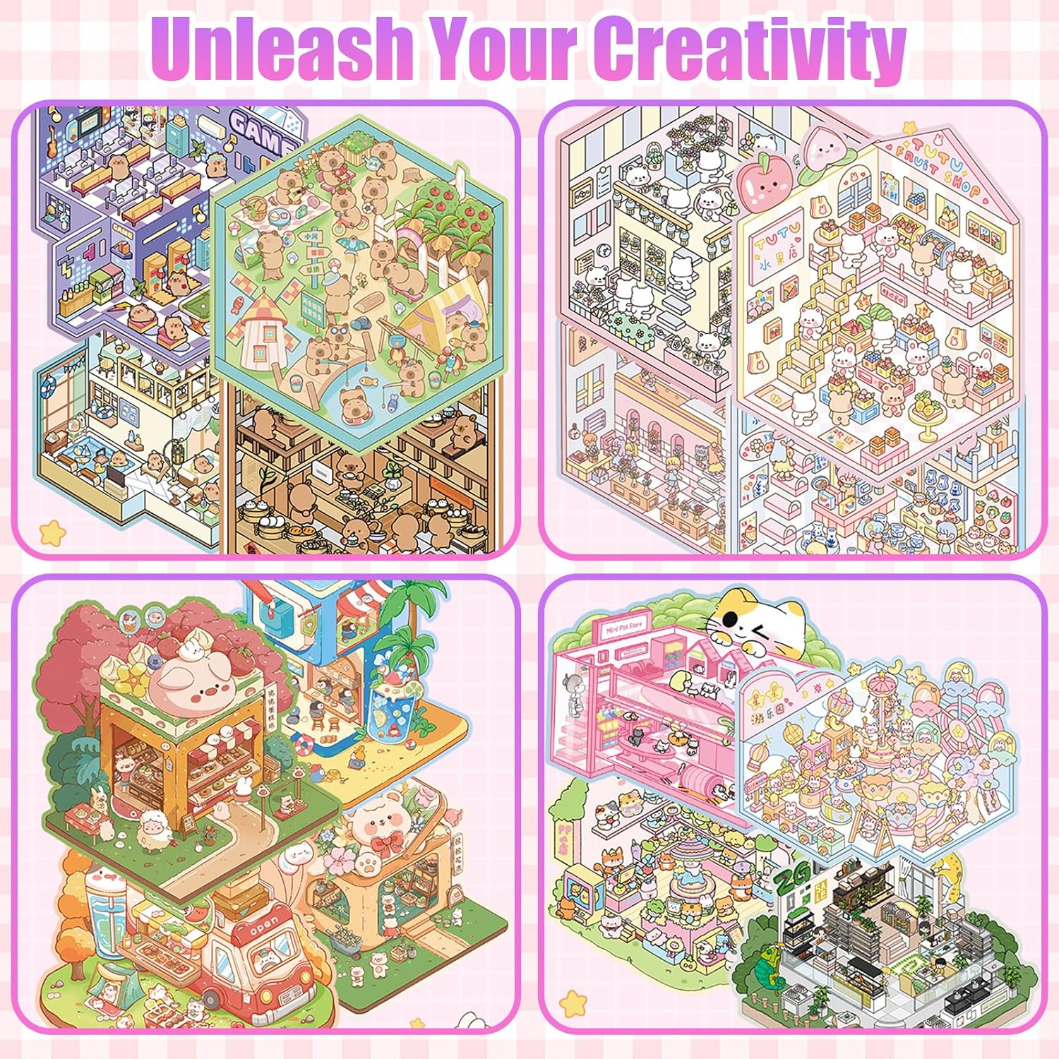 Sollievo dallo stress e divertimento creativo fai-da-te: se stai cercando sollievo dopo una lunga giornata o hai bisogno di uno sbocco creativo, la terapia con adesivi è la scelta perfetta. Calma le tue emozioni e lascia lo stress alle spalle attraverso il processo di collage meditativo utilizzando la concentrazione e la cromoterapia. Questo progetto promuove anche la pazienza e la concentrazione. Goditi ore di divertimento fantasioso e aumenta la tua creatività mentre crei la casa dei tuoi sogni. Scatena la tua creatività: questo set include 20 diversi pannelli di sfondo, 26 fogli di adesivi 3D, 10 simpatici adesivi panda e 10 giocosi adesivi Kapi. Con innumerevoli elementi dettagliati, le possibilità di combinazione sono infinite! I modelli di design sono inclusi per trarre ispirazione: seguili o lascia correre la tua immaginazione. Include 2 pinzette precise in acciaio inossidabile (diritte + curve) per un posizionamento perfetto. Materiali di alta qualità e facili da usare: le scene adesive 3D sono realizzate con carta e materiale PET di alta qualità, con stampa ad alta risoluzione e taglio preciso per colori vivaci e dettagli cristallini. I simpatici adesivi possono essere rimossi più volte e si adattano facilmente, consentendo un design personalizzato. Organizza la tua scena secondo i tuoi gusti! Il regalo ideale per creatività e relax - Gli adesivi in miniatura 3D sono perfetti per gli appassionati di artigianato, gli amanti del diario e chiunque desideri personalizzare il proprio ambiente. Che si tratti di compleanni, Natale, festival o bomboniere, queste scene adesive 3D sono un regalo unico e significativo che porta gioia e divertimento creativo e pratico. Possibilità di progettazione illimitate: gli adesivi offrono una varietà di motivi per carte con scene o da incollare su superfici lisce come quaderni, custodie per cellulari, tazze, bottiglie e altro ancora. Grazie all'adesione riutilizzabile, rimangono adesivi a lungo. Mostra il tuo stile personale e dai ai tuoi articoli un tocco colorato e allegro!