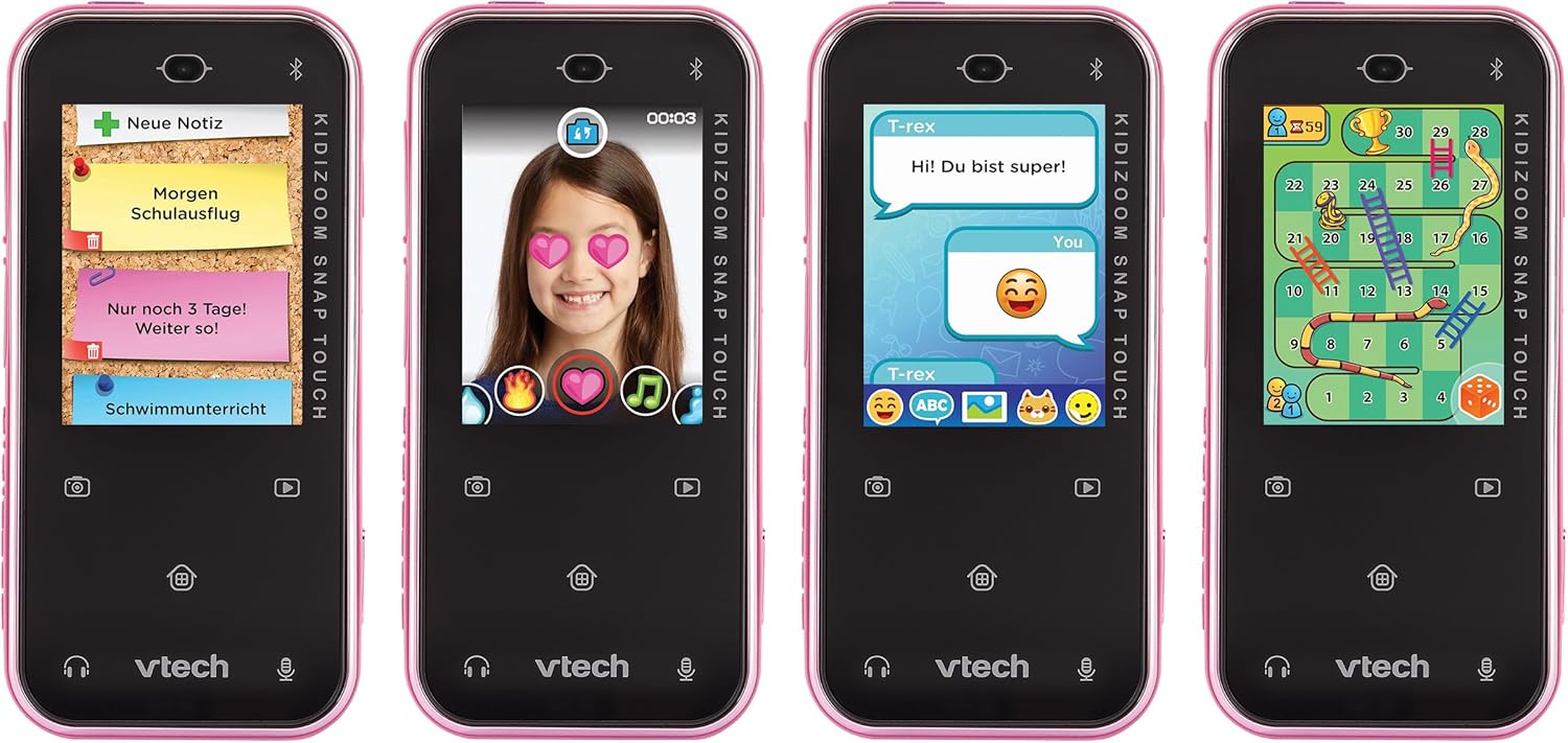 Ora in bundle insieme a una fantastica custodia per il trasporto. Grazie al display touch, la fotocamera digitale per bambini è facile da usare e sbloccata tramite riconoscimento facciale / Con la fotocamera anteriore e posteriore puoi scattare splendide foto, video e selfie Più di 30 giochi e app, nonché fantastici effetti e filtri rendono la fotocamera per bambini un giocattolo a tutto tondo / 2 dispositivi KidiZoom Snap Touch possono essere collegati tramite Bluetooth Invia messaggi di testo, foto e video tra 2 KidiZoom Snap Touch e insieme Gioca a fantastici giochi / Lettore musicale integrato e presa per cuffie Invia messaggi e foto tra 2 KidiZoom Snap Touch, crea e scambia adesivi, registra video con filtri in tempo reale e molto altro ancora / Slot per cuffie per ascoltare musica