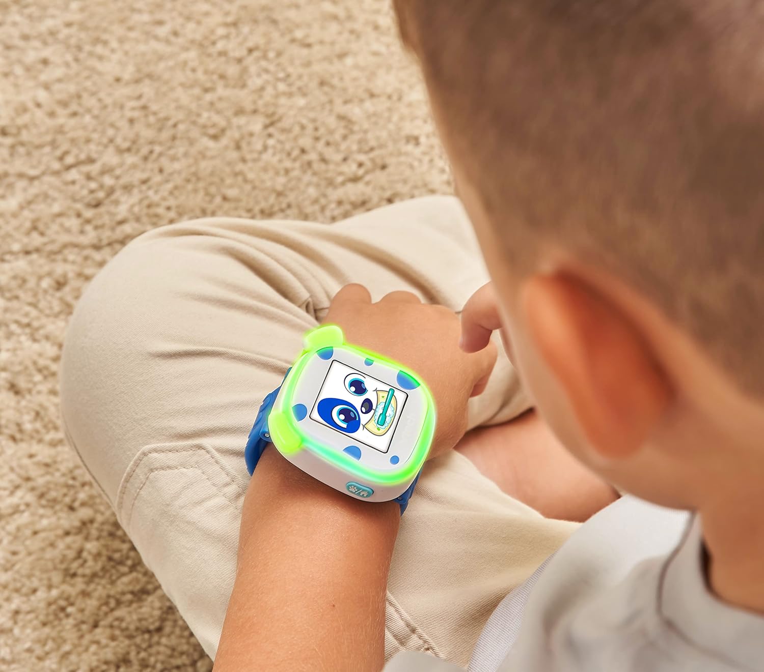 Prendetevi cura del cucciolo e allo stesso tempo imparate a leggere l'orologio: l'orologio per bambini con cornice luminosa e un simpatico animale domestico convince con molti giochi didattici e funzioni per la vita quotidiana dei bambini. Che si tratti di una passeggiata o di una toelettatura, il dolce amico a quattro zampe vuole essere accudito e non vede l'ora di imparare trucchi e parlare con il suo padrone o la sua padrona / Reagisce quando viene toccato lo schermo Più di 20 quadranti analogici e digitali e l'annuncio dell'ora rendono imparare a leggere l'orologio un gioco da ragazzi / Sveglia, cronometro e promemoria ad es. B. aiuto prima di andare a dormire nella routine quotidiana Collega due KidiWatch tramite Bluetooth e scambia faccine e messaggi o gioca / 3 mini giochi promuovono anche il pensiero logico e la velocità di reazione Fornitura: 1 x VTech My First KidiWatch / Orologio da polso interattivo con promemoria, timer, sveglia e giochi / Versione tedesca / Età 3-8 anni / 1 x batteria ricaricabile / Articolo n.: 80-552804