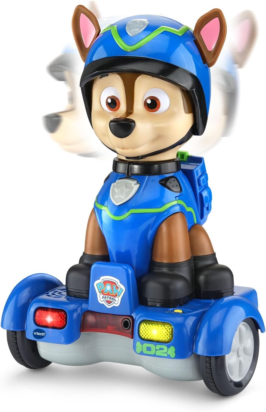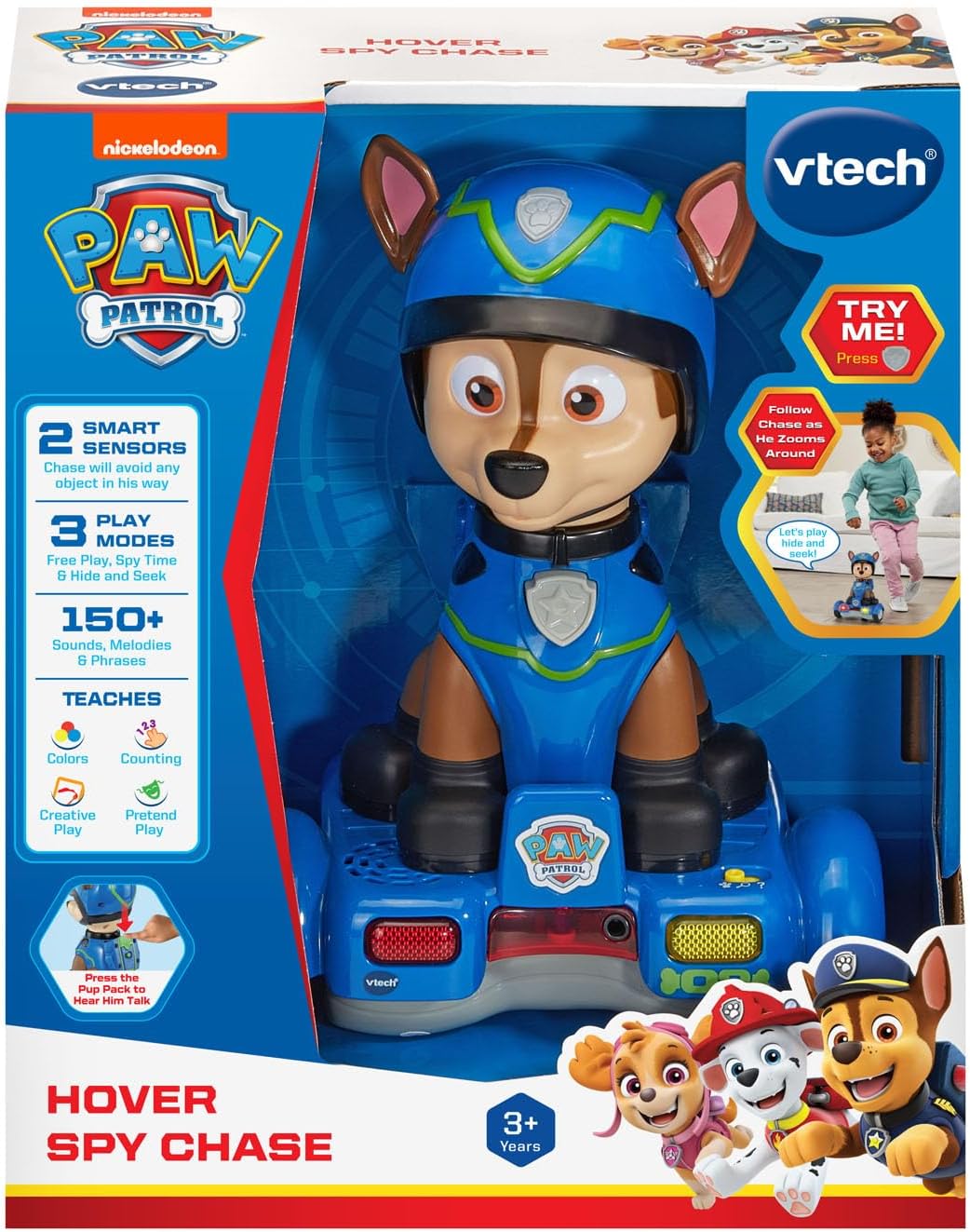Spy Chase è sul caso e può rotolare in avanti, indietro ed evitare gli ostacoli mentre gira la testa Gioca una partita a I Spy e ascolta gli indizi di Chase; premi il suo tag cucciolo o i pulsanti del pacchetto dei cuccioli per selezionare ciò che sta vedendo Una spia è brava a trovare le cose; gioca a nascondino con Chase chiudendo gli occhi e contando fino a 20 mentre si nasconde, poi vai a cercarlo Ascolta Chase chiamare la PAW Patrol premendo il suo tag cucciolo e ascolta quali strumenti ha premendo il pulsante della confezione del cucciolo Destinato a partire dai 3 anni; richiede 4 batterie AA; batterie incluse solo a scopo dimostrativo; batterie nuove consigliate per un uso regolare