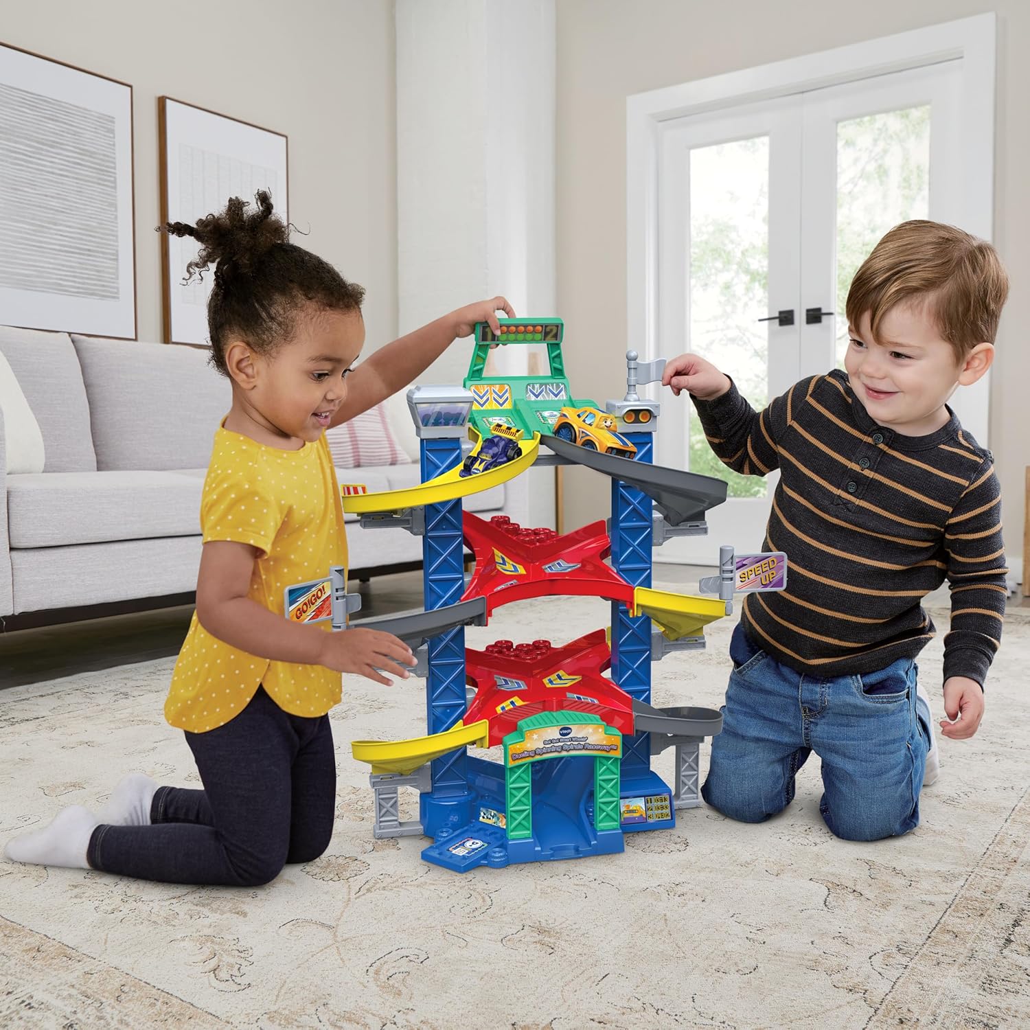 LA VERSIONE FRANCESE di questo circuito auto Tut Tut Bolides Serie Pro più vero della natura, permette ai bambini dai 2 anni di inventare chilometri di storie svalendo tutti i piani di questa pista da corsa a spirale! La collezione Serie Pro comprende automobili e universo di gioco dal design realistico ed elegante Ai tuoi marchi… Pronti? Vattene. I bolidi vengono lanciati in gara, Lenny prende la testa anche se è seguito da vicino dalla macchina da corsa rivale. Disastro... Eccoli che si scontrano al livello del crocevio! La suspenens è al suo apice, ultima svolta per prendere il beneficio… Il Tut Tut Bolide sprinte per finire sul podio, ed è vinto! CONTENUTO: questo cofanetto per auto include 1 Tut Tut Bolide Serie Pro, 1 piccola auto da corsa non elettronica, e 36 accessori e parti di gioco per guidare la pista da corsa e immaginare le avventure dei suoi bolidi. 3 Zone Magiche. Lenny as del circuito canta 3 canzoni e suona 6 melodie. Auto spegnimento automatico. Funziona con 2 batterie LR03-AAA incluse. Questo giocattolo deve essere assemblato da un adulto. Questo giocattolo per bambini è compatibile con tutte le collezioni Tut Tut Bolides. Gli universi di gioco si collegano tra loro per costruire infiniti tour e condividere grandi avventure! TUT TUT BOLIDES sono piccole auto musicali, parlanti e luminose che stimolano l'immaginazione dei bambini a partire da 1 anno. Sono anche interattive poiché sono riconosciute dalle Aree magiche situate sulle tracce degli universi di gioco e attivano contenuti audio aggiuntivi!