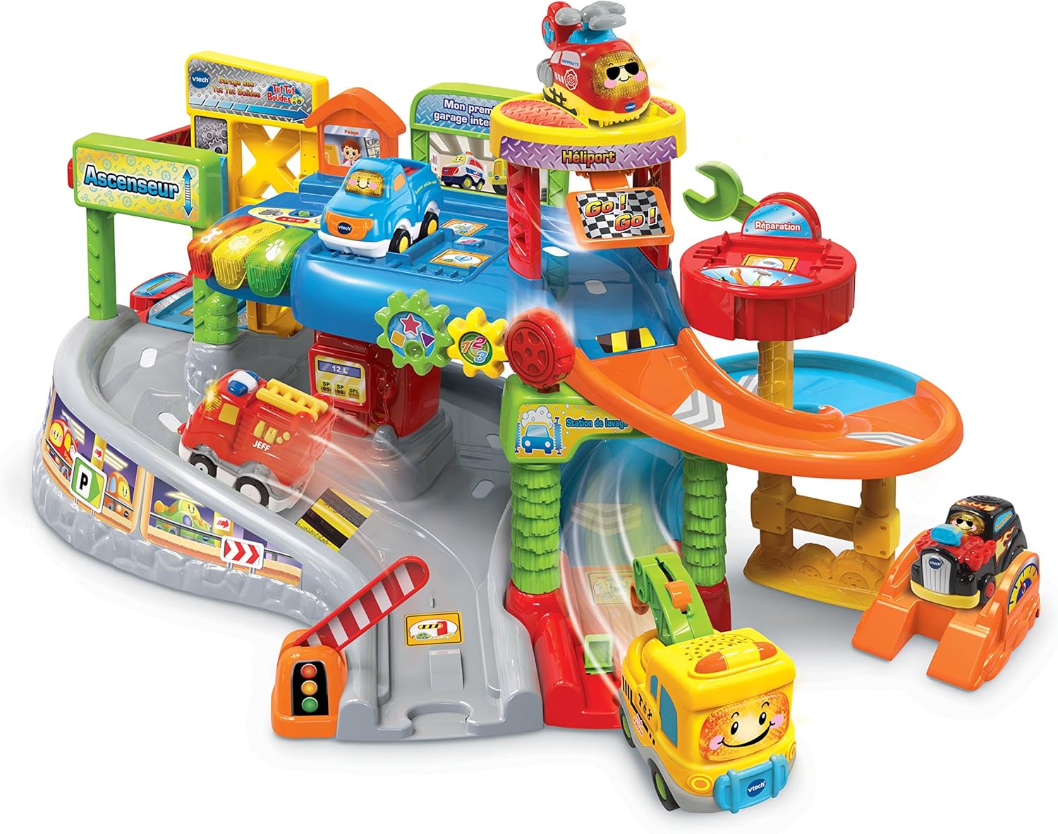 Versione francese Il mio primo garage interattivo Tut Tut Bolides ha 3 pulsanti luminosi per scoprire i colori, i diversi elementi del garage e le nozioni di sicurezza stradale. Questo super garage interattivo include anche un ascensore che riconosce i piani e una super discesa per andare al centro di lavaggio. Grazie a questo garage interattivo e parlante, il tuo bambino scopre i colori, alcuni strumenti e molto altro ancora. Il bambino sviluppa le sue capacità motorie manipolando molti elementi: ascensore, eliporto, chiave regolabile, ingranaggi. Fare salire o scendere i veicoli con l'aiuto dell'ascensore, ruotare gli ingranaggi e premere i pulsanti luminosi sono tutte attività che promuovono lo sviluppo delle capacità motorie del bambino. Il garage interattivo VTech ha il veicolo Ethan, il professionista della risoluzione dei problemi, che parla, canta e possiede la propria personalità. Più di 40 frasi, canzoni, melodie e suoni ritmano il gioco. Per interagire Ethan, basta premere la testa o installarlo su un'area magica. Ciò consente la stimolazione sensoriale nel bambino. Le 9 aree magiche scatenano frasi e suoni divertenti a Ethan il minimarket. Queste nove Zone magiche innescano a Ethan il professionista della risoluzione dei problemi (e gli altri Tut Tut Bolides e Animo venduti separatamente) frasi e canzoni che promuovono lo sviluppo del linguaggio nel tuo bambino. Questo garage interattivo è compatibile con veicoli e universo Tut Tut Bolides e Animo. Il tuo bambino potrà divertirsi con tutti i suoi Tut Tut!
