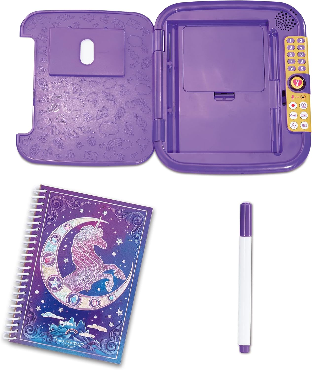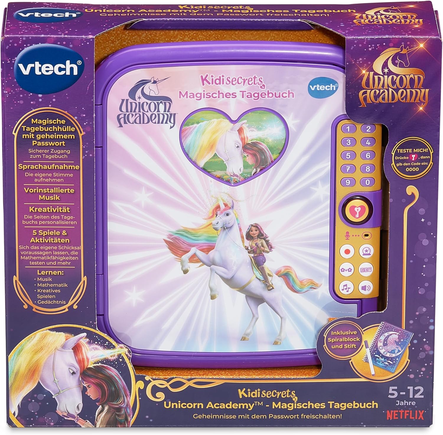 5 modalità di gioco: registrazioni vocali (con i tasti numerici per registrare e salvare le registrazioni vocali), collezione di fiori (contare quanti fiori Ava e Sophia hanno raccolto), catena numerica (memorizzare e riprodurre correttamente una sequenza di numeri), libro magico (fare domande sì, no sul microfono e ottenere risposte) e tempo di musica (ascoltare melodie e con aggiungi fantastici effetti sonori ai tasti numerici). Scomparto segreto integrato nella copertina del diario. Contenuto di apprendimento: numeri e conteggio, addizione, memoria e musica. Posizione per la personalizzazione del diario (foto esemplificativa e disco in plastica trasparente per proteggere la foto inclusi). Con penna abbinata per il portapenne e blocco a spirale integrato (30 fogli, DIN A6). Grande pulsante luminoso per aprire la custodia. 10 tasti numerici e pulsante per reimpostare la password all'interno del vano batteria. Microfono integrato per un massimo di 10 registrazioni vocali con una durata di 40 secondi. Scomparto batteria a prova di bambino, spegnimento automatico e controllo del volume
