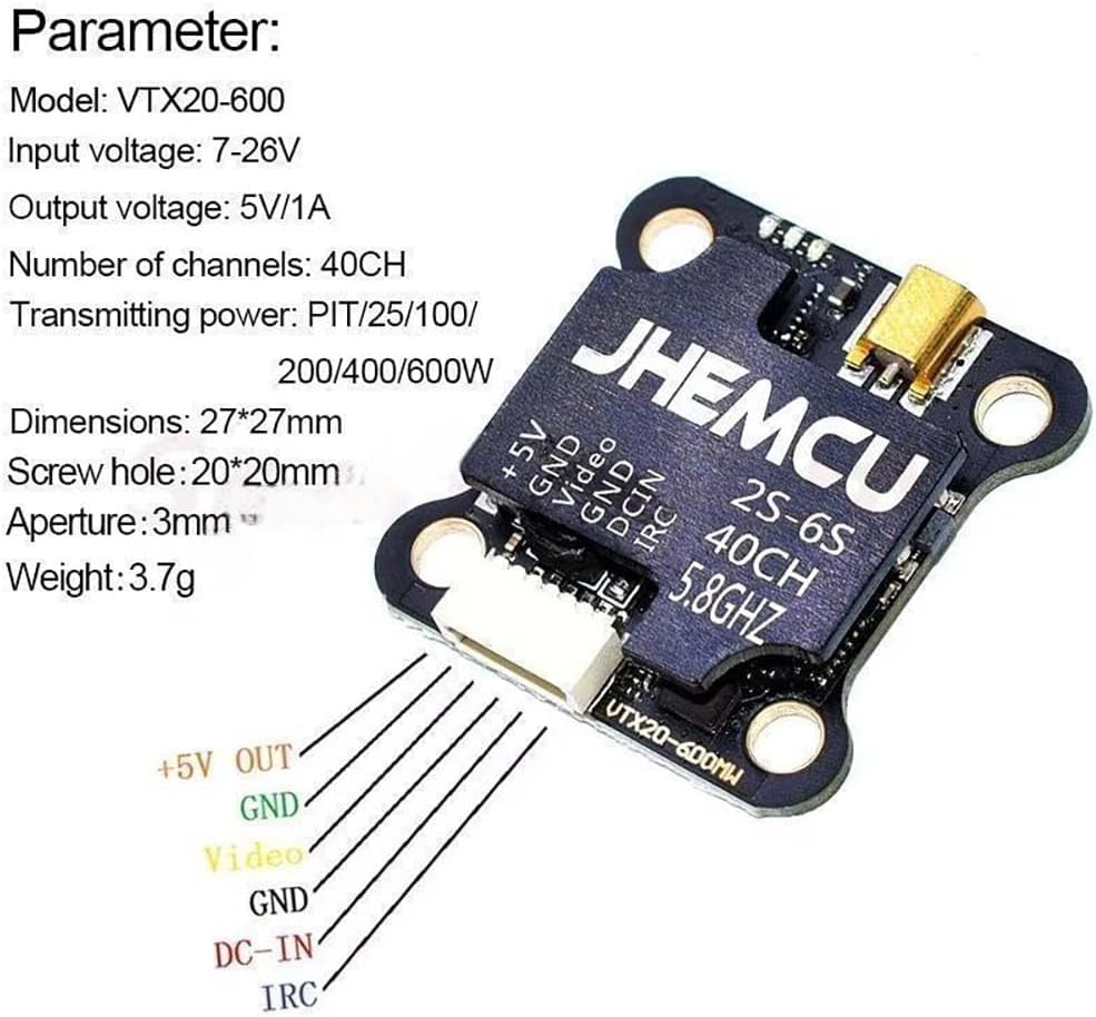 La gamma di frequenza 40CH garantisce una comunicazione chiara e priva di interferenze per i piloti FPV Con soli 3 g, il VTX20 è incredibilmente leggero, aggiungendo un peso minimo al tuo drone da corsa FPV Con fori per viti da 20 x 20 mm e un diametro standard di 3 mm, il VTX20-600 si integra perfettamente nella tua configurazione