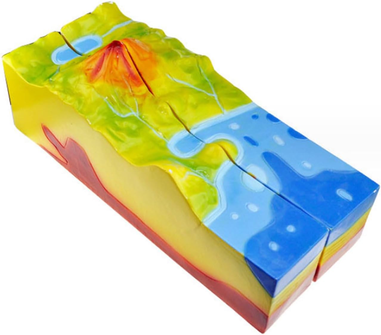 AMPIAMENTE USATO: Perfetto per l'insegnamento strumento della scuola, ornamenti decorativi della famiglia e può essere utilizzato anche come regali per il dono. Con bel colore e armonioso e ragionevole corrispondenza dei colori. QUALITÀ DUREVOLE: Realizzato con materiali e resina FRP ad alta quatity, artigianale, sicuro e non tossico. I bordi e gli angoli del prodotto sono lisci e confortevoli e la trama è calda e delicata.Ti consente di essere sicuro e protetto. Il solido rettangolare, permette di osservare il terreno vulcanico da tutti i lati. Adatto per dimostrare o comprendere la struttura del terreno vulcanico. DIMOSTRARE LEZIONI: Attraverso lo studio del modello geologico del vulcano, gli studenti hanno una comprensione più completa della struttura del vulcano. È un aiuto ideale per l'apprendimento per studenti e insegnanti, e una collezione molto buona per tutti. Strumento di apprendimento ideale per le aule . NOTA: L'aspetto realistico riflette le nostre grandi abilità di modellazione e le richieste estreme.Il mestiere fatto a mano ha piccole differenze che rende ogni prodotto unico.
