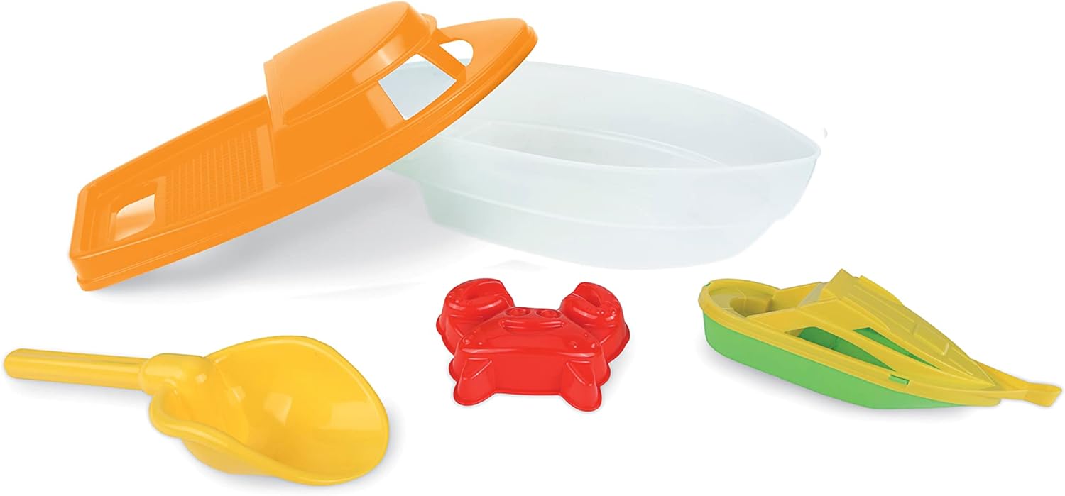 Set colorato - adatto per far giocare i bambini con acqua e sabbia in spiaggia e nella sabbiera. Contenuto: una pala, 2 stampi per sabbia (conchiglia o granchio), barca, macina per sabbia o stampo per sabbia, assortiti Sviluppa fantasia, capacità motorie e abilità sociali in modo divertente Made in Europe: plastica di alta qualità, ottima fattura, prodotto eccellente e durevole. Giocattoli sicuri e innocui: privi di sostanze nocive, BPA, ftalati e plastificanti pericolosi