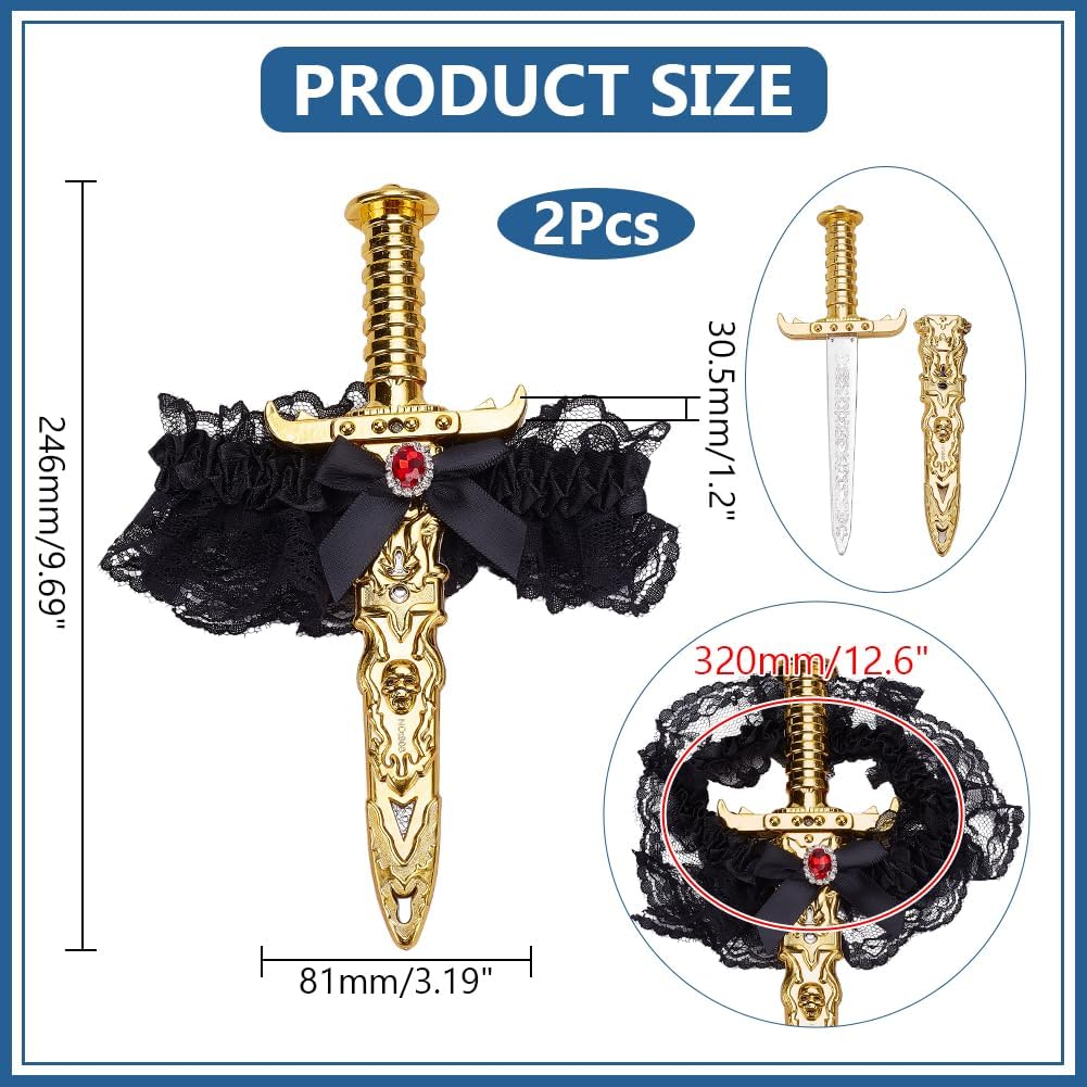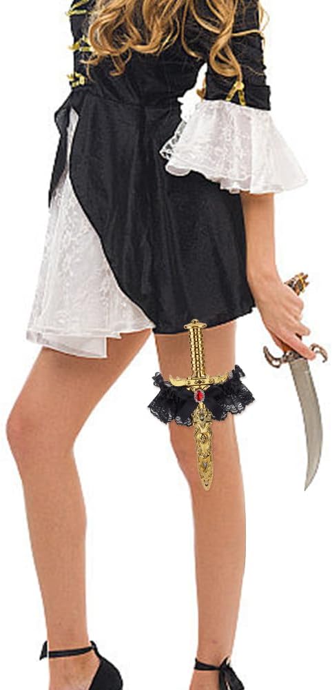 Set di pugnali da pirata da 2 pezzi: include 2 pugnali da pirata accattivanti e intricati (ciascuno lungo circa 9,7 pollici) con fondine morbide, regolabili e confortevoli per le cosce da donna, ideali come accessorio per costumi da pirata per migliorare il tuo look a tema pirata. Materiali delicati e di alta qualità: questi pugnali a spada imitazione sono realizzati in plastica leggera e pizzo morbido, che ben si adatta ai costumi da pirata, con un tocco delicato che è facile da maneggiare, questo lo rende ideale per le donne - perfetto per donne che cercano comodi accessori da pirata Design regolabile e robusto: le fondine da coscia da donna sono caratterizzate da un elastico elastico durevole e di alta qualità che si adatta in modo flessibile a diverse forme e dimensioni delle gambe, mentre le cuciture rinforzate e la fodera antiscivolo lavorano insieme per mantenere i pugnali saldamente e saldamente in posizione - nessuna separazione durante il movimento per un gioco di ruolo da pirata attivo. Elegante estetica da pirata: la combinazione di giarrettiera in pizzo e pugnale unisce funzionalità e stile. Aggiunge un tocco audace, feroce, ma allo stesso tempo chic e femminile agli accessori da pirata da donna: risalta brillantemente durante vivaci feste a tema, coinvolgenti eventi cosplay o servizi fotografici di pirati con questo design unico e accattivante Multi-Occasion Essential (versione nera): opzione nera senza tempo, fatta su misura per Halloween, cosplay di pirati, spettacoli teatrali o serate a tema. Questi set di giarrettiere con pugnale da pirata migliorano i costumi da pirata per le donne in modo sottile e si adattano perfettamente sia alle uscite informali che alle occasioni speciali.