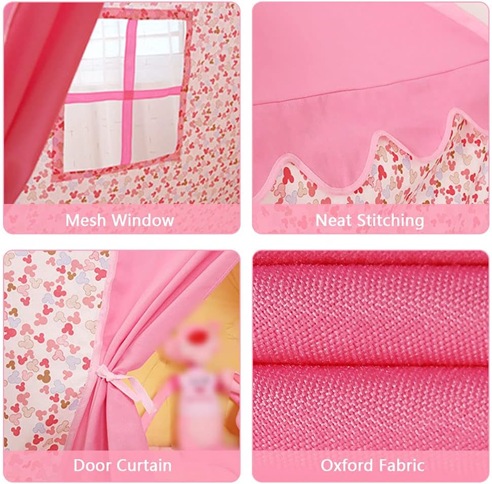 [Creazione di un Regno Magico] Lascia che l'immaginazione del tuo bambino si scateni decorando questa casetta delle fate con i suoi accessori preferiti. Il design versatile offre infinite possibilità per il tempo di gioco. [Easy Setup & Portability] Impostazione di questa tenda da gioco è un gioco da ragazzi senza strumenti. La borsa di stoccaggio inclusa rende comodo da trasportare e riporre, buono per avventure interne ed esterne. 【设计宽敞通风】帐篷尺寸为130x100x130厘米,为2-4名儿童提供充足的活动空间。侧面开窗增强空气流通,保持内部凉爽通风,带来持久欢乐。 [Buona Scelta] Questa incantevole tenda da gioco a forma di castello da principessa è una scelta ideale per compleanni o festività. Offre spazio speciale ai bambini per leggere, rilassarsi, divertirsi e godersi giochi di fantasia. [Qualità del materiale] Realizzata in tessuto oxford di alta qualità con un'ottima fattura, questa tenda da gioco è traspirante e costruita per durare. Il tessuto resistente garantisce un utilizzo a lungo termine mantenendo un ambiente confortevole per i bambini che ci giocano.