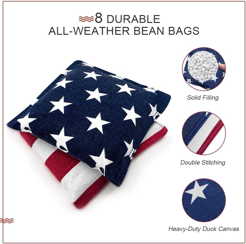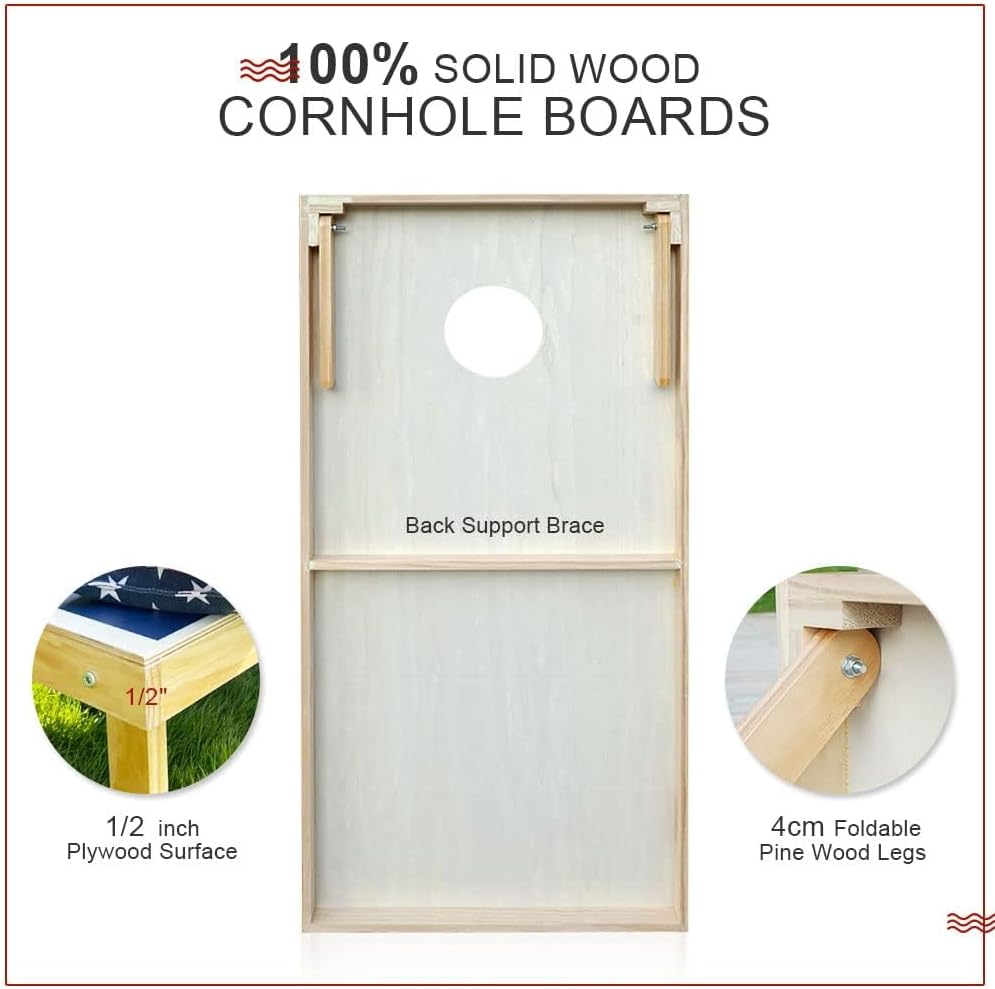 Struttura robusta: le gambe e il telaio del nostro set di fori di mais sono realizzati in legno di pino di alta qualità al 100%, molto superiore alle normative ACA. La tavola stabile del cornhole può ridurre le vibrazioni e resistere al peso degli adulti, offrendoti una migliore esperienza di gioco di lancio Set per cornhole da 3 x 2 m: la struttura in legno 3 x 2 ' con superficie in compensato multistrato, giunti mitrati, gambe pieghevoli da 4 cm e supporto posteriore garantiscono stabilità e durata. Include custodia per il trasporto personalizzata e 8 pouf per un set completo di giochi per cornhole all'aperto Tecnologia di stampa a caldo unica: le nostre tavole per cornhole sono dotate di stampa a caldo unica, che le fa risaltare con un motivo retrò. Questo metodo è più durevole, resiste ai graffi e allo sbiadimento meglio della stampa standard Giochi e attività all'aperto: le gambe pieghevoli si adattano facilmente in una borsa per il trasporto per un comodo trasporto a feste, campeggio, spiaggia, prato o cortile. Questo classico gioco è adatto a tutte le età, portando divertimento a qualsiasi luogo Divertimento per tutti: il gioco di lancio del pouf rende barbecue, feste, matrimoni e cortile all'aperto pieni di divertimento, che porta molti momenti felici e amici alla tua famiglia. Ed è anche la scelta migliore come regalo di festival
