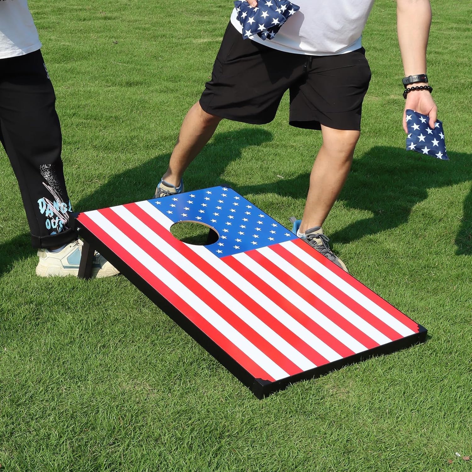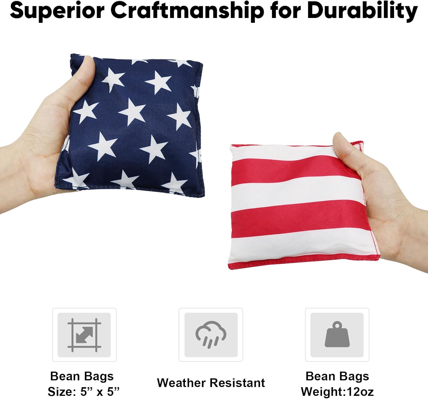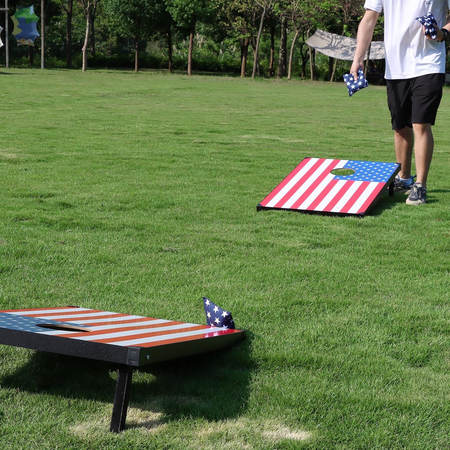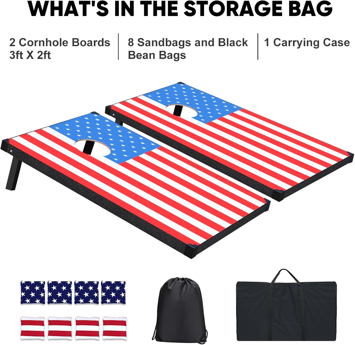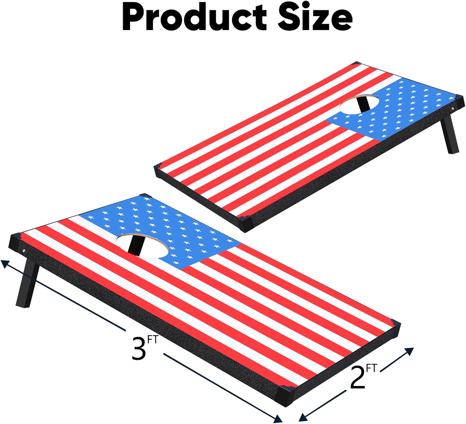 Classico set da gioco per cornhole: questo set completo include 2 tavole pieghevoli in legno MDF (3 x 2 '), 8 sacchi per cornhole di dimensioni regolamentari per tutte le stagioni (4 rossi + 4 blu) e una resistente borsa per il trasporto con cerniera Oxford. Ideale per il cortile e il divertimento all'aperto con la famiglia e gli amici Struttura robusta: realizzata in legno MDF di alta qualità con uno spessore del telaio di 4 cm, la nostra tavola cornhole regolabile garantisce resistenza e durata. Due staffe pieghevoli impediscono deformazioni e rimbalzi, rendendolo perfetto per un divertimento di lunga durata Esclusiva tecnologia di stampa a calore: grazie all'esclusiva tecnologia di stampa a caldo, le nostre tavole per cornhole si distinguono per il loro motivo retrò. Il design è resistente ai graffi e allo sbiadimento, garantendo che il tuo set di gioco sembri vivace e nuovo anche dopo un uso prolungato Giochi e attività all'aperto: con gambe pieghevoli, questo set per cornhole è facile da trasportare a feste, gite in campeggio, spiagge, prati o cortili. Goditi il classico gioco di lancio del pouf ovunque tu vada, adatto a tutte le età Garanzia: Garantiamo soddisfazione al 100%. Se riscontri problemi di qualità, offriamo un rimborso completo o una sostituzione. Hai qualche problema? Contattaci per assistenza tempestiva