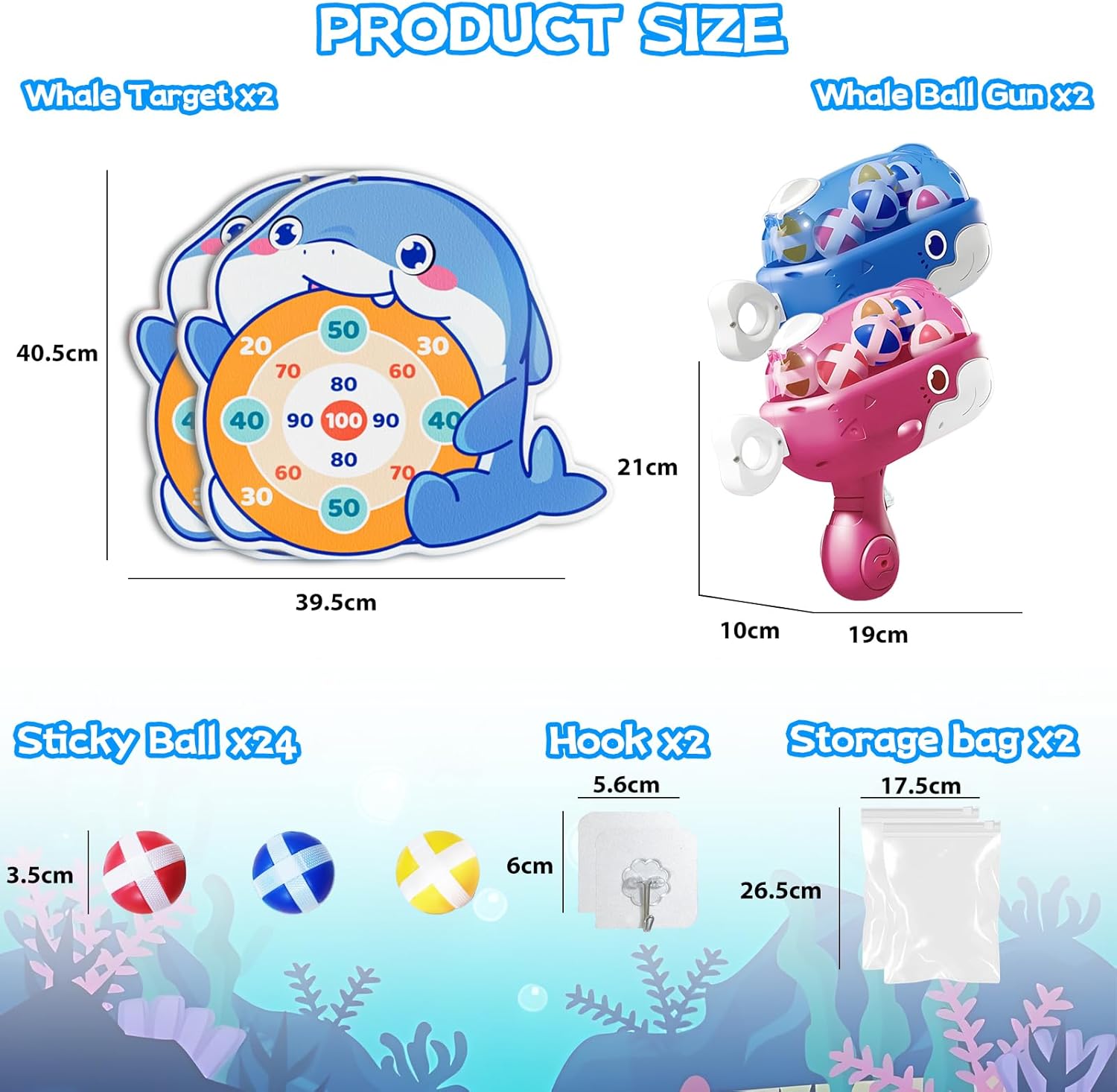 Set di giocattoli da sparo 5 in 1: il set di giocattoli include 2 pistole colorate (blu + rosa), 24 palline adesive sicure, 2 bersagli di balena, 2 ganci e 2 tasche portaoggetti, pronto per il gioco! Adatto per giocattoli a partire dai 3 anni, favorisce la coordinazione occhio-mano dei bambini Materiali sicuri: il nostro giocattolo da tiro è realizzato con materiali sicuri e non tossici, mentre i bersagli di balena sono realizzati in tessuto morbido di alta qualità. I bersagli aderiscono saldamente alle palline piccole, quindi non devi preoccuparti che possano cadere Divertimento nell'apprendimento e nell'interazione genitore-figlio: questo giocattolo da tiro a disco di balena allena la coordinazione occhio-mano e la concentrazione e promuove lo sviluppo delle abilità motorie. È adatto per esercizi singoli o competizioni multiplayer, riduce il tempo sullo schermo e garantisce un'allegra interazione con tutta la famiglia Facile da giocare e buona conservazione: ricarica → trascinamento → mira → tiro, tre passaggi per divertirsi! La confezione include 2 tasche portaoggetti e 2 ganci per mantenere tutto ordinato e ordinato Il regalo perfetto per le vacanze: il giocattolo è conforme agli standard di sicurezza UE ed è adatto per bambini a partire dai tre anni. Se sei ancora alla ricerca di un regalo per Halloween, Ringraziamento o compleanno di tuo figlio, questo giocattolo di destinazione è quello che fa per te