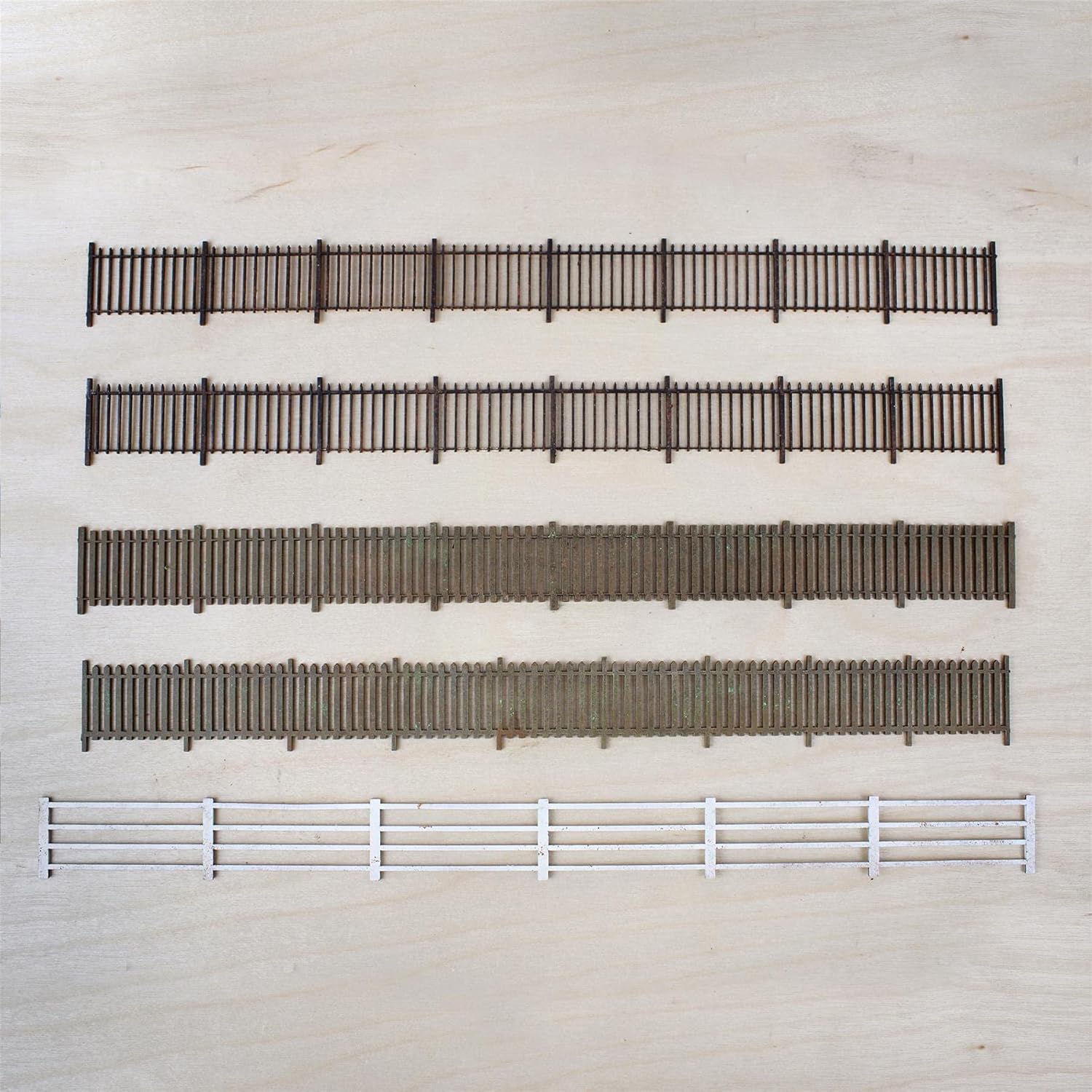 Scegli tra gamma di staccionate modello (pacchi da 8) Tutte le staccionate vengono ricavate da una tavola di MDF da 1mm di ottima qualità e in scala 00 Può essere modellato a piacere grazie alla sua grande flessibilità e può anche essere tagliato in sezioni più piccole a seconda delle necessità La Lunghezza Totale delle Staccionate é 2.1m circa; Possono Essere Modellate e Tagliate a Piacere Scegli tra la staccionata da fattoria, la staccionata in stile ferro, la staccionata a pannelli, la staccionata classica o la staccionata di sicurezza