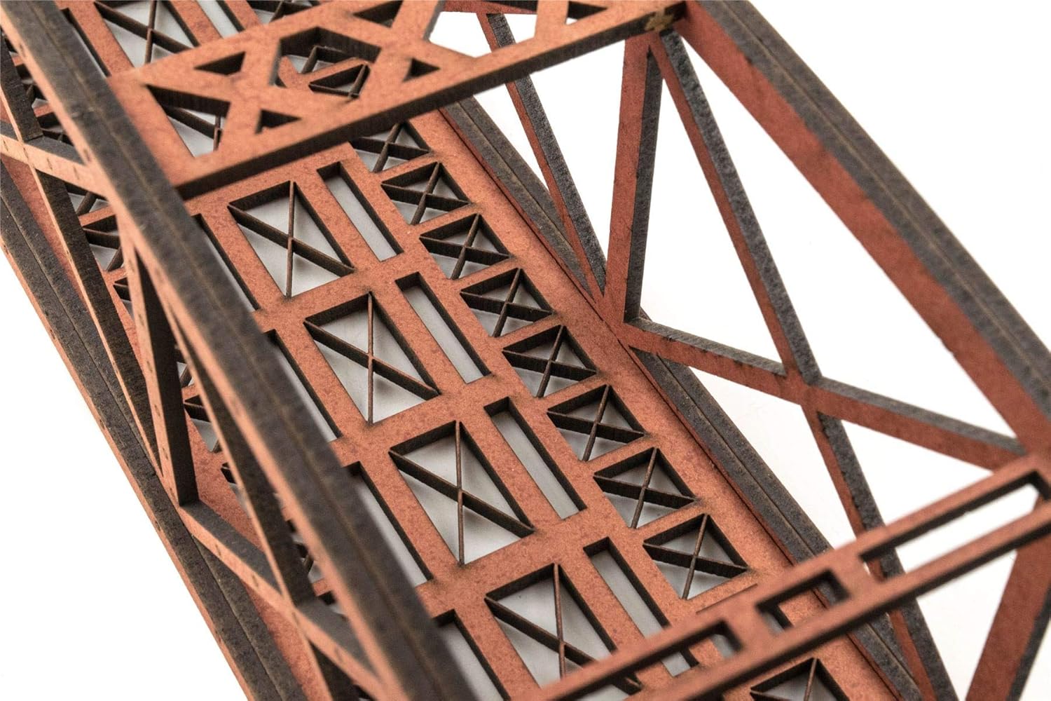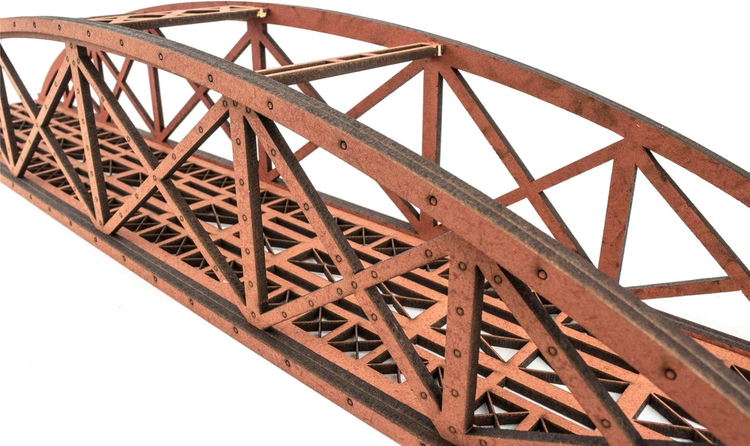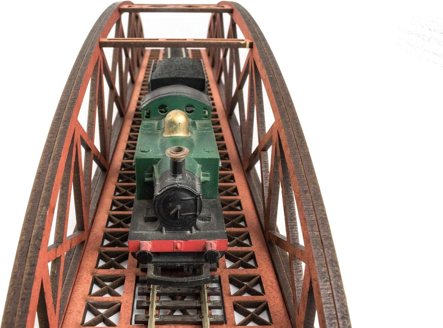 Ponte ad Arco con Binario Singolo Rosso da 560mm (high detail) della War World Scenics Realizzato in MDF (Truciolato di Media Densità) da 3mm tagliato a laser Facile da costruire e con rifiniture realistiche e robuste adatte ad ogni modello ferroviario in scala HO/OO Parte della nostra vasta gamma di scenari per modellismo ferroviario Dimensioni (L x L x A): 560 x 90 x 85 mm