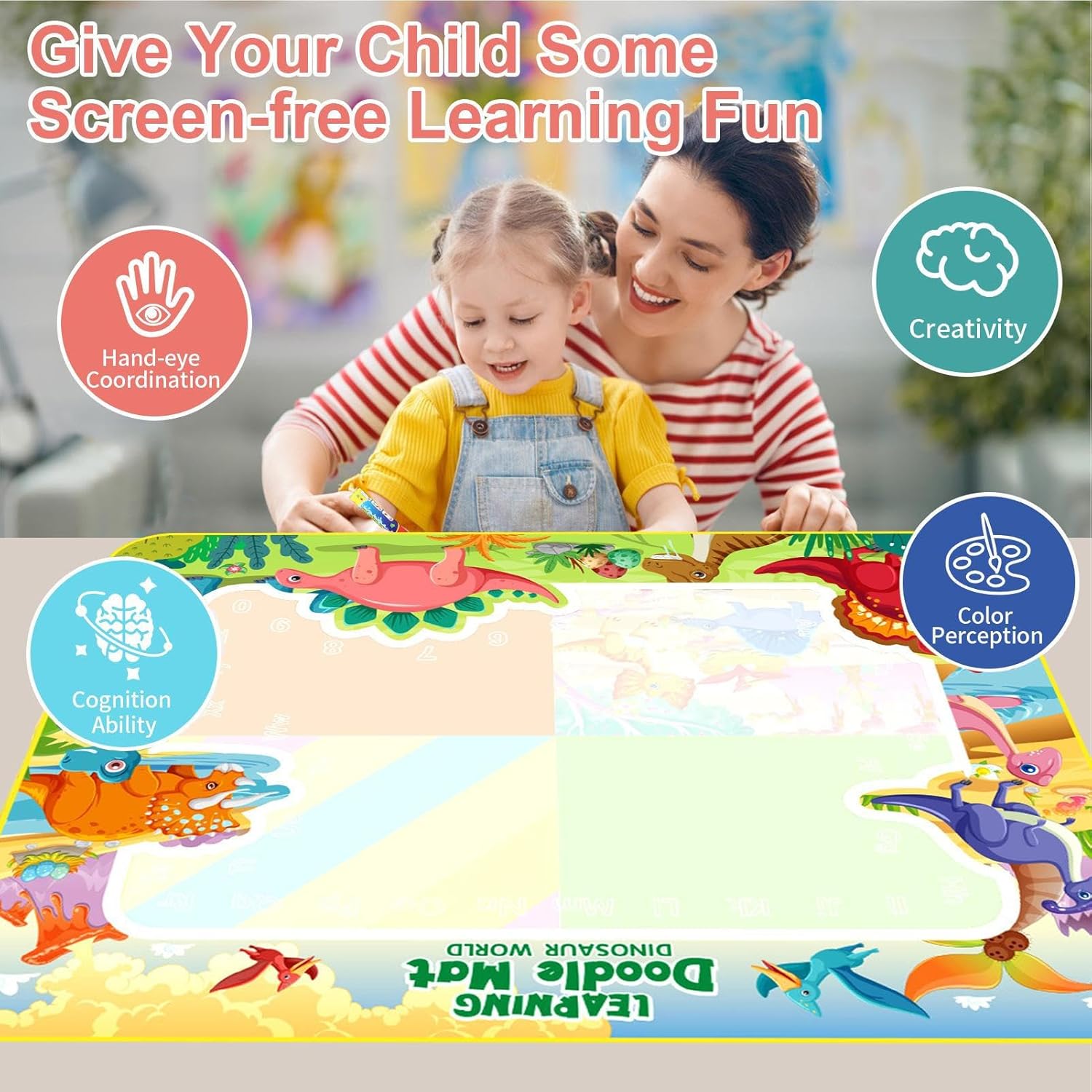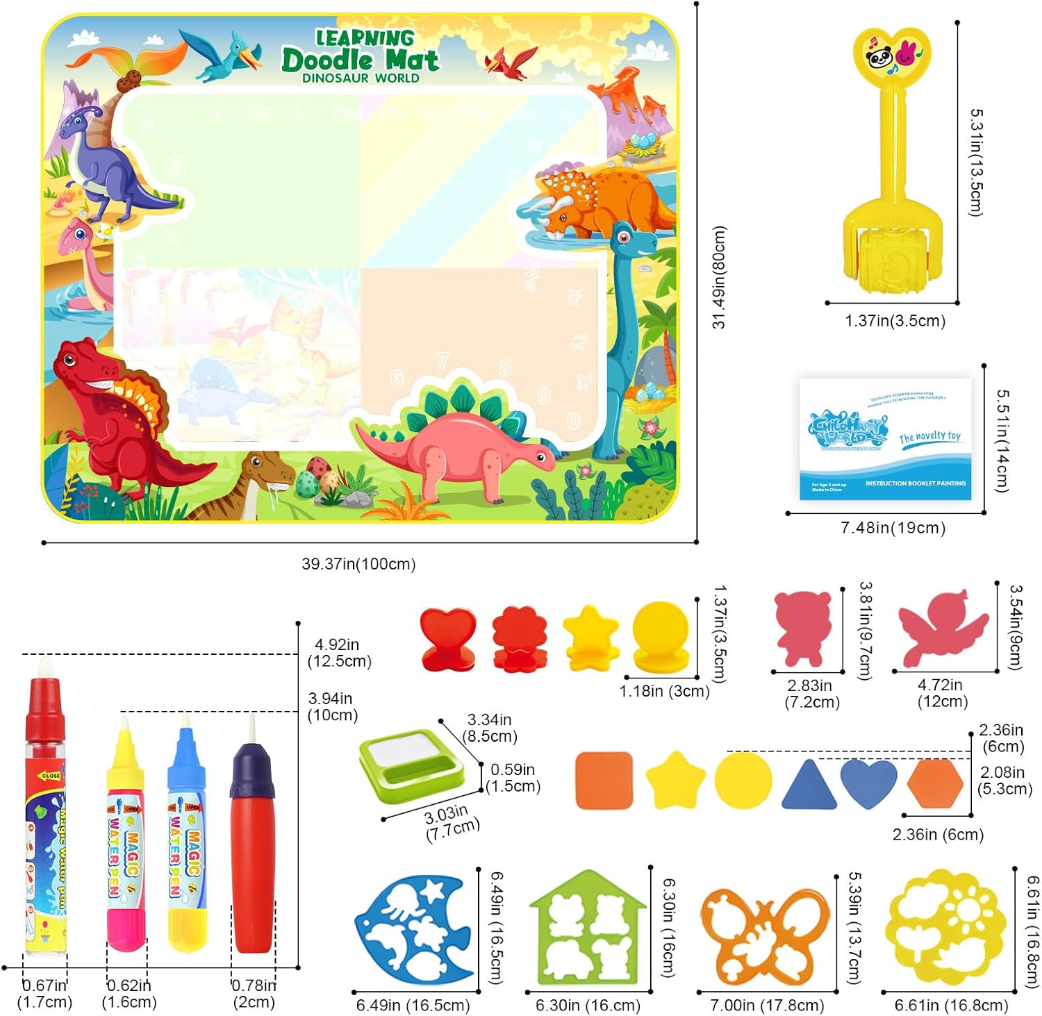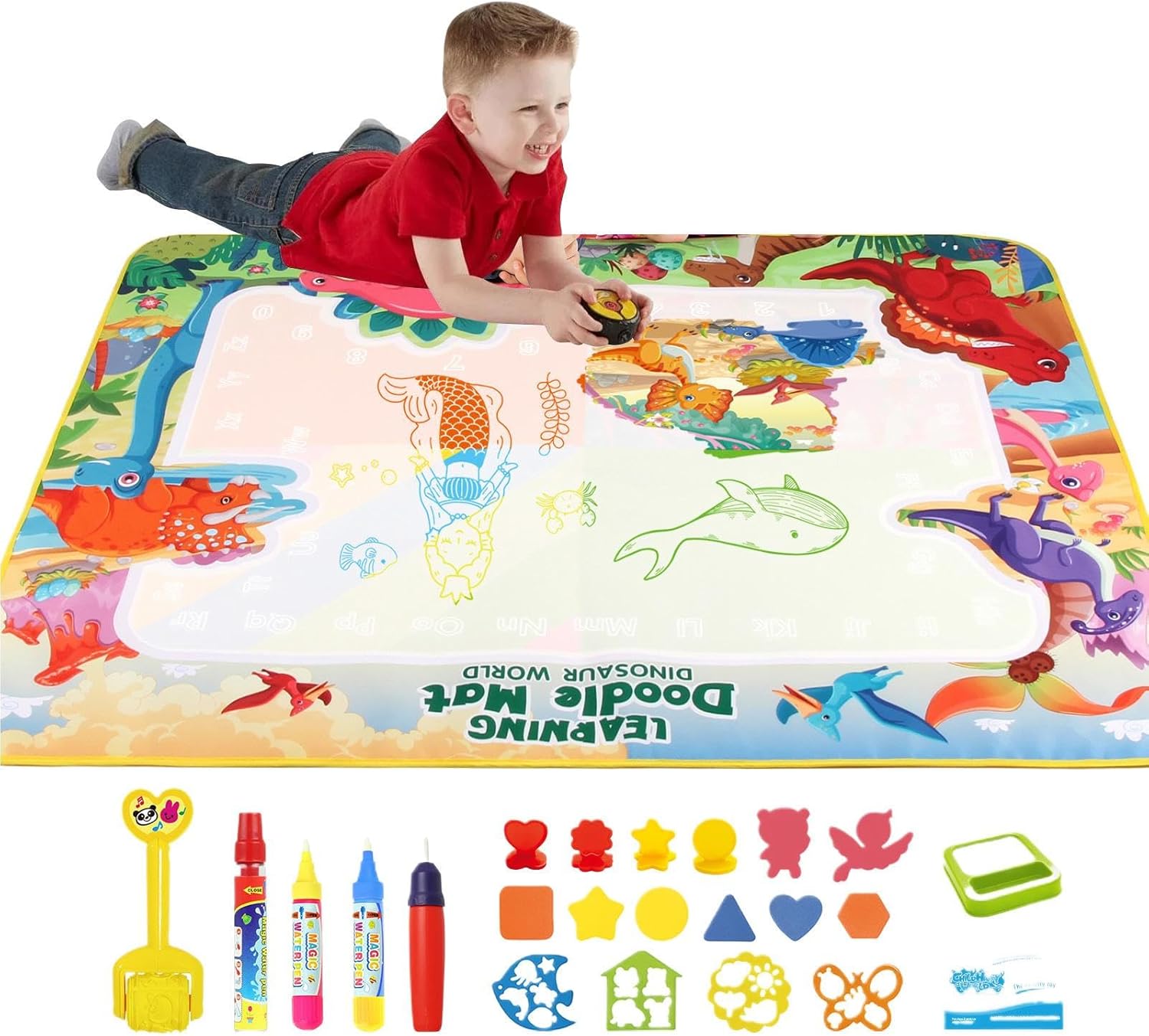 Creative Play: This water coloring mat allows children to explore their artistic talents without the of paints or markers, using only clean water to draw, write, and create colorful safely Reusable And Eco-Friendly: Just fill the included pens with water and let kids draw again and again—the mat magically fades as it dries, making it a sustainable and waste-free way to enjoy unlimited art Educational Learning Tool: Designed to promote fine motor skills, creativity, hand-eye coordination, and early literacy through drawing and doodling, this mat doubles as both a fun toy and a smart learning aid Large Interactive : Provides a spacious canvas for multiple kids to draw and share at once, making it perfect for group activities, playdates, or bonding time between parents and children Portable And Travel-Friendly: Lightweight, foldable design makes it ideal for indoor or outdoor use, keeping kids entertained and learning during travel, in the car, at daycare, or while visiting friends and family
