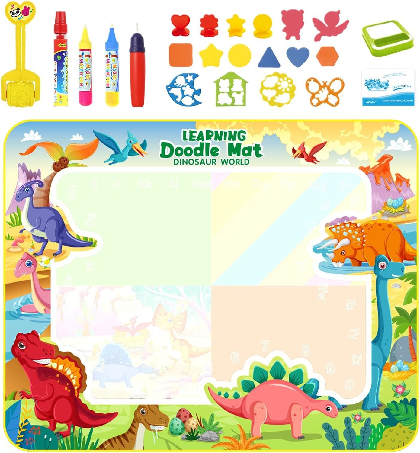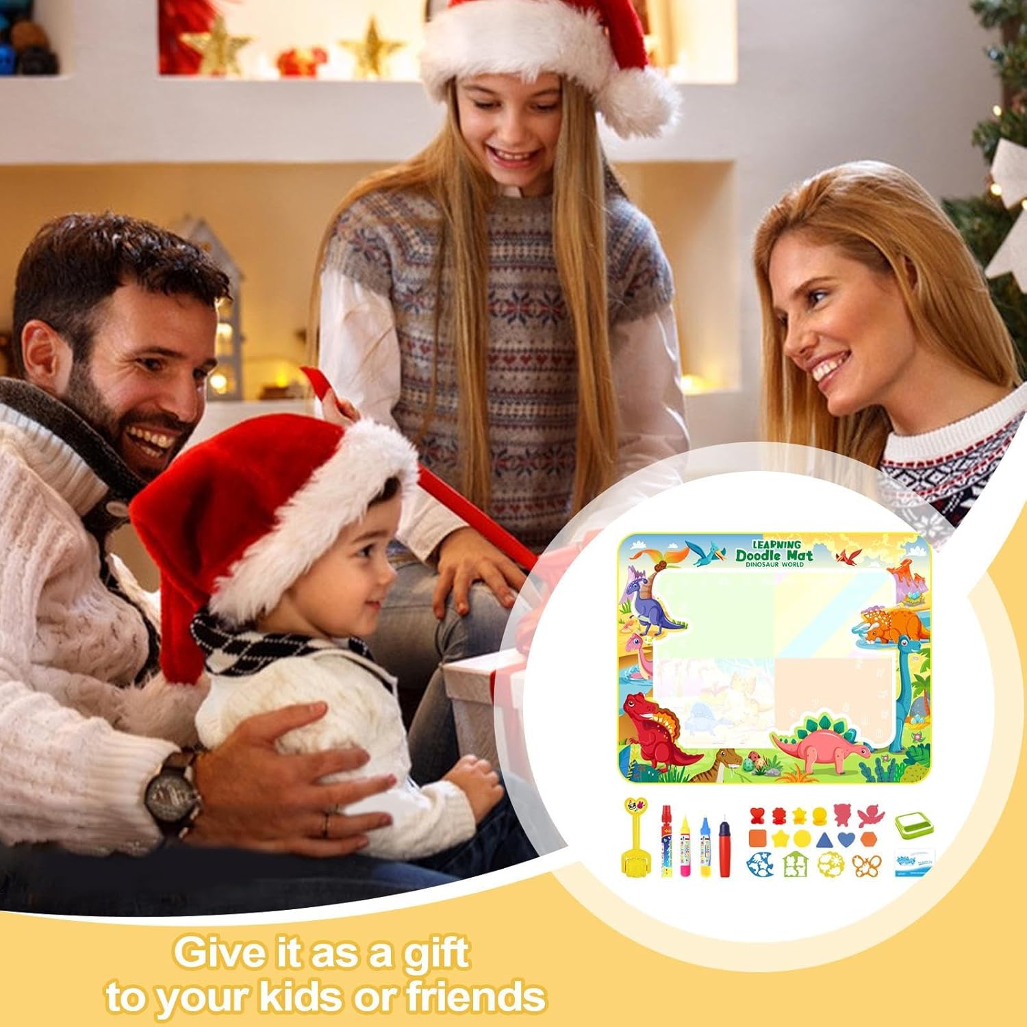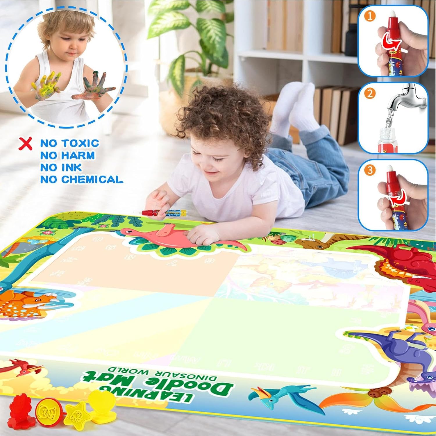 Creative Play: This water coloring mat allows children to explore their artistic talents without the of paints or markers, using only clean water to draw, write, and create colorful safely Reusable And Eco-Friendly: Just fill the included pens with water and let kids draw again and again—the mat magically fades as it dries, making it a sustainable and waste-free way to enjoy unlimited art Educational Learning Tool: Designed to promote fine motor skills, creativity, hand-eye coordination, and early literacy through drawing and doodling, this mat doubles as both a fun toy and a smart learning aid Large Interactive : Provides a spacious canvas for multiple kids to draw and share at once, making it perfect for group activities, playdates, or bonding time between parents and children Portable And Travel-Friendly: Lightweight, foldable design makes it ideal for indoor or outdoor use, keeping kids entertained and learning during travel, in the car, at daycare, or while visiting friends and family