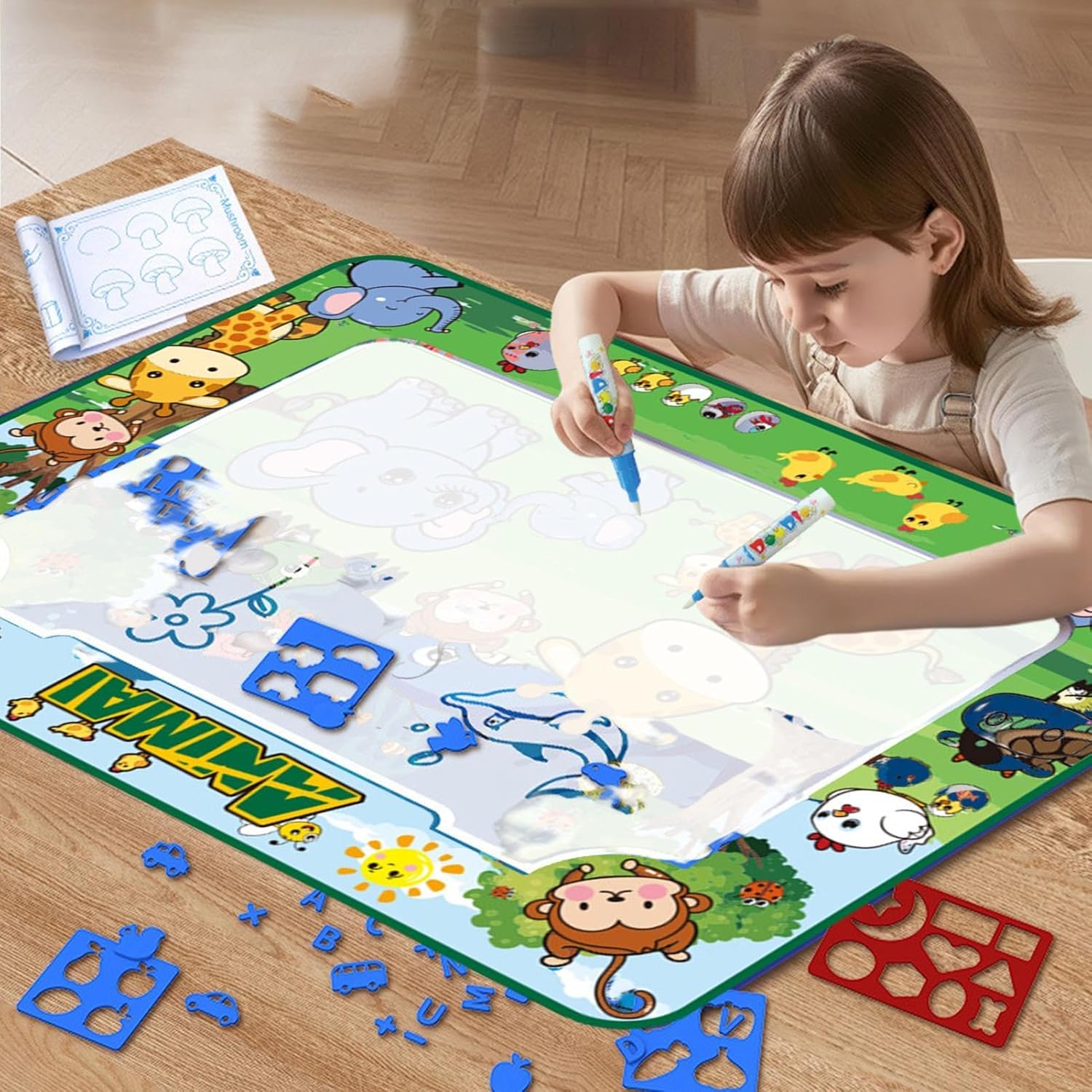 Sparks Inspiration: il soffitto educativo Ignites Fantasy la sua affascinante esperienza di dipinti ad acqua e ispira i bambini a esplorare la loro creatività attraverso colori vivaci Figure Kids 'Fantasia: promuovendo le ruote libere e la pittura, questo tappetino per scarabocchi d'acqua favorisce l'immaginazione e la creatività dei bambini e migliora la coordinazione degli occhi della mano e le capacità motorie Ben fatto: questo tappetino per scarabocchi d'acqua è realizzato in tessuto di prima qualità e materiali ABS e assicura che la penna non venga danneggiata e offre ai genitori la rassicurazione, mentre i bambini non godono del tempo di gioco preoccupato Ampia gamma di applicazioni: ispira più esplorazioni artistiche al suo set di accessori diversificati, stimolando l'immaginazione del bambino e promuovendo le loro abilità artistiche Promuovere la connessione tra fratelli: Promuove la collaborazione e il divertimento condiviso tra i fratelli e promuove un forte legame attraverso il gioco interattivo e l"impegno sociale