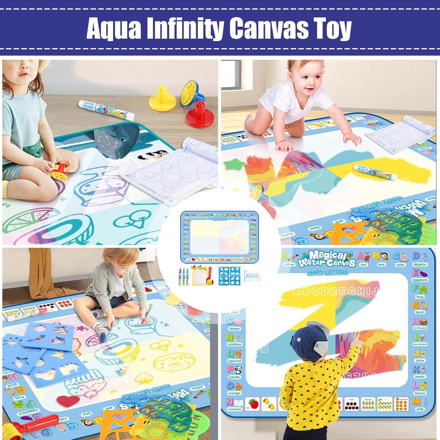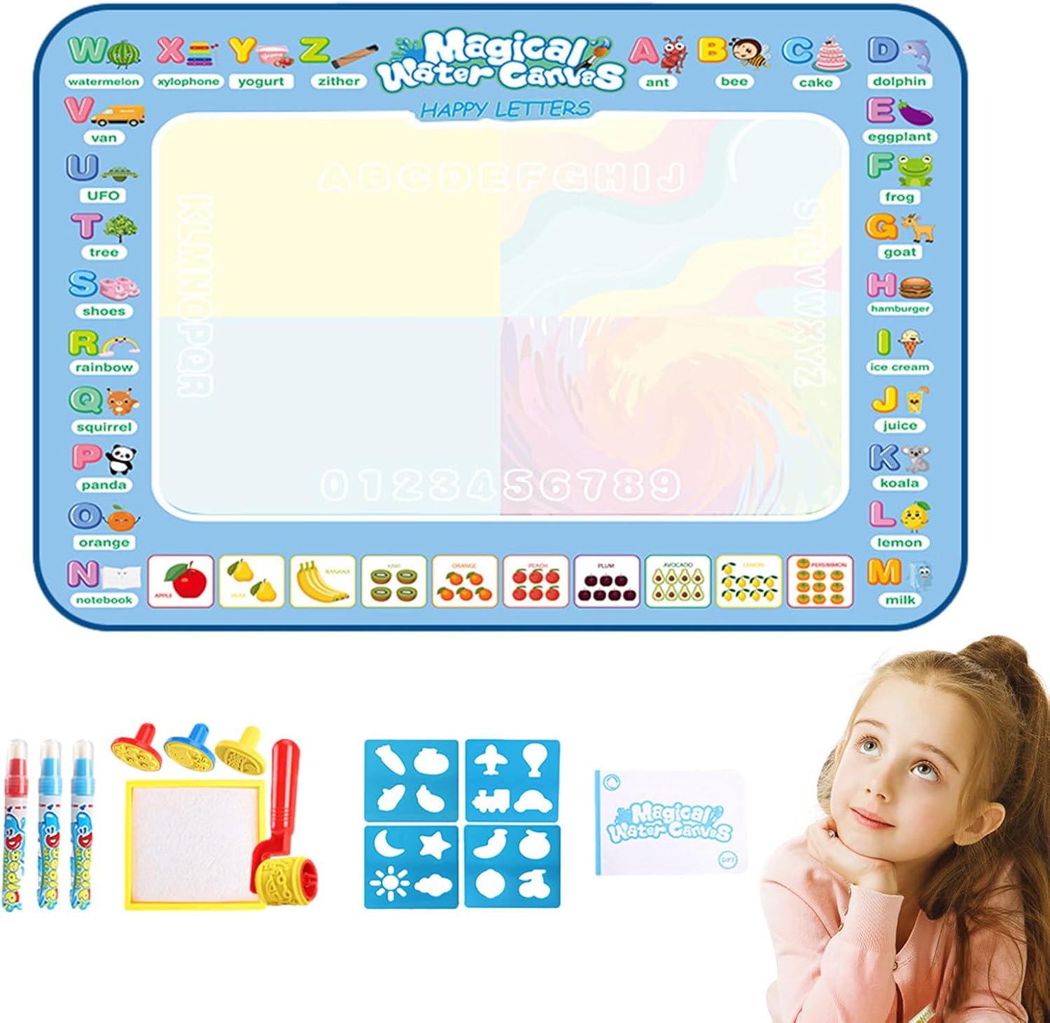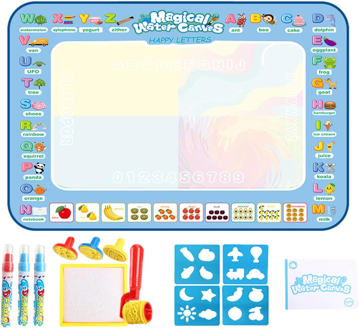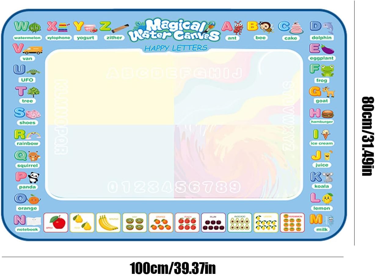 Apprendimento innovativo: con questo acquerello i bambini possono imparare e divertirsi allo stesso tempo. I diversi modelli stimolano la creatività e l'immaginazione migliorando la percezione dei colori e promuovendo la coordinazione occhio-mano. Scritta con acqua: dite addio ai rifiuti di carta e ciao a questo tappetino per scarabocchi riutilizzabile. I tuoi piccoli possono disegnare, scrivere e altro ancora, solo con acqua semplice! Facile da applicare: usa la straordinaria penna riempita d'acqua per liberare la tua creatività sul tappetino per scarabocchiare, dove il tuo capolavoro colorato prenderà vita senza disordine, inchiostro o macchie. Godetevi un utilizzo semplice e sicuro per i bambini di tutte le età e ispirate il loro interno. Regalo caldo: questo tappetino per scarabocchi ad acqua adotta un bastoncino che contiene diversi tipi di modelli di cartoni animati e passaggi di pittura, rendendo la pittura più interessante ed educativa per i bambini. Sicuro e pulito: lascia al tuo bambino un posto sicuro e pulito per giocare con il tappetino per scarabocchiare. Non dovrai più preoccuparti di macchie su vestiti o pareti e pavimenti sporchi con vernici.