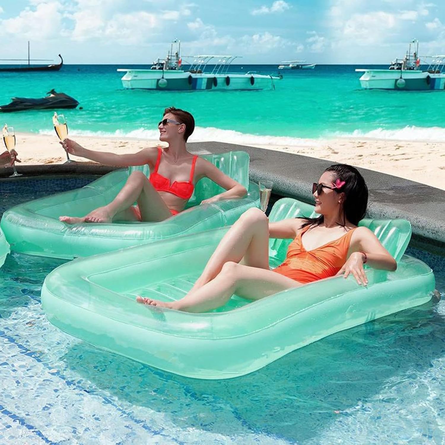 Facile da usare: combina la funzionalità di gonfiaggio rapido e rimozione delle funzioni con il doppio rilassamento dell'acqua e garantisce Esperienza di galleggiamento: il materiale ispessito garantisce la durata e garantisce stabilità Nella maggior parte dei casi: per i viaggi, il campeggio e l'uso versatile in diversi ambienti, S offre funzioni ideali per fluttuare pugno e rilassamento per garantire il comfort durante le avventure all'aria aperta Design ergonomico Comfort: questo lounger per piscina progettato con una curva ergonomica per ridurre l'affaticamento a lungo termine, offre un supporto poggiatesta regolabile che mira al collo e alla parte bassa della schiena, creando un'esperienza di rilassamento coinvolgente su misura per una leggerezza ideale Comodo lettino pieghevole: progettato per una comodità ideale, il design pieghevole compatto e la fornitura di sacchetti di stoccaggio