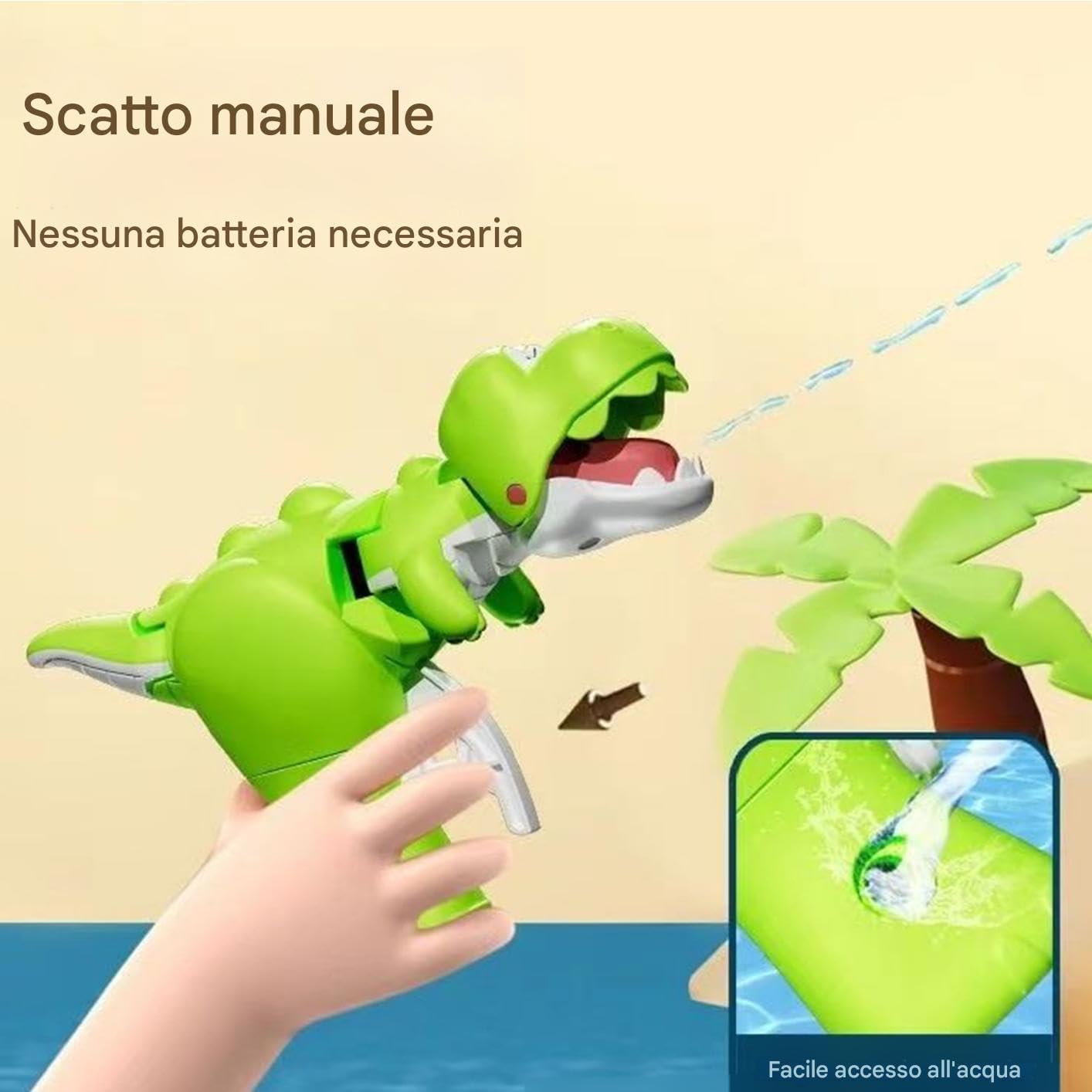 Fun Dinosaur Design: This water squirter features a playful dinosaur design that captures the imagination of making outdoor water play exciting and engaging for kids over 3 years old Perfect for Outdoor Play: Ideal for swimming pools, backyard play, or beach outings, this dinosaur water fighting soaker encourages active play and helps develop motor skills while keeping kids cool and entertained Easy to Use: Designed for small hands, this squirt toy is lightweight and easy to operate, allowing to fill it with water and squirt with minimal effort, promoting play Durable and Safe Materials: Made from high-quality, materials, this water soaker is built to withstand rough play while ensuring safety for young children during outdoor activities Great for Group Play: Perfect for playdates or family gatherings, this dinosaur water squirter encourages social interaction and cooperative play among children, making it a fantastic addition to any outdoor event
