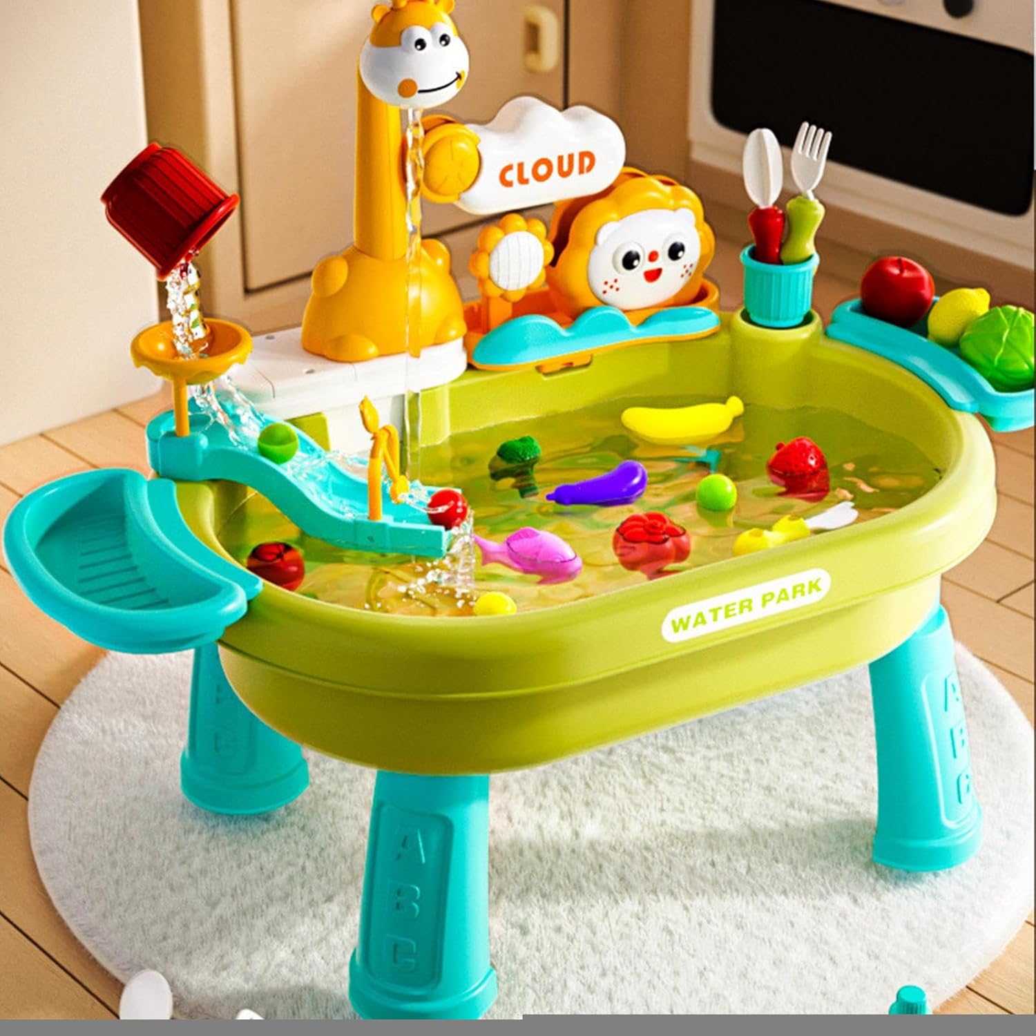 Outdoor Fun: This toddler-sized water activity table an interactive splash zone with fishing games, pretend kitchen elements, and sensory features perfect for outdoor play at beaches, parks, patios, and summer picnics. Sturdy Build: Made of sturdy ABS material, the table measures 60x33x44cm and weighs 1550g, offering a safe, stable, and weather-resistant structure that can be used both indoors and outdoors for extended play. Pretend Play: Built with kitchen role-play accessories and water tools, this table helps children in imaginative scenarios while building communication, cooperation, and cognitive development in preschool settings. Fishing Game: Includes a variety of accessories that allow to “catch” floating toys with fishing rods, enhancing fine motor skills, coordination, and fun for hours in group or solo play environments. Multi-Scenario Use: Perfect for daycares, camps, backyards, classrooms, or living rooms—this versatile water table exciting, educational entertainment for at home or on the go during vacations or park days.