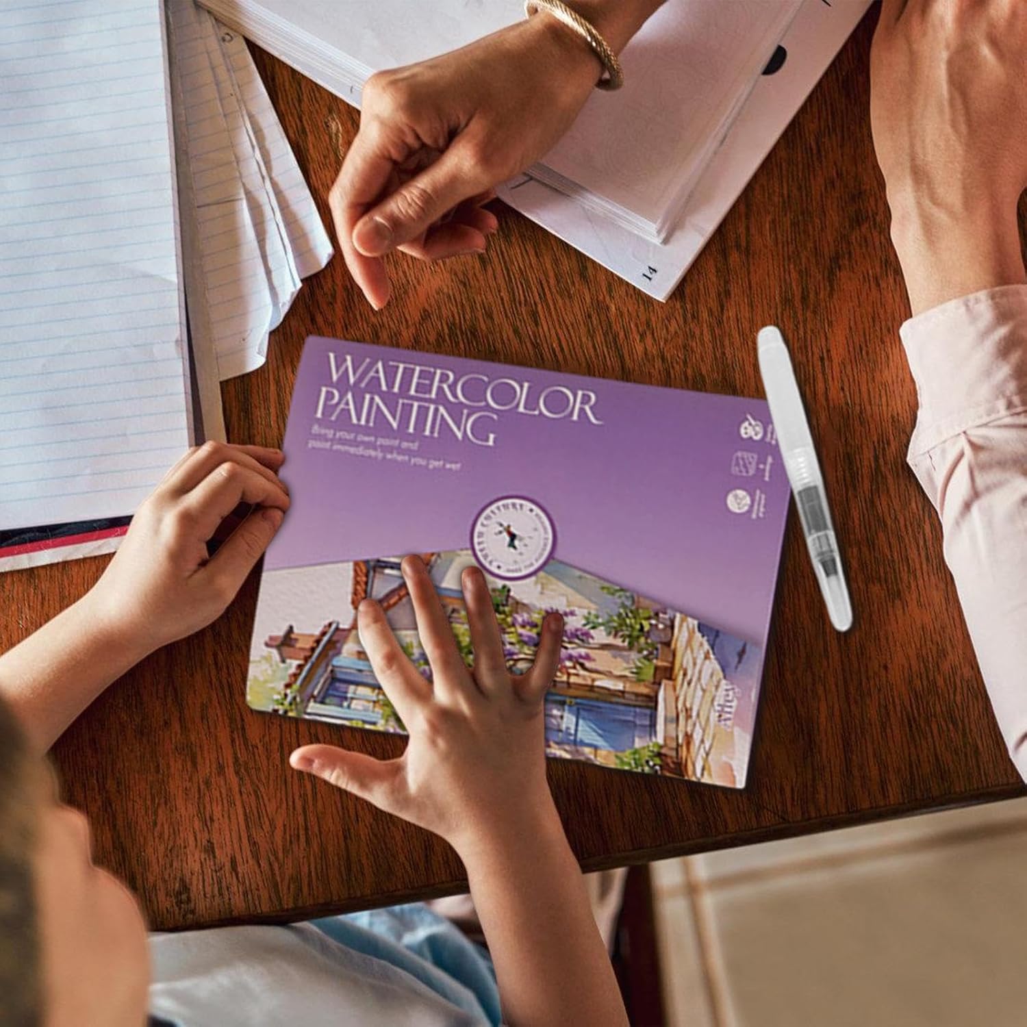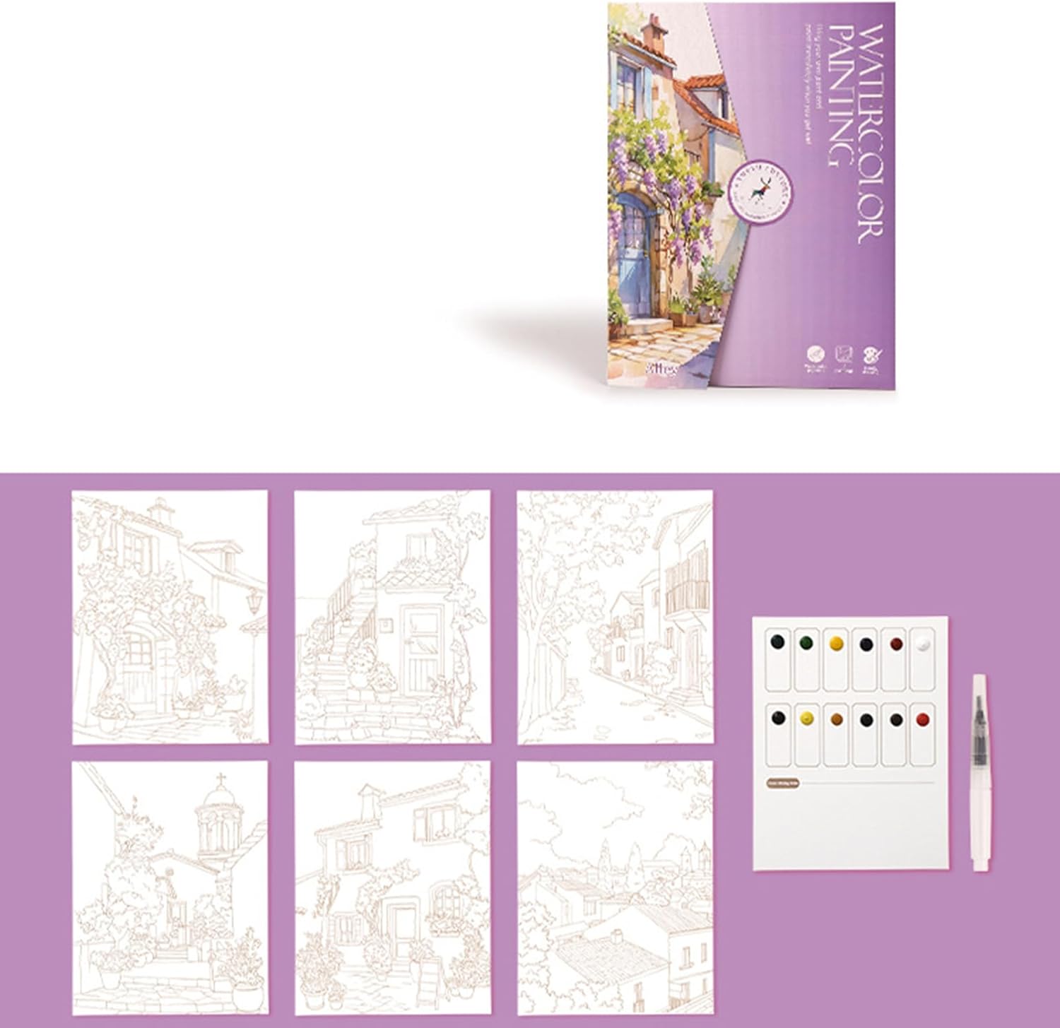 Creative Expression: designed to spark artisc exploration this watercolor workbook beginner friendly pages that encourage kids and adults to explore painting techniques in a fun and relaxed way great for home school or travel projects Complete Set: include una tavolozza di vernice integrata in 12 colori e una vernice per fornire una soluzione di pittura pronta per l'uso direttamente dalla scatola rendendo facile iniziare la pittura anytime anywhere with no additional tools required for setup Dimensioni compatte: sized at 7,48 x 5,67 pollici this portable book fits easily in backpacks tote bags or drawers making it a convenient art companion for kids and hobbyists who want to create on the go during school breaks vacations or quiet afternoons Skill Building: helps develop hand eye coordination color blending and brush control through guide painting activities it's a valable way to introduce children to watercolor basics while also allowing creativity to flourish in every session Versatile Use: perfect for solo-painting fun group projects classroom activities or family bonding moments the pages are thick enough for light washes of color and designed to ispira joyful art making at every skill level or age