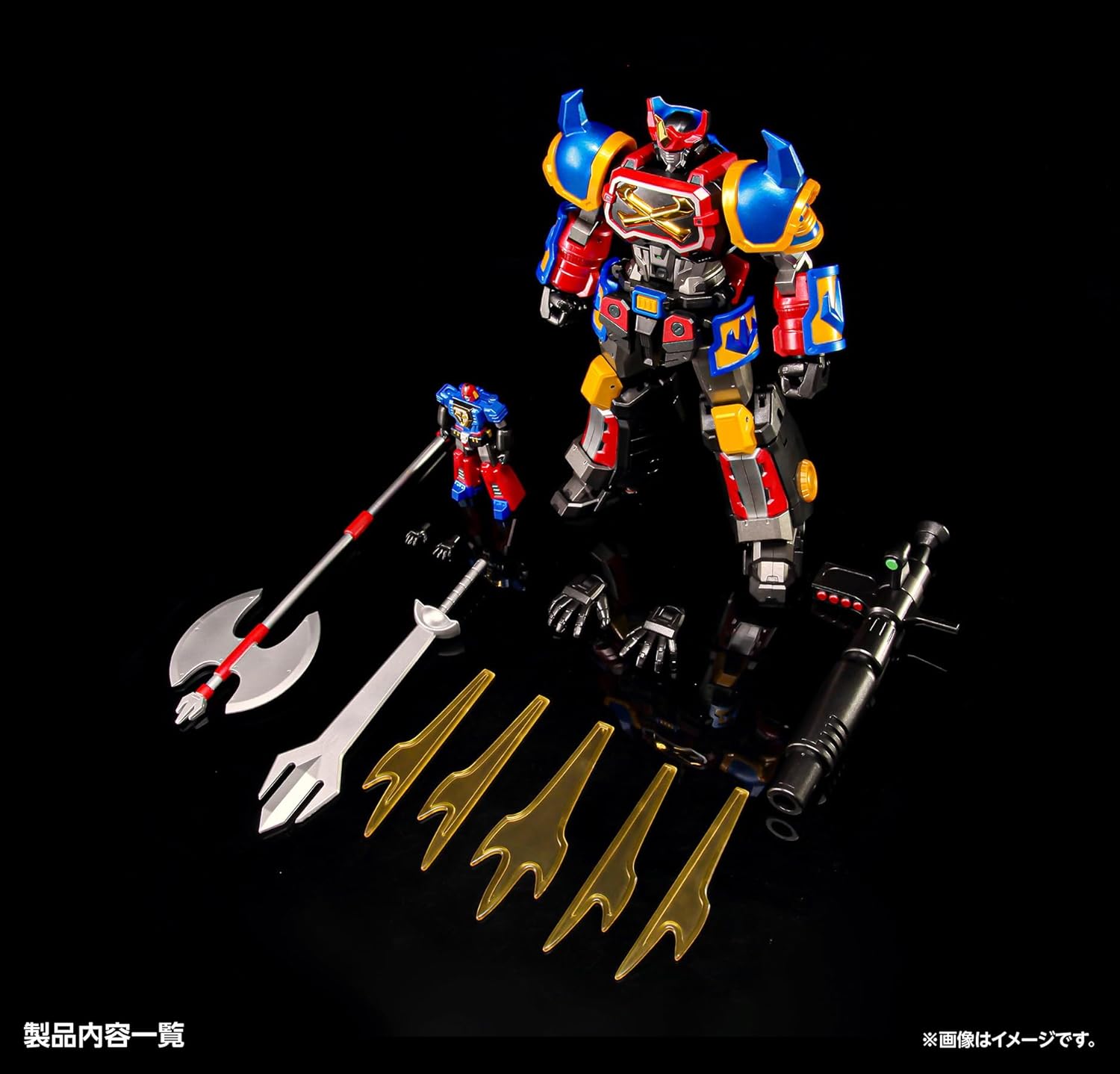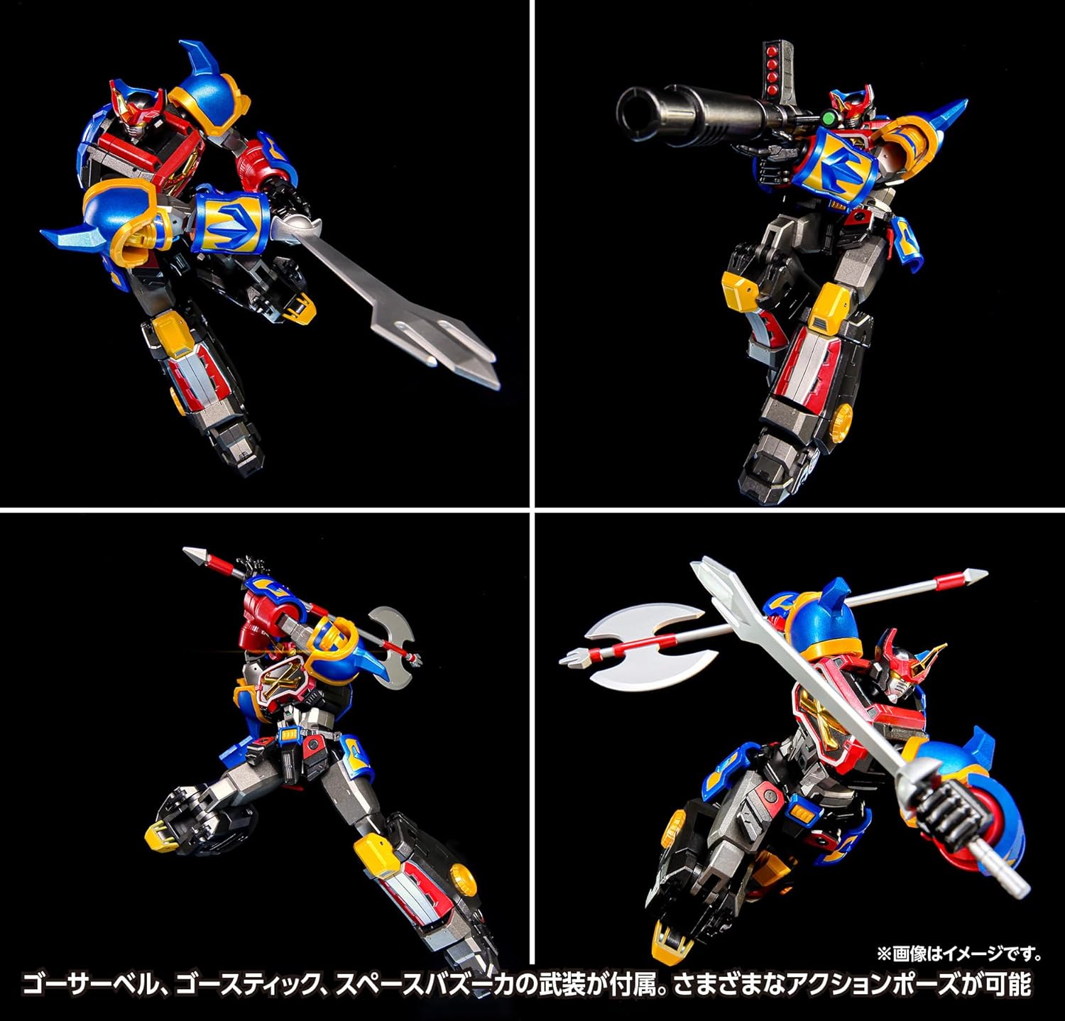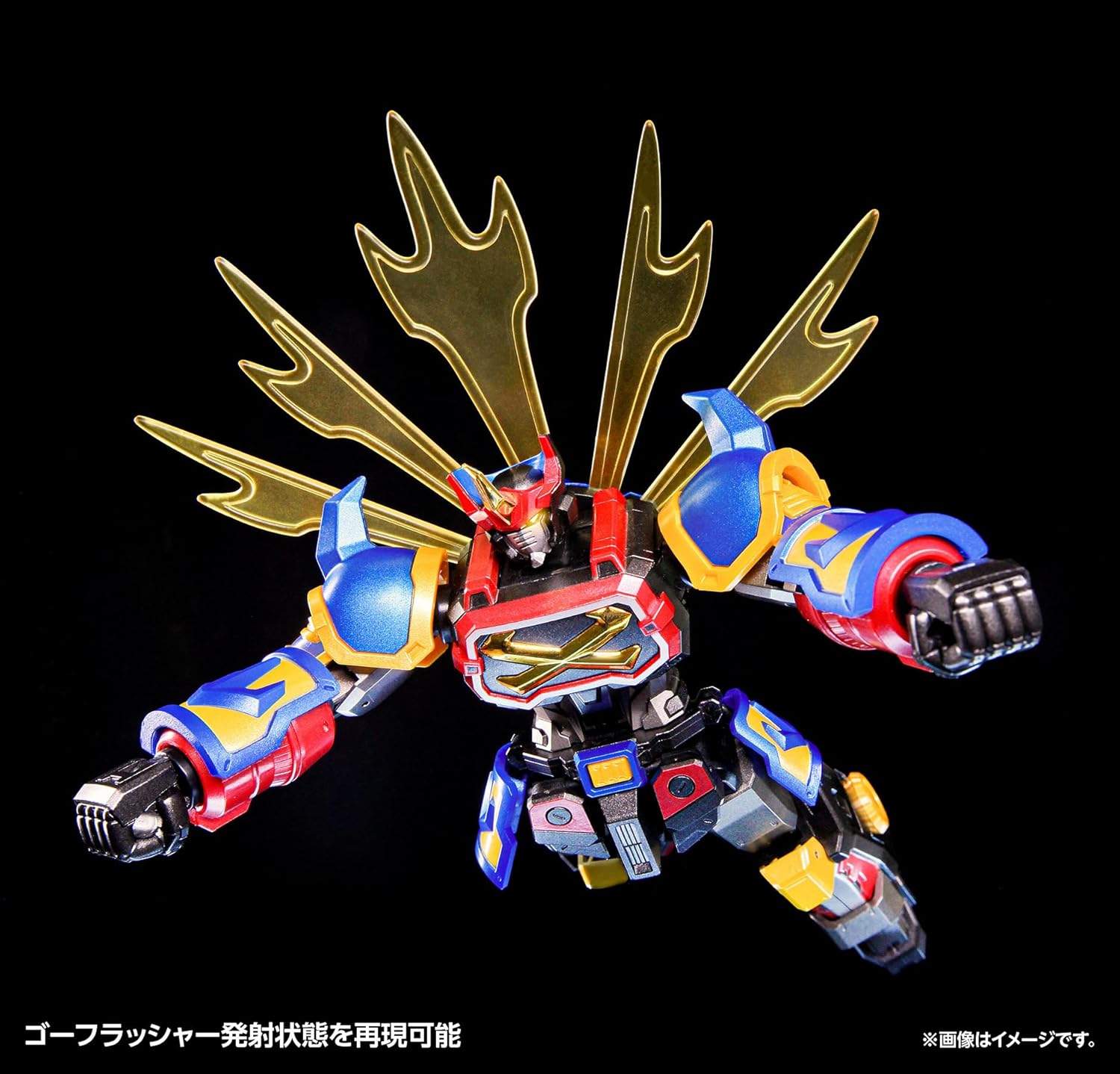Vi presentiamo un modello completo del Sengoku Mashin GoShogun. Aggiungi dettagli contemporanei a un look distintivo mentre il design audace di ogni articolazione consente una maggiore gamma di movimento. Come bonus di prima uscita, viene fornito con getti blu trasparenti che possono riprodurre lo stato "Go Flasher Special" Non scala (altezza totale: ca. 180 mm. Altezza superiore: (C) Partner GoShogun