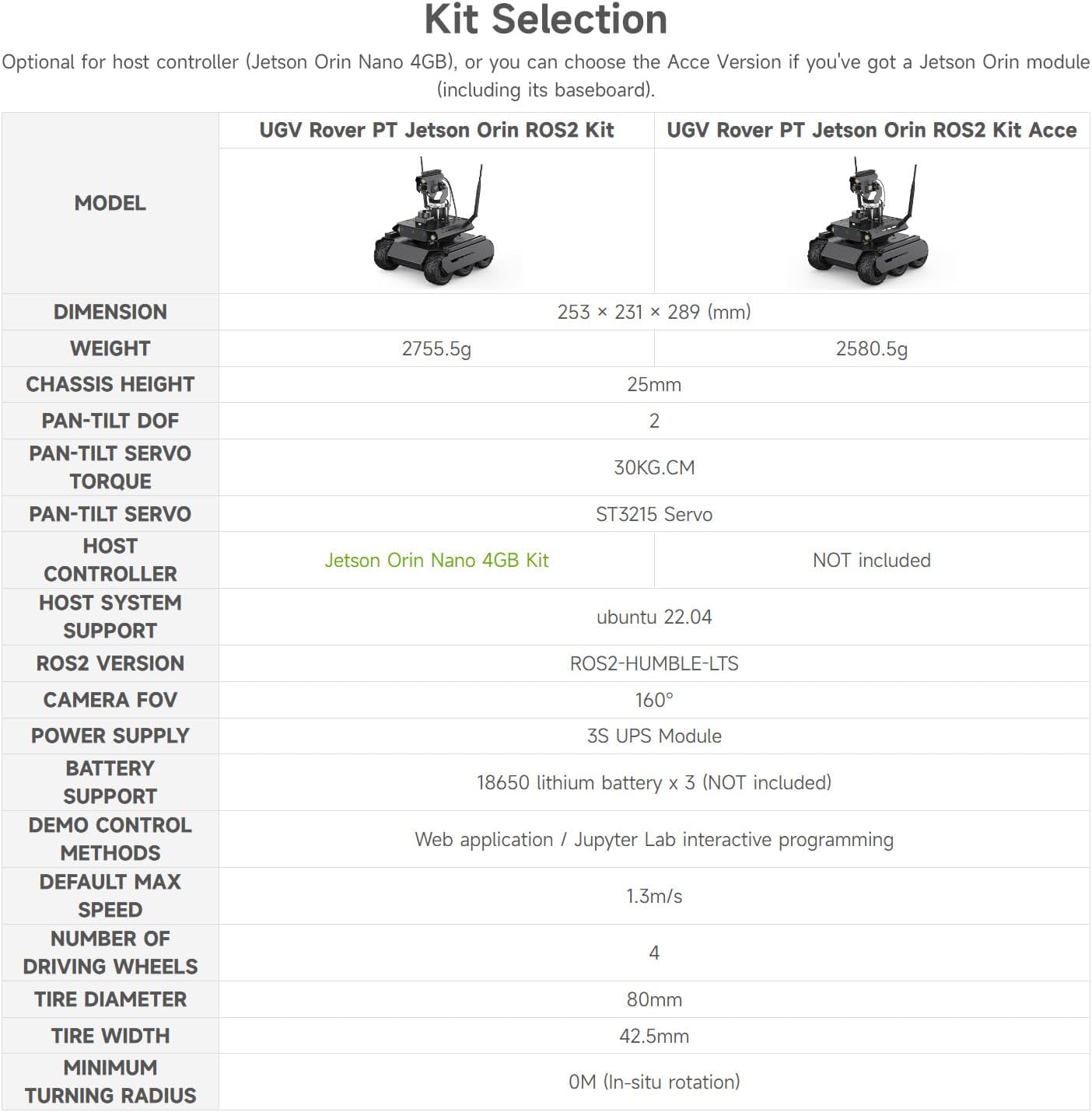 | Numero articolo | UGV Rover PT Jetson Orin ROS2 Kit (EN) |