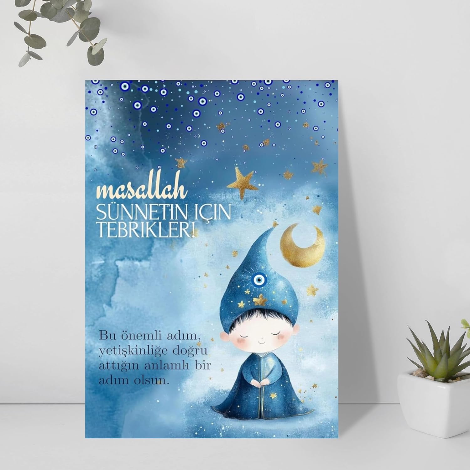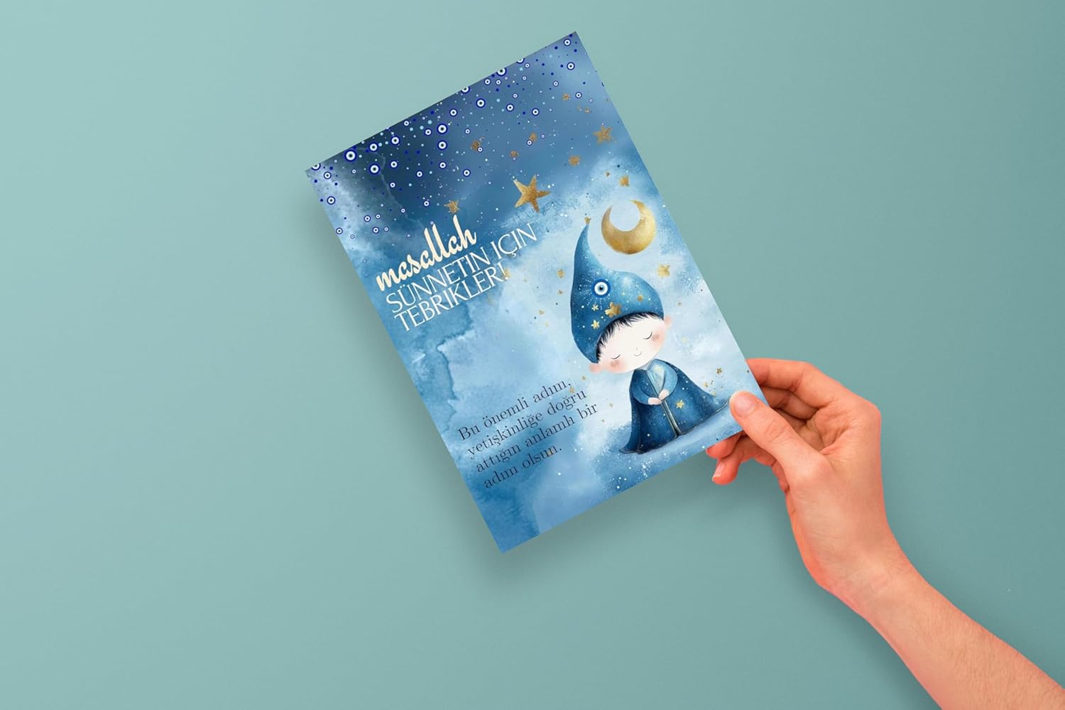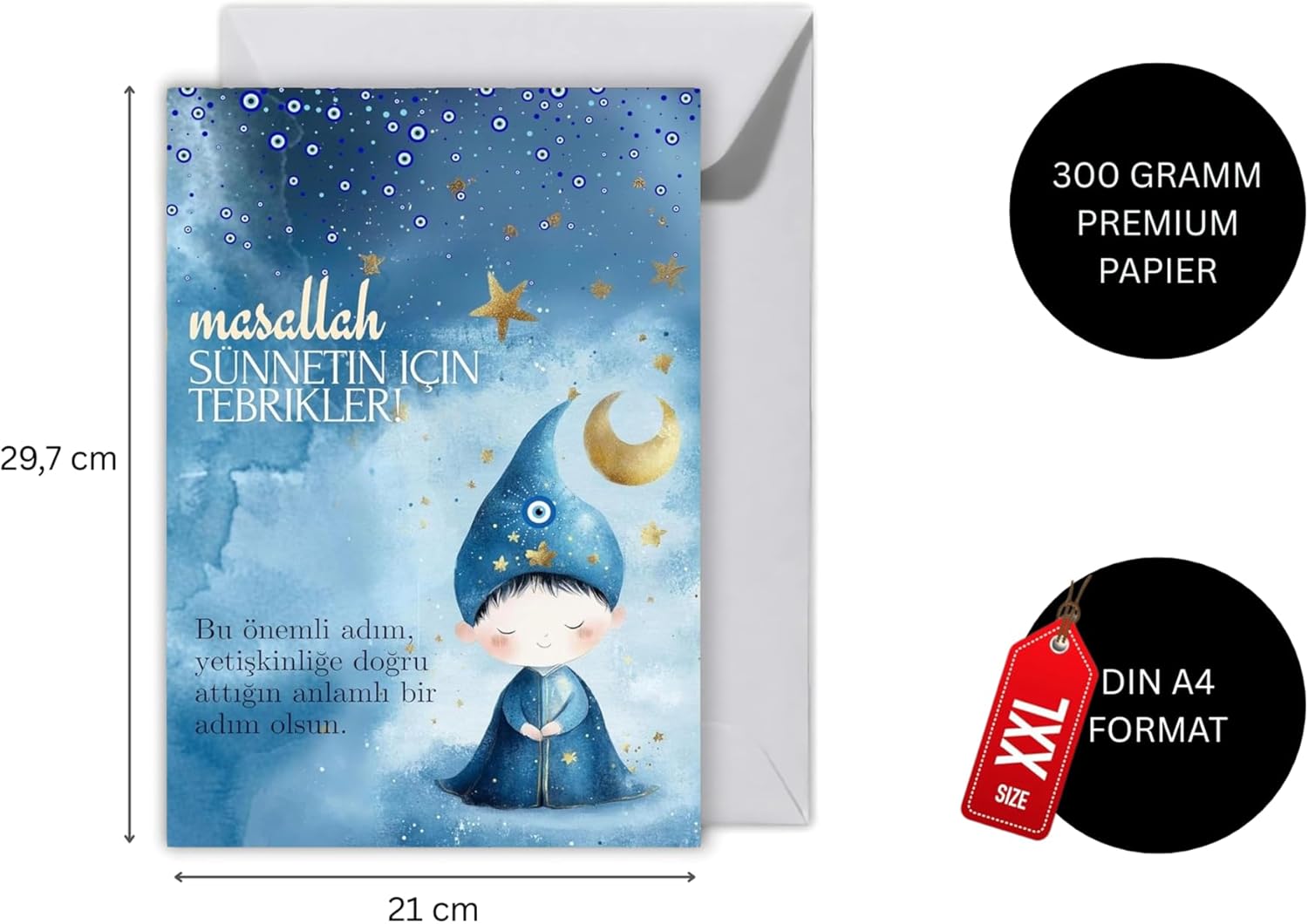 Biglietto per la circoncisione con busta e iscrizione turca: biglietto dal design accattivante con un design tradizionale e un messaggio personale, ideale per le congratulazioni per la circoncisione. Testo speciale di congratulazioni “Maşallah Sünnetin İçin Tebrikler”. trasmette con affetto gioia, rispetto e buon augurio ai più piccoli e alla loro famiglia. Finiture di alta qualità su carta premium da 300 g/m²: il formato A6 su carta robusta garantisce una sensazione piacevole e un aspetto elegante. Viene fornito con una busta kraft: la busta di colore naturale completa l'immagine complessiva e protegge la carta in modo elegante e sicuro. Made in Germany - Progettato e prodotto con cura in Germania - Per consegne brevi, alta qualità e produzione regionale sostenibile.