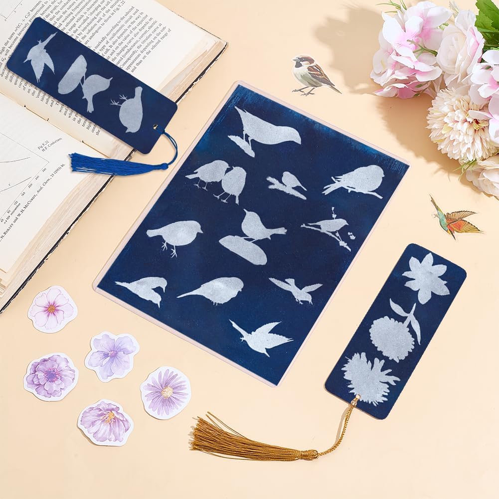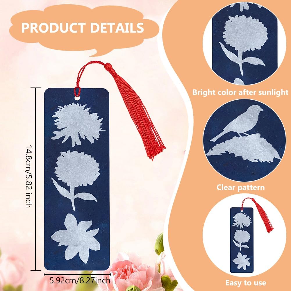 Set completo di cianotipi: riceverai 30 fogli di carta A5 con stampa solare, 10 segnalibri vuoti, 2 sensibilizzanti al cianotipo (50 ml di ciascuno), 1 cartella, 10 nappe colorate, adesivi con fiori e uccelli e altri strumenti necessari per creare Scienza basata sul sole: basta posizionare gli oggetti che si desidera realizzare sulla carta da stampa solare e fissarli con la custodia adesiva nella confezione. Attendere che il sole si asciughi prima di sciacquarlo con acqua e quando è asciutto, l'opera d'arte è completa Adatto per diversi materiali: il cianotipo può anche essere rifinito su qualsiasi fibra naturale, come cotone, seta, lino, tela, è possibile utilizzarlo per realizzare una varietà di oggetti, come magliette, sciarpe, borse, decorazioni per la casa, per darti un senso di realizzazione Ampiamente applicato: adatto per adulti, può essere utilizzato in classe, all'aperto, a casa e in altri luoghi, coltiva abilità pratiche e creatività, migliora l'interazione e lo scambio emotivo tra i membri della famiglia e produce una varietà di oggetti artigianali unici Regalo perfetto: se stai cercando un regalo unico e significativo, il nostro kit di carta per stampa solare fai da te è una scelta perfetta. Non solo fornisce un'attività divertente, ma consente anche al destinatario di creare la propria opera d'arte