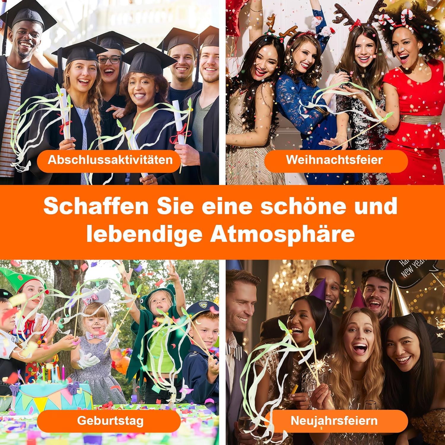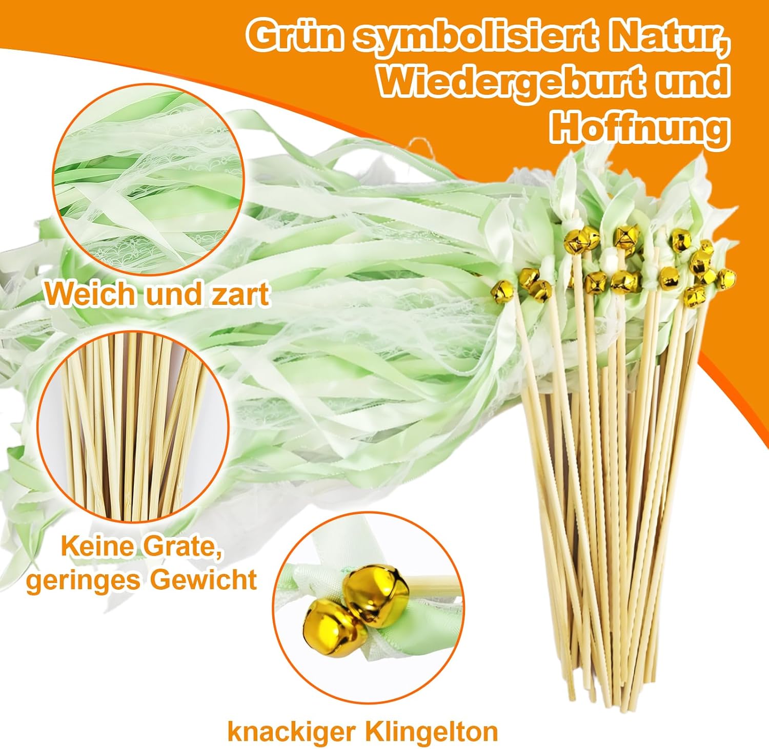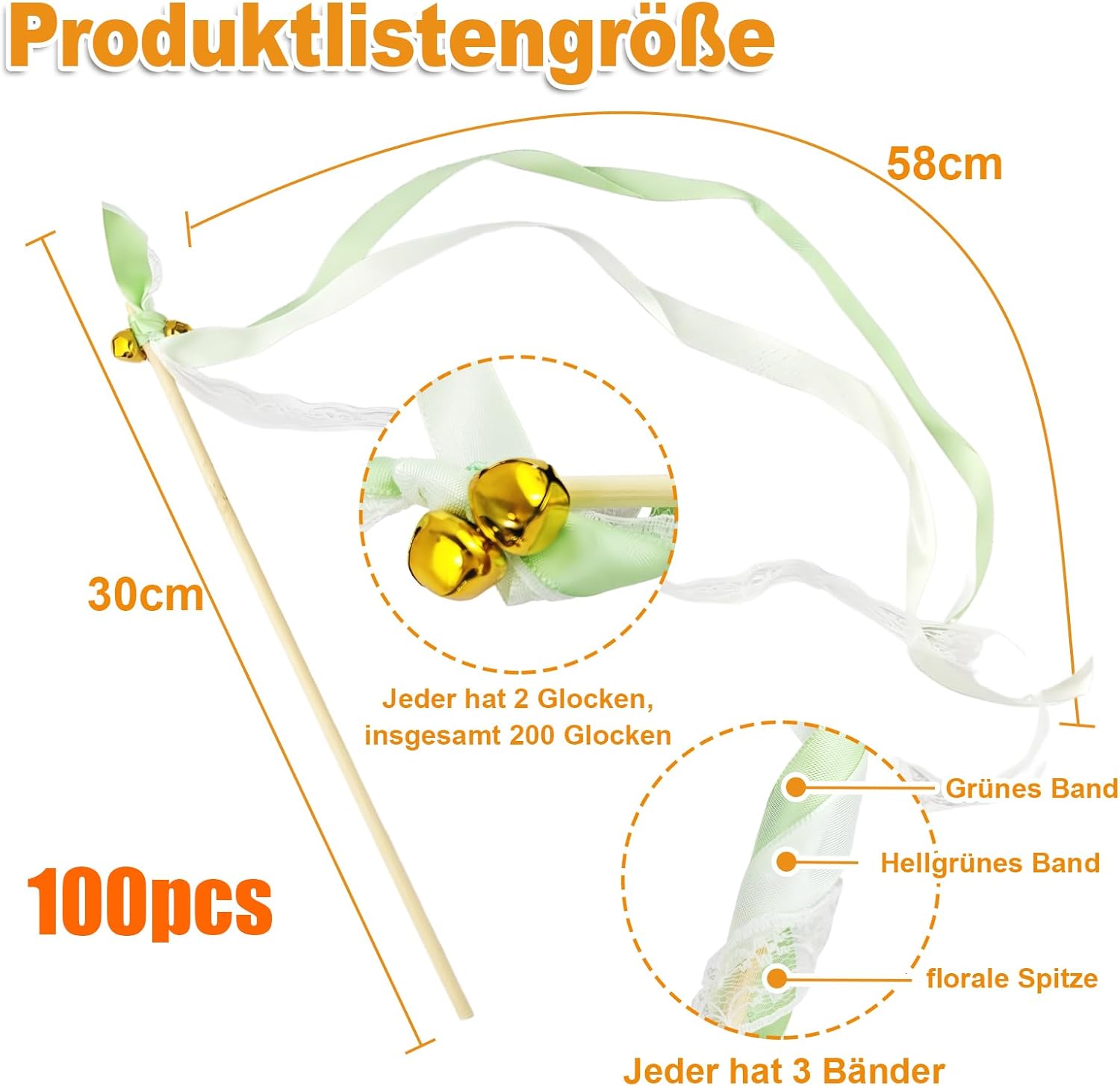Materiale di alta qualità: il nastro della nostra parete nuziale è realizzato in tessuto resistente, il materiale è morbido e delicato, e insieme alla campana è fissato saldamente al bastone di legno. Il bastone di legno è lucido e senza sbavature, leggero e quindi facile da tenere in mano. Se si gira il muro di nozze molte volte a piacere, il nastro forma onde e forme diverse durante la rotazione. Non si aggroviglia facilmente e non cade. Anche il suono chiaro delle campane, invia agli sposi una meravigliosa benedizione e dona alla festa un'atmosfera meravigliosa e vivace 100 bastoncini per matrimonio, 3 opzioni di colore: riceverete 100 bacchette magiche in seta per una quantità sufficiente, perfette per vari matrimoni di medie e grandi dimensioni, cene o feste. Sono riutilizzabili ed estremamente convenienti! Il bastone di legno è lungo 30 cm e il nastro è lungo 58 cm. I 3 colori si adattano a diversi temi di nozze. Champagne simboleggia eleganza e lusso. Il verde simboleggia la natura, la rinascita e la speranza. Il blu simboleggia la calma e l'eternità. Accoppiato con nastro di pizzo bianco, semplice e bello Crea un'atmosfera incantevole: con il suo nastro di pizzo e le campanelle melodiche, i nastri di nozze offrono una magica combinazione di fascino visivo e suono piacevole. Crea un'atmosfera incantevole per la tua festa o matrimonio e rendi il tuo matrimonio un'esperienza indimenticabile! Ogni ospite scuotendo le barre di legno può inviare la propria benedizione, evitando così imbarazzante silenzio, rafforzare la sensazione della cerimonia Portatile e leggero, facile da usare: la bacchetta magica in seta dal suo peso leggero, facile da usare e adatta per grandi e piccini. Che si tratti di spettacoli di danza, fotografia o giochi improvvisati, è rapidamente pronto all'uso e rende ogni movimento un punto culminante. La confezione compatta e la robusta struttura garantiscono una facile conservazione e trasporto. Un must have per organizzatori di eventi, fotografi o host che vogliono ottenere il massimo impatto con il minimo sforzo Adatto a tutti i tipi di celebrazioni: queste bacchette magiche in seta sono ideali per matrimoni, feste, interazioni intime, giochi per studenti, eventi di classe, spettacoli, ricevimenti, feste, compleanni, baby shower, Natale, Capodanno e altro ancora. Il suono dolce e le fasce svolazzanti ti regaleranno ricordi indimenticabili. Usa un nastro da sposa invece del tradizionale lancio di coriandoli - nessuna confusione e spreco