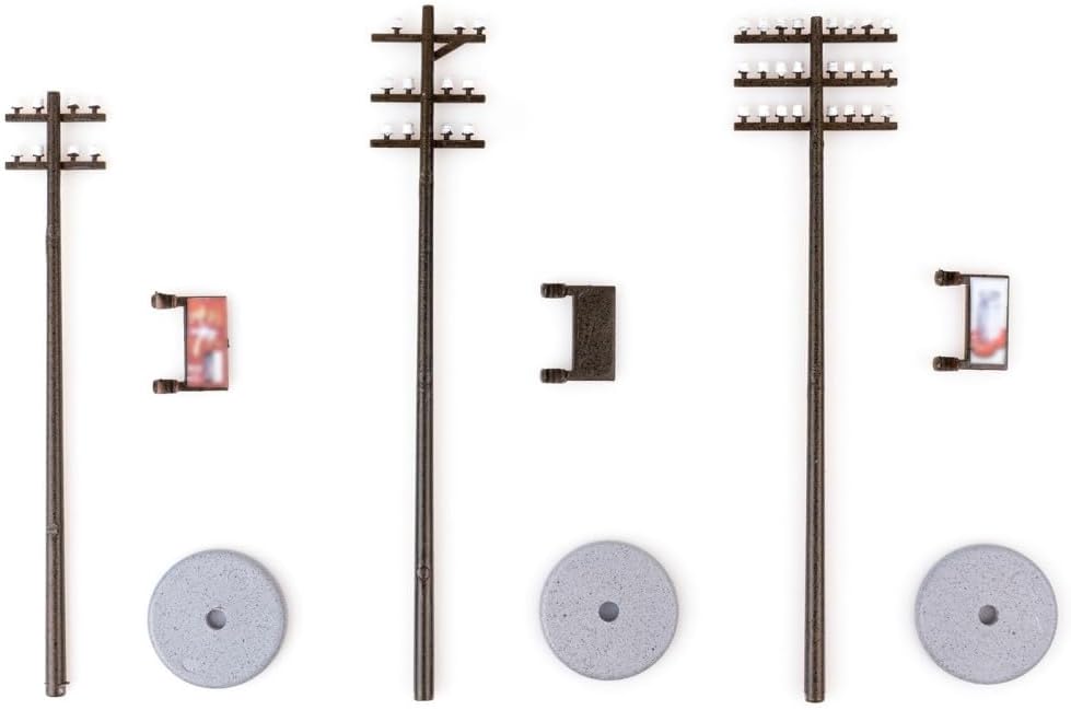 ① Un set di 3 pali telegrafici modello e tre modelli possono essere costruiti per le parti incluse. ② Ci sono 3 scale tra cui scegliere, rendendo i tuoi modelli vivaci con pali telegrafici adatti. ③High-kit, resistente agli urti e all'usura, montaggio semplice. Adatto sia per designer esperti che per principianti. Progettato per modellisti e collezionisti. ④ Può essere utilizzato in ambienti urbani o rurali, lungo strade o tavoli di sabbia. Sono ovunque, quindi il set può essere utilizzato quasi ovunque tu voglia. ⑤ Modelli in scala altamente dettagliati, superficie strutturata per assomigliare ai veri pali del telegrafo. Serie di edifici e accessori per l'uso in diorami o schemi ferroviari modellini.
