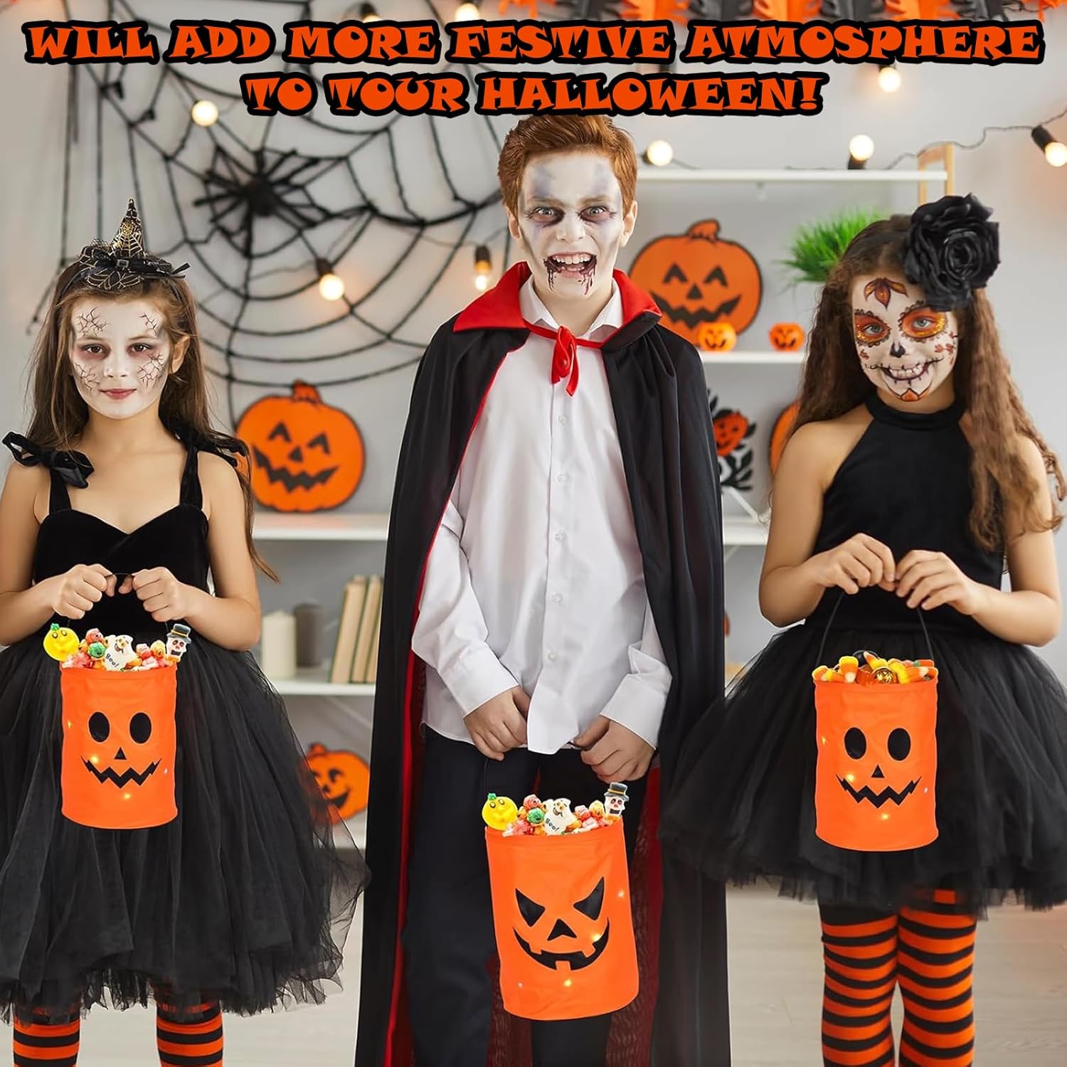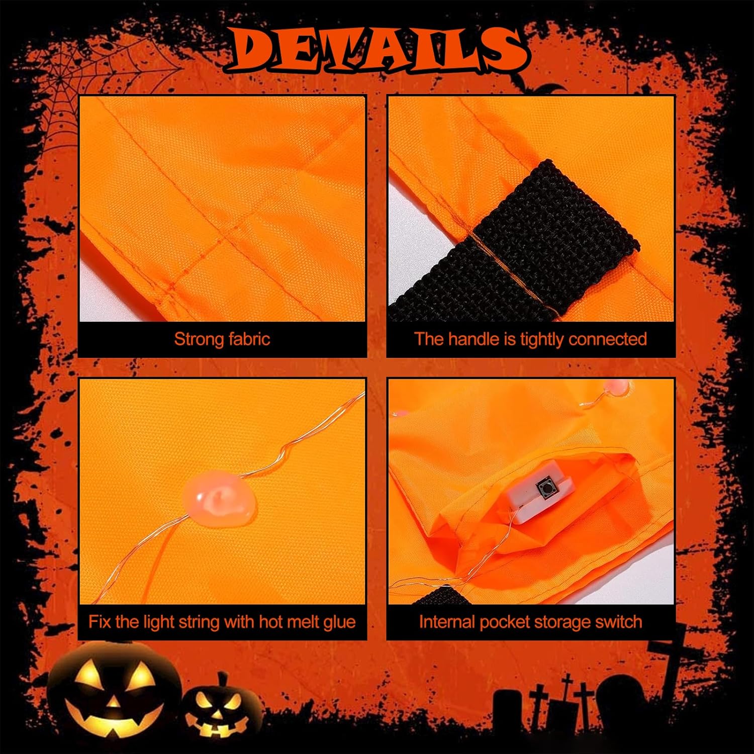 【Materiale leggero e robusto】 I nostri sacchetti di caramelle di Halloween realizzati in poliestere di alta qualità sono sorprendentemente robusti con un aspetto delicato. Estremamente leggero, morbido e comodo da indossare. Semplice illuminazione a LED: premi l'interruttore e la borsa si illumina immediatamente: risparmio energetico e un gioco da ragazzi! 【Spazio generoso】Con dimensioni di ca. Ogni borsa con una dimensione di 25 x 30 cm offre molto spazio per tutti i tipi di gadget. Ideale per caramelle, cioccolato, biscotti, cupcakes, piccoli giocattoli e altro ancora. Perfetto per dolcetto o scherzetto! 【Design adorabile di Halloween】 Le borse sono stampate con graziose facce di zucca e fantasmi: proprio quello che fa per far illuminare gli occhi dei bambini! Premendo il pulsante, la borsa brilla di luce festosa e crea una vera atmosfera di Halloween. 【Pratico e adatto ai bambini】Le borse illuminate sono leggere e dotate di manici in tessuto resistente, ideali per le mani dei bambini. Perfetto per feste, sfilate di Halloween o come decorazione spettrale e dolce per la casa. I motivi arancioni e divertenti li rendono un vero e proprio eye-catcher! 【Versatile】Non solo per Halloween: ideale per feste di compleanno, eventi scolastici, cosplay o feste del raccolto autunnale. Che si tratti di utensili per feste, regali o decorazioni, queste borse LED sono divertenti e pratiche!