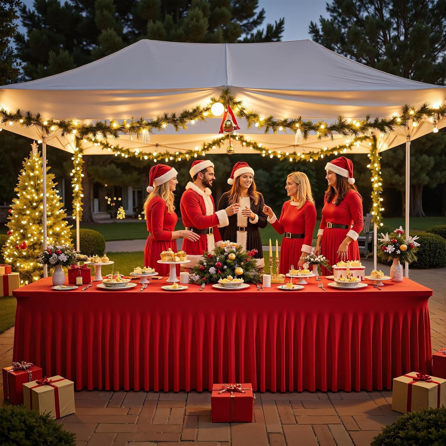 Tessuto morbido e resistente: questa gonna da tavolo in poliestere robusta e piacevole al tatto combina comfort e durata per un uso frequente. Riutilizzabile, valorizza con eleganza i tuoi eventi come feste, convegni o celebrazioni, mantenendo il suo aspetto premium ad ogni utilizzo. Versatilità eccezionale: Questa gonna da tavolo in tessuto è adatta a tavoli rettangolari e rotondi, ideale per eventi importanti come matrimoni, compleanni e riunioni aziendali. La sua vasta applicazione garantisce una decorazione armoniosa e allo stesso tempo valorizza l'atmosfera di ogni celebrazione con eleganza e stile raffinato. Aspetto decorativo integrato: questa gonna da tavolo per eventi fornisce una copertura completa grazie al suo design integrato, nascondendo il disordine per una presentazione raffinata adatta a matrimoni e feste festive, pur mantenendo un aspetto coeso ed elegante senza sforzo. Installazione semplice: questa gonna da scrivania è progettata con una struttura piatta che consente un'installazione facile e veloce, senza la necessità di strumenti o morsetti aggiuntivi, offrendo un elegante design a cascata increspato e un aspetto raffinato, ideale per migliorare qualsiasi spazio di lavoro con il minimo sforzo. Facile da pulire: questa gonna da tavola natalizia plissettata è progettata per essere riutilizzabile e di facile manutenzione, fornendo una soluzione elegante e funzionale per le prossime festività e occasioni speciali, resistendo all'usura del tempo grazie ai suoi materiali