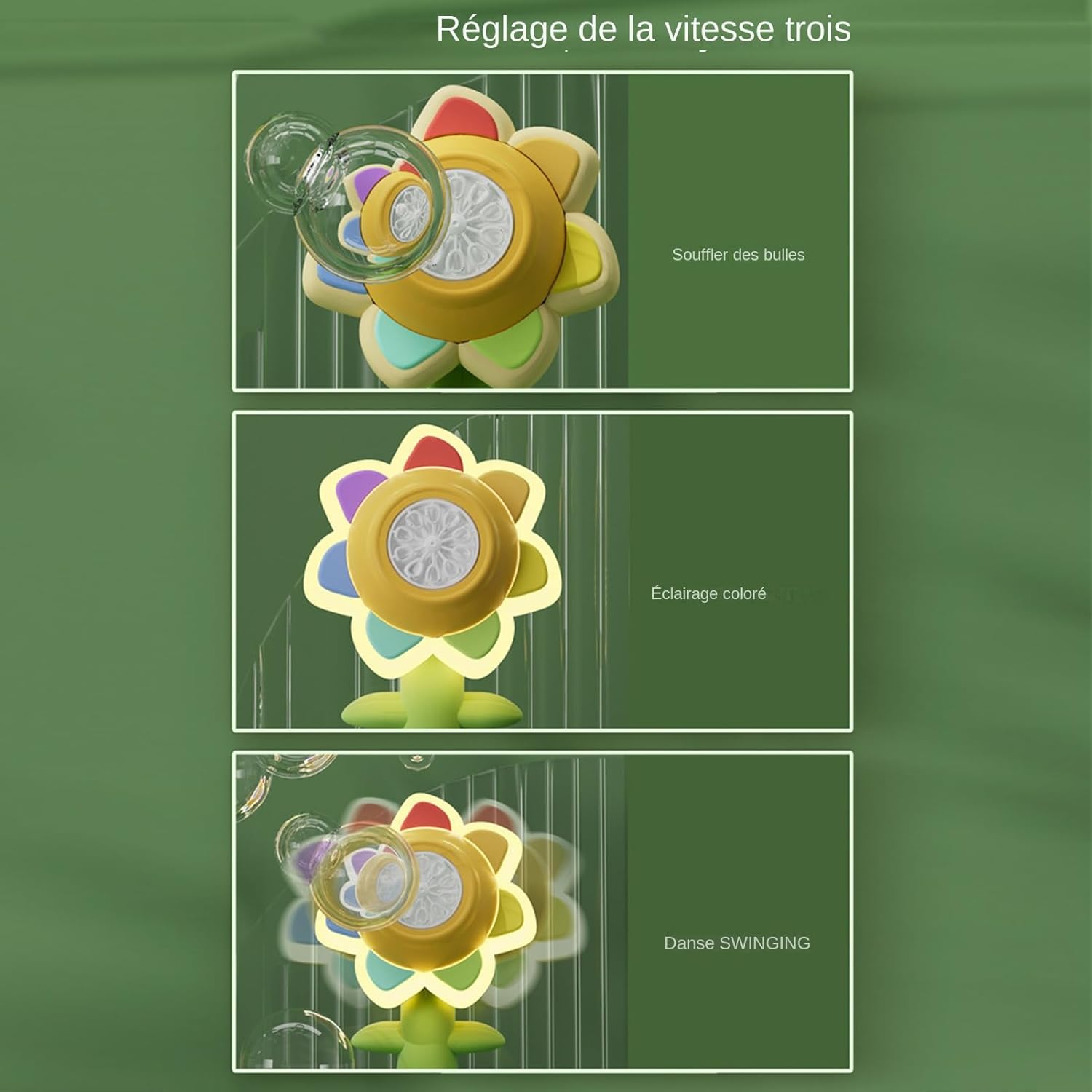 Design a prova di perdite: il flacone della soluzione indipendente sigillato ermeticamente elimina qualsiasi rischio di perdite, consentendo movimenti senza restrizioni mantenendo mani e vestiti asciutti durante l'uso. Componenti rinforzati: Architettura interna precisa con parti scorrevoli trattate, realizzata in resistente polimero ABS per mantenere una produzione regolare di bolle anche dopo un uso intensivo. A misura di bambino: Attivazione istantanea in un solo gesto con spegnimento automatico integrato. La rotazione ottimizzata a 360° garantisce una produzione regolare di bolle senza bloccarsi, adatta a manine piccole a partire dai 3 anni. Design animato: aspetto dalla forma vibrante con funzione di oscillazione dinamica e movimento ritmico dei petali. Crea un ambiente naturale per eventi e celebrazioni combinando estetica floreale e animazione accattivante. Adattabilità totale: macchina per bolle compatibile con tutte le configurazioni di gioco. Funziona altrettanto bene nei soggiorni e nei parchi, trasformando riunioni di famiglia e feste di compleanno in esperienze magiche.