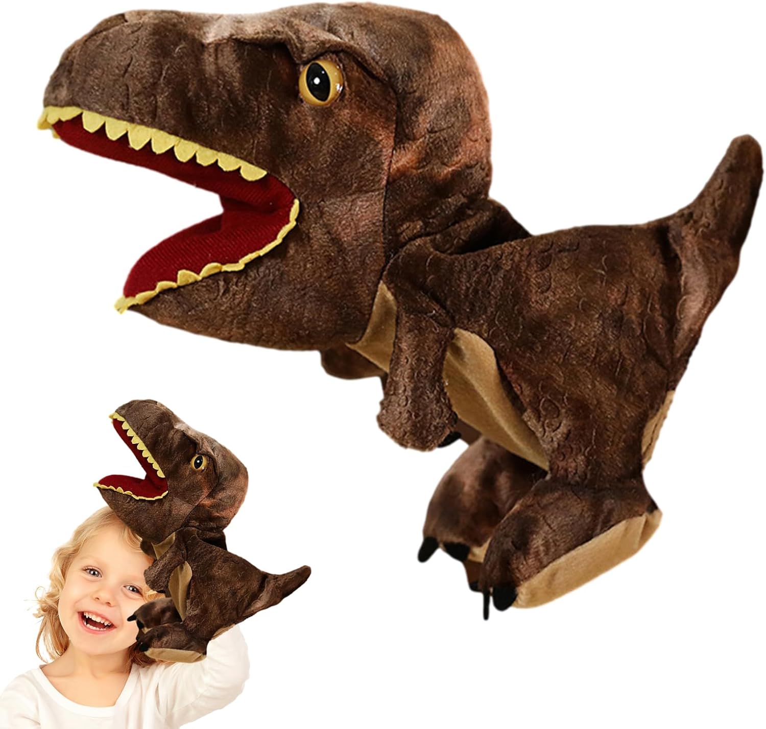 σDesign accattivante di dinosauro: questo pupazzo di dinosauro presenta una forma di dinosauro carina e divertente che lo rende un fantastico giocattolo da gioco per i bambini. Funge anche da strumento educativo, insegnando ai bambini il mondo preistorico. σPromuove la creatività delle abilità: lascia correre l'immaginazione di tuo figlio con il nostro burattino di dinosauro, che migliora lo sviluppo delle sue abilità. Promuove la coordinazione occhio-mano, consente l'esplorazione dei dinosauri preistorici ed esercita la flessibilità delle dita: il tutto divertendosi. σMigliora la comunicazione: migliora la capacità dei tuoi figli di esprimersi e interagire con gli altri con il nostro burattino dinosauro, un compagno giocoso che possono utilizzare per sviluppare le loro capacità comunicative mentre trascorrono del tempo con la famiglia e gli amici. σSicuro e durevole: costruito con materiali di alta qualità, questo burattino di dinosauro offre un design realistico e che cattura facilmente l'immaginazione dei bambini. Dalla consistenza morbida e confortevole, è perfetto per il gioco dei bambini. σRegalo divertente: questo pupazzo di dinosauro è un regalo perfetto per bambini, ragazzi e ragazze che amano i dinosauri e vogliono saperne di più su di loro. È ideale per feste, Natale e compleanni, poiché può stimolare la loro immaginazione e creatività.
